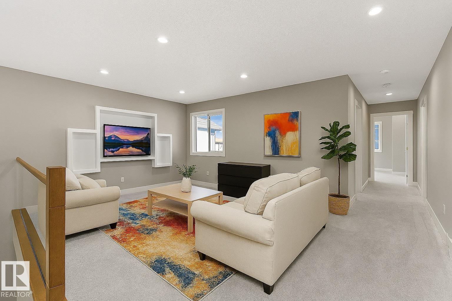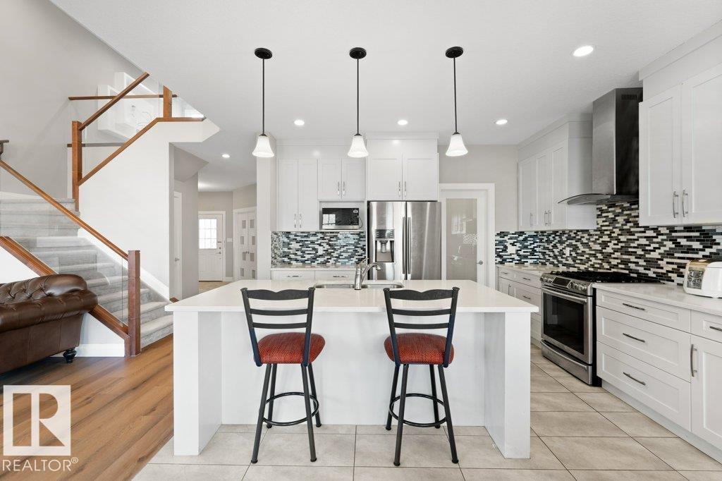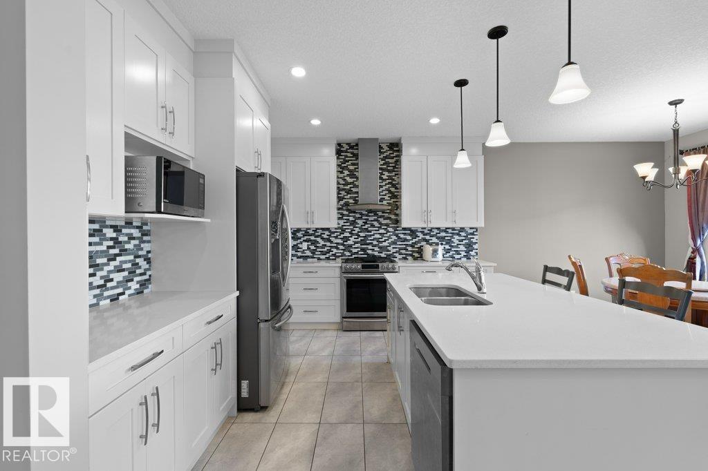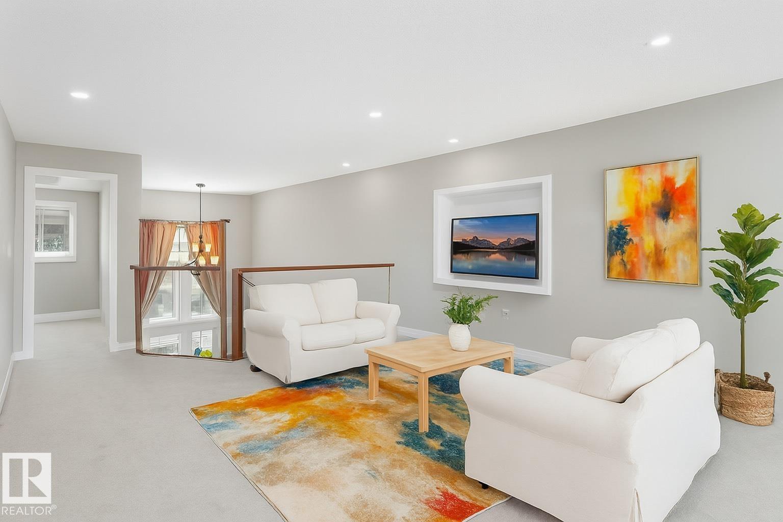 This well maintained property has 2436ft2 A.G. floor area, total 5 bedrooms and 3 full bathrooms. Stepping into the house you'll see large sized foyer leading you to open concept floorplan with hardwood flooring, ceramic tiles and carpets. Main floor features good sized den/5th bedroom, 3pc full bath; laundry room; spacious walk-through pantry; modern kitchen with quartz countertops, textured tile backsplash, gas stove, and other stainless kitchen appliances. Open to above 18' tall living room and roomy dining room complete 9' 1st floor. Going up to 2nd floor you'll see massive sunny loft, big master bedroom with 5pc ensuite and dual sinks, additional 3 bedrooms and 3pc full bath. Other highlights include: separate entry to basement; fresh paints; back onto walking trail; close to parks and schools: about 1km to grade K-9, and less than 2km to grade 10-12 schools; 3-4 minutes to Highway 2; about 11-12min drive to EIA; 7-8min drive to South Common Shopping Centre. Well suited for a big family especially!