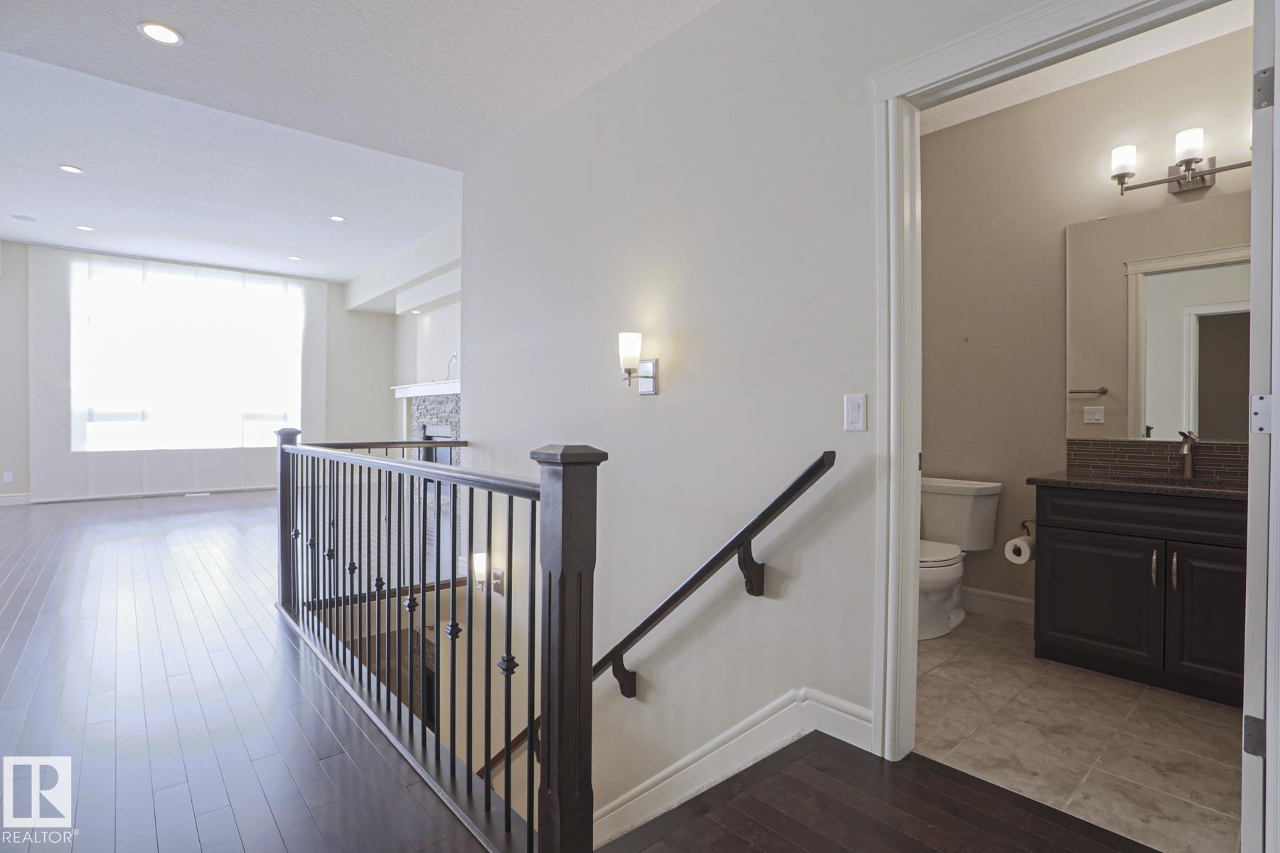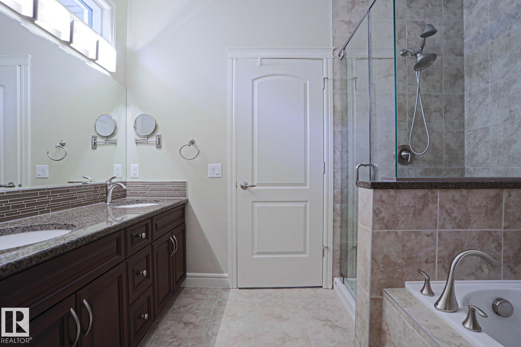 Thinking of moving up to executive living? Now is your chance. Executive living is available in this beautiful bungalow half duplex. Over 2700 square feet of opportunity for peaceful living. Quiet cul de sac location. Dark hardwood and light ceramic tile greet you at your door. Nine foot ceilings throughout main and lower levels give this home a wonderful spacious feeling. Check out the main floor master bedroom with a four piece bath with separate shower and walk in closet. Office at the front of the home. Convenient main floor laundry tucked in with a two piece bath. Open and bright kitchen dining living room area with south facing windows only requires one's imagination to complete the living experience. Modern appliances abound with plenty of cupboard space available. Gorgeous gas fireplace both up and down for cold winter nights. Basement has a four piece with two bedrooms and a living room with bar. Central a/c. Double front attached garage. Wonderful chance for executive living to happen in Allard.