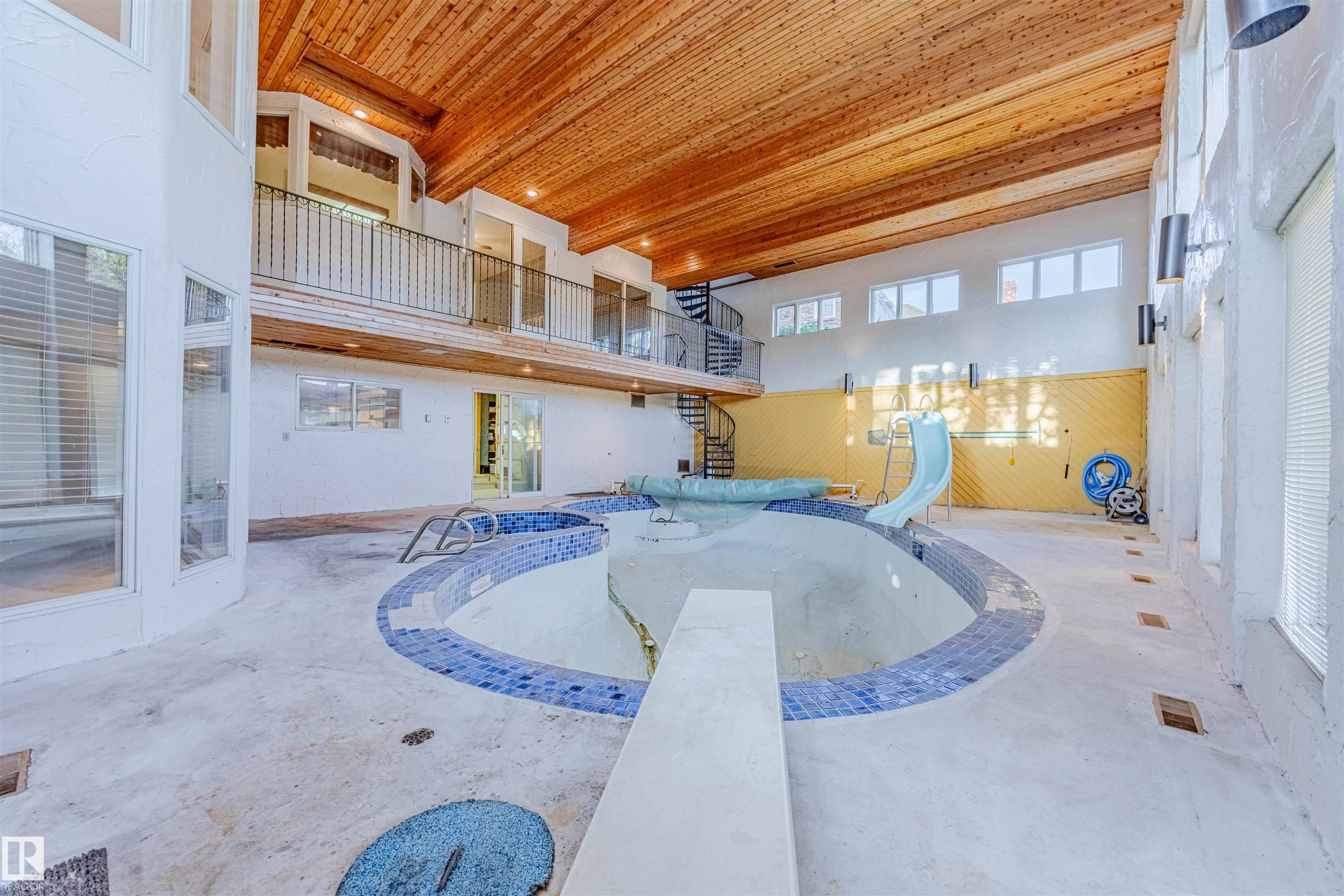 Location is unbeatable! Over 6000 sqft of living space in this unique 2 story walkout in the respected & admired community of Bearspaw. This spectacular home as a total of 5 fireplaces, 4 being double sided, in the dining & living areas on the main floor & lower level.The main floor has a bedroom/den at the front entrance, 1.2 bath, large laundry room with a sink & cabinets. 2 Access points to the basement, Access to the triple insulated garage, kitchen with a dinette area , family room with a gas fireplace & access that overlooks the pool/jacuzzi level. The upper level has 3 very large bedrooms & a 4 pc bath. The primary suite has 2 closets, 5 pc ensuite, access door that leads down to the pool & double patio doors that lead to the patio which is the full length of the house.There is also a den with access to the patio as well.The walkout lower level has a bar, dining & living area, lots of storage & access to the pool area. The backyard is incredible, lots of space. This property is a real gem.