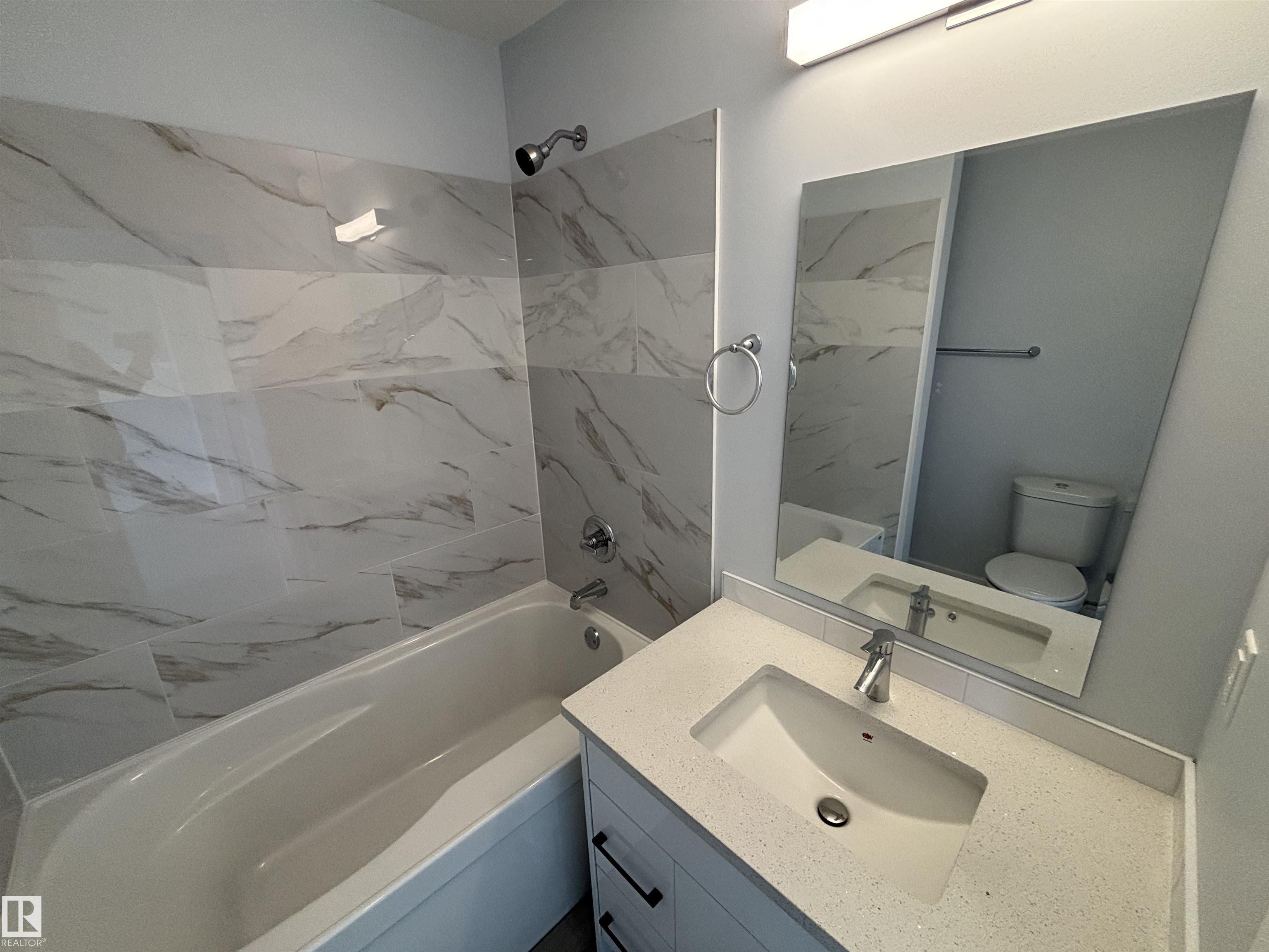 NET-ZERO two-storey home offering 1,428 sq.ft. above grade with 3 bedrooms, 2.5 baths & thoughtful energy-efficient design. Powered by SOLAR panels (renewable electricity) & finished with QUARTZ countertops, custom kitchen cabinetry & luxury vinyl plank flooring. Built with durable, fire-resistant exterior cladding & energy-efficient windows & doors for long-term performance & comfort, plus significant utility savings. Bright, open layout designed to maximize natural light, featuring a 10-ft wide living room window with views of the park, community garden, fire pit, and fruit orchard, plus additional windows over the stairwell and glazed doors throughout. Main floor includes a bedroom with closet and ensuite featuring a soaker tub, while two additional bedrooms are located on the second storey. Enjoy a large second-storey balcony with a view. Six energy-efficient appliances included, including a heat pump dryer. Laundry located in the basement. EV-ready garage with Level 1 & 2 wiring. No Condo Fees.
