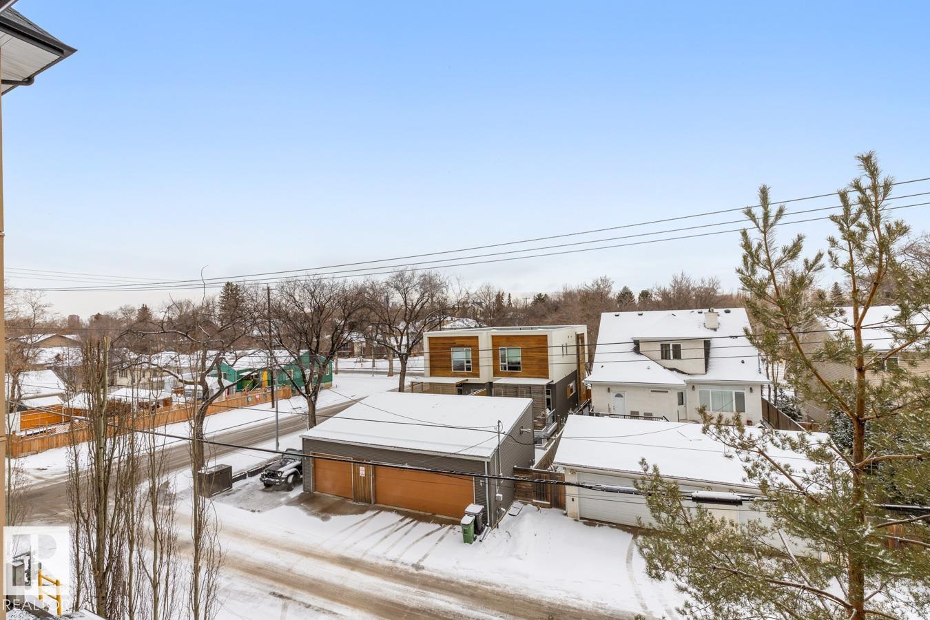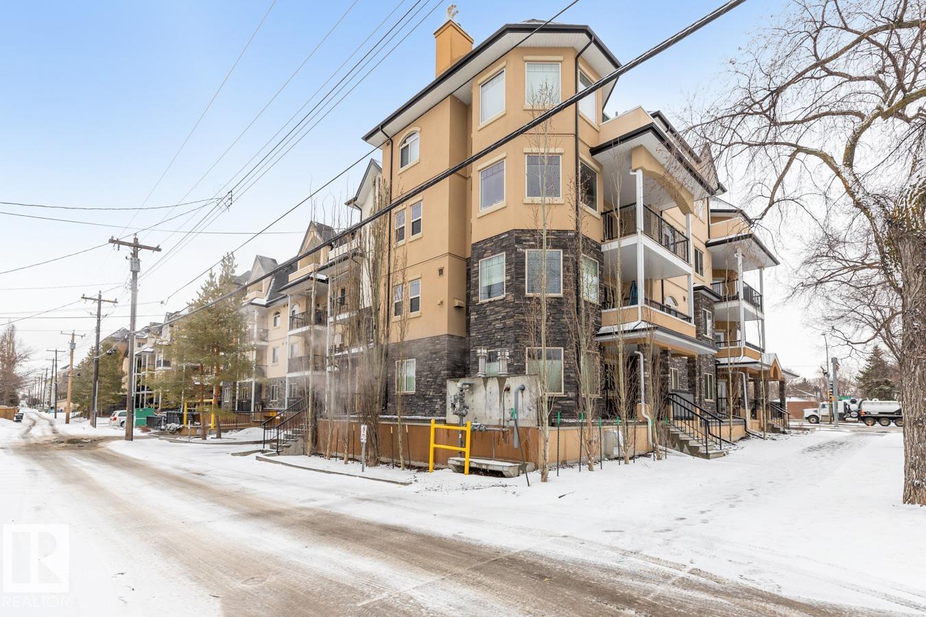 Step into stylish, low-maintenance living in this beautifully upgraded 1 bed + den condo at Madison on Whyte. Proudly owned by its original owner, this third-floor unit is tucked on the quiet side of the building, facing a treed alley. Extensively renovated in 2024, this home offers a fully refreshed kitchen and bathroom with quartz countertops, refaced cabinetry with updated hardware, modern tile backsplash, and new sinks and faucets throughout. Fresh paint and new carpet in the bedroom and den complete the clean, modern feel, while new fridge, washer, and dryer (2025) add even more value. Enjoy 9' ceilings, an open-concept layout, and the convenience of in-suite laundry. A high-end in-suite heating and air conditioning system ensures year-round comfort. This unit also includes 1 underground parking stall and is pet-friendly with no size restrictions--a rare find in a central location. Tucked in the heart of Bonnie Doon, you're just steps from Mill Creek Ravine, the new LRT line, and Campus Saint-Jean.