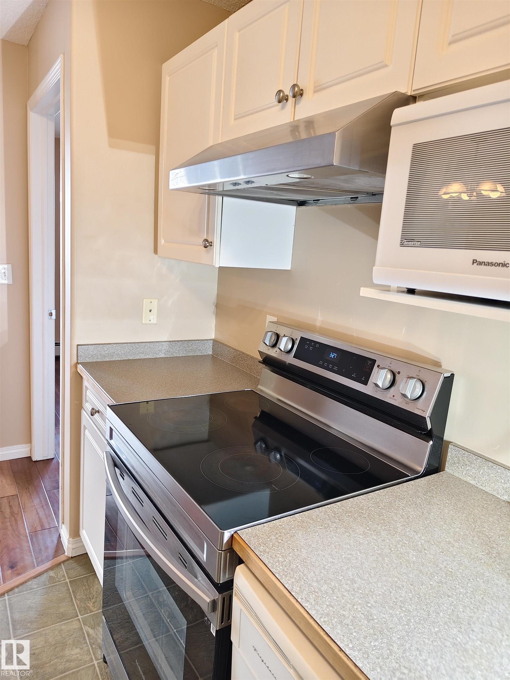 Move-In Ready 2-Bed, 2 Full Bath in Prime Callingwood Location! Professionally cleaned and meticulously maintained, this bright and inviting unit features a smart, functional layout with generously sized bedrooms, a walk-through closet, and a private 4-piece ensuite. The kitchen offers ample cabinetry, a newer stove and range hood, plus a convenient island with an eating bar--perfect for everyday living and entertaining. Additional highlights include secure entry, in-suite storage, a stackable washer and dryer, elevator access, and heated underground parking with car wash facilities. Situated in a well-managed building with low condo fees, you're just steps from Callingwood Shopping Centre, the farmers' market, YMCA, schools, public transit, and more. Visitor parking and rental stalls are also available. Priced to sell--this one won't last!