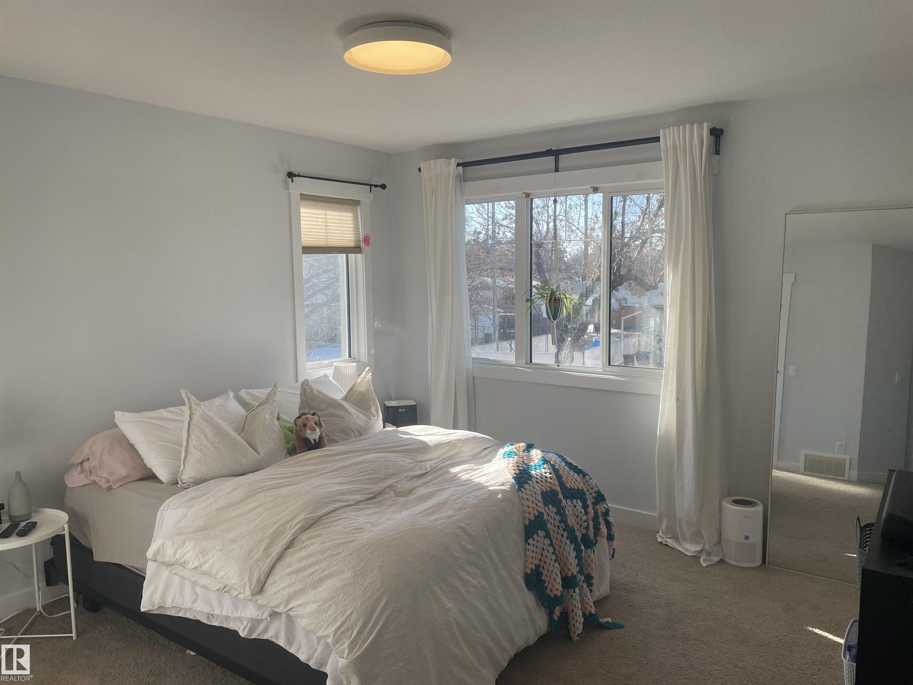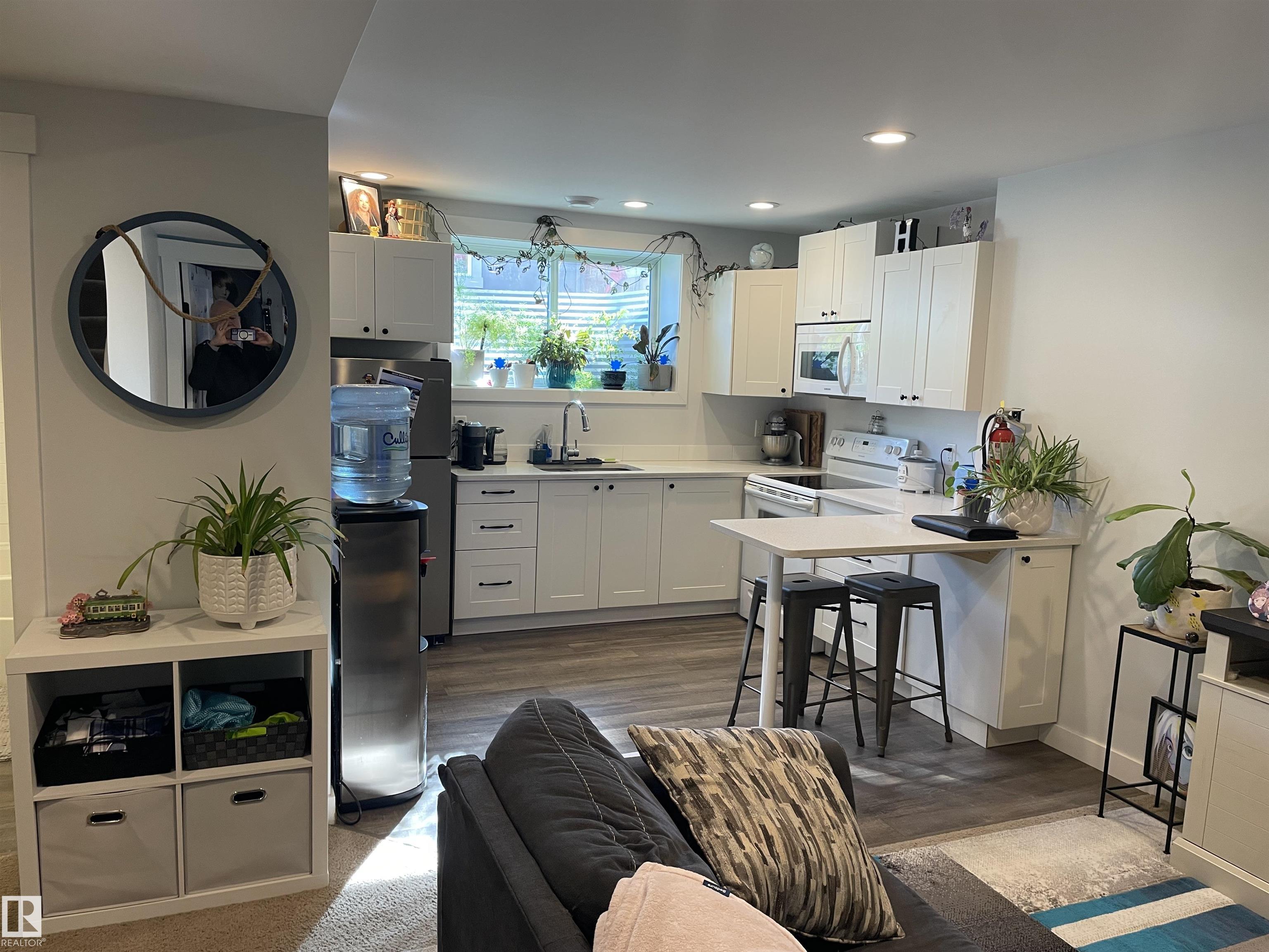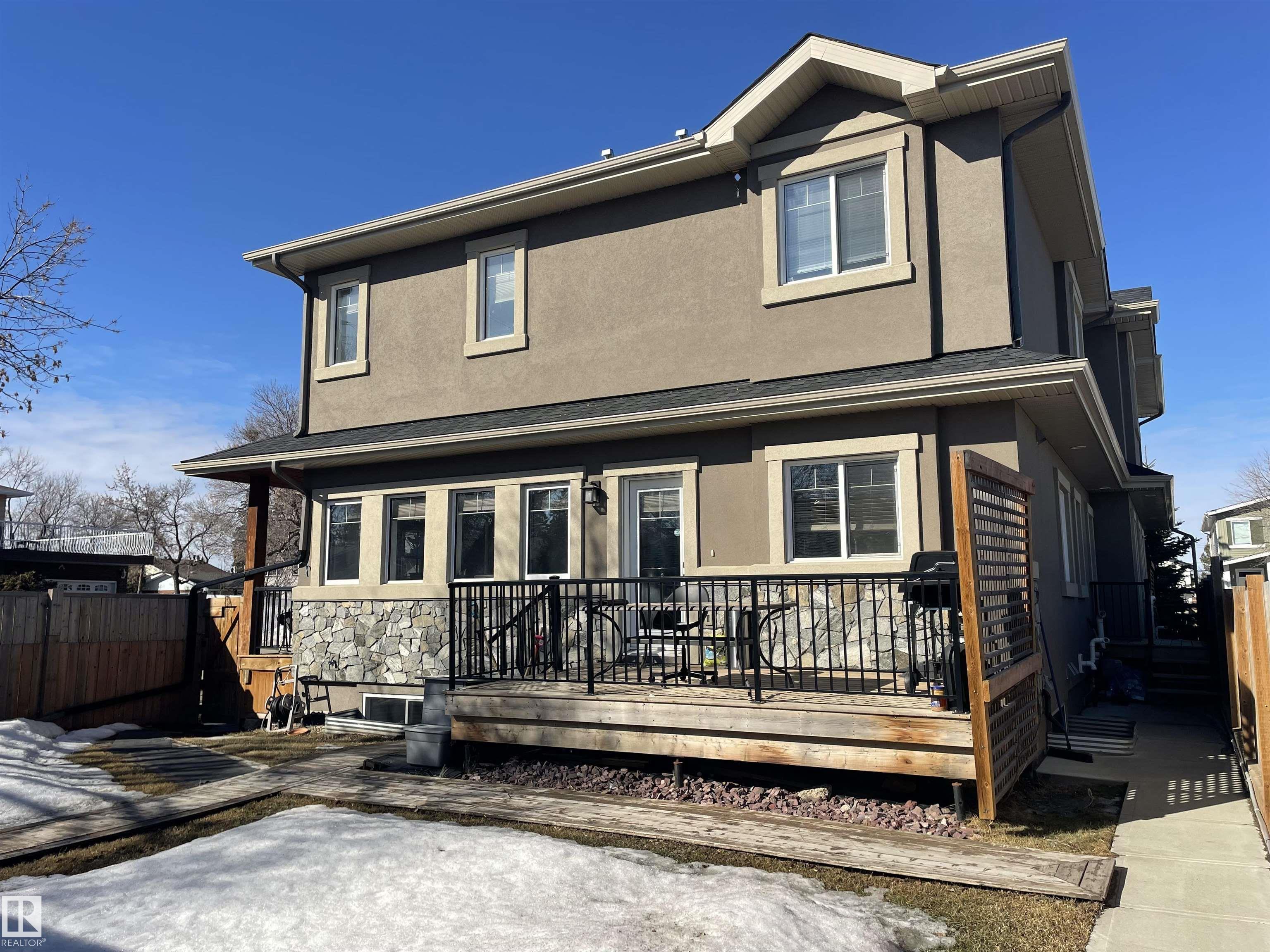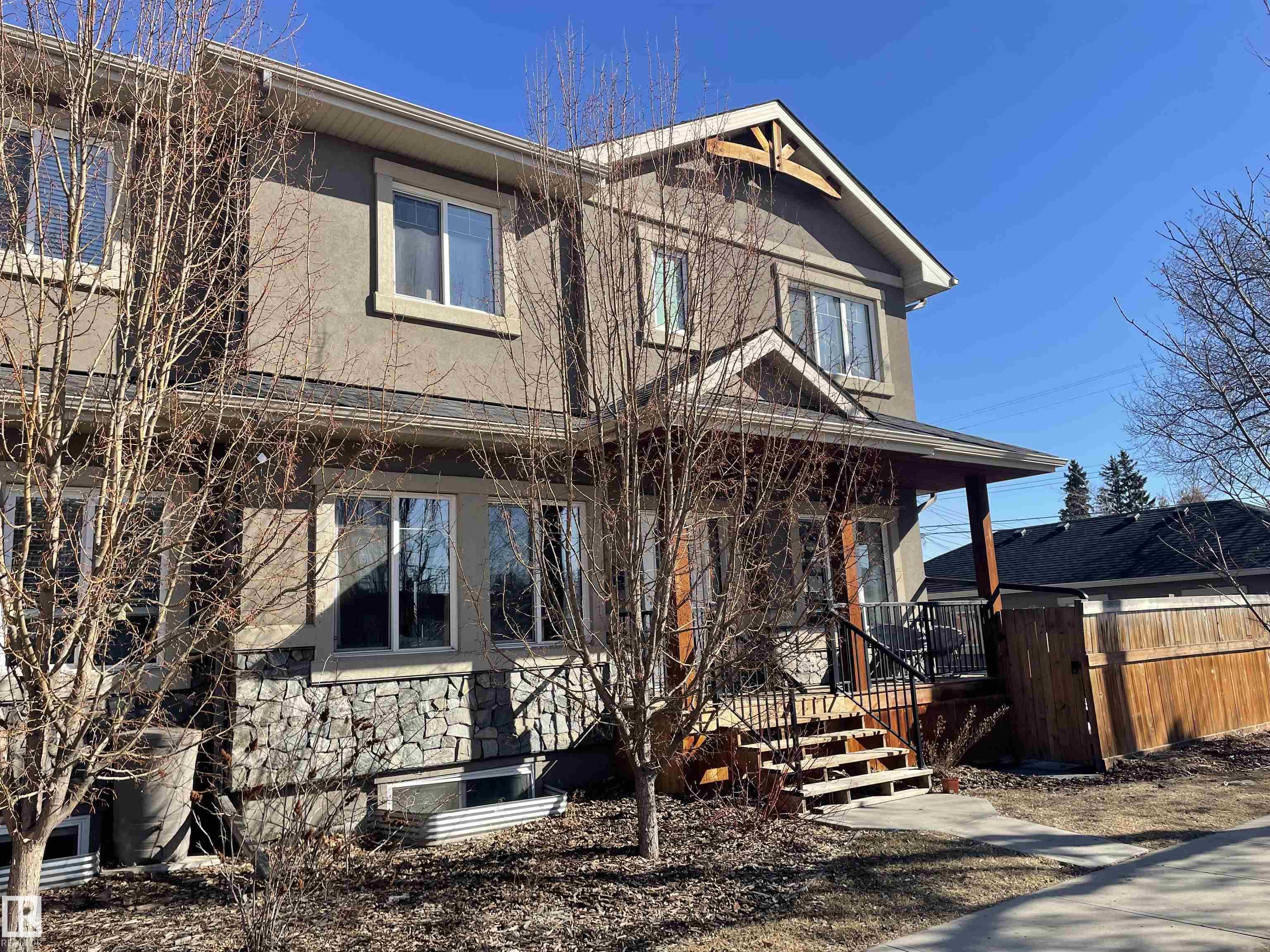 Incredible half duplex on a quiet residential street in the family friendly neighborhood of Canora. This meticulously maintained home offers 6 bedrooms and 4 bathrooms featuring custom built-in cabinetry, upgraded stainless steel appliance package and premium finishes throughout. The gorgeous chef's kitchen features significant amount of cabinetry, quartz countertops, and an incredible space for cooking and entertaining. The bright and functional layout includes convenient main floor laundry and spacious living areas designed for comfort and style. A separate entrance leads to the fully finished lower living area with its own kitchen, two bedrooms, and laundry--perfect for extended family. Step outside to a stunning side yard with close garage proximity, and a large deck perfect for entertaining. Completing the property is a double car garage and a location close to parks, schools, and amenities. A wonderful opportunity in one of Edmonton's most sought after communities.