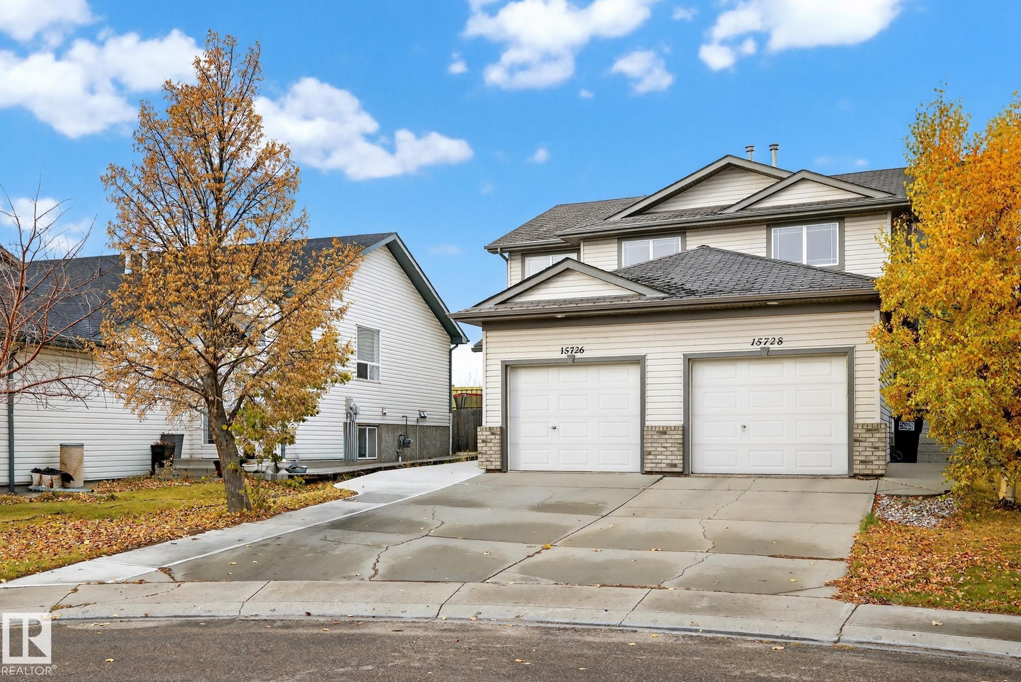 Located in the family-friendly community of Carlton, this well-maintained 3-bedroom, 2.5-bath half duplex offers comfort, updates, and functionality with no condo fees. The main floor features brand newer vinyl plank flooring and a recently installed high-efficiency furnace. A spacious den off the front entrance provides the perfect space for a home office or flex room. The bright kitchen offers ample counter space, stainless steel appliances, and a generous dining area ideal for family meals. Upstairs you'll find three bedrooms, including a primary suite with full ensuite and walk-in closet. The partially finished basement is framed, includes two large windows, and already has a 3-piece bathroom installed. Step outside to enjoy the fenced backyard with a large wood deck and concrete patio, perfect for entertaining. A single attached garage and additional driveway parking add convenience.