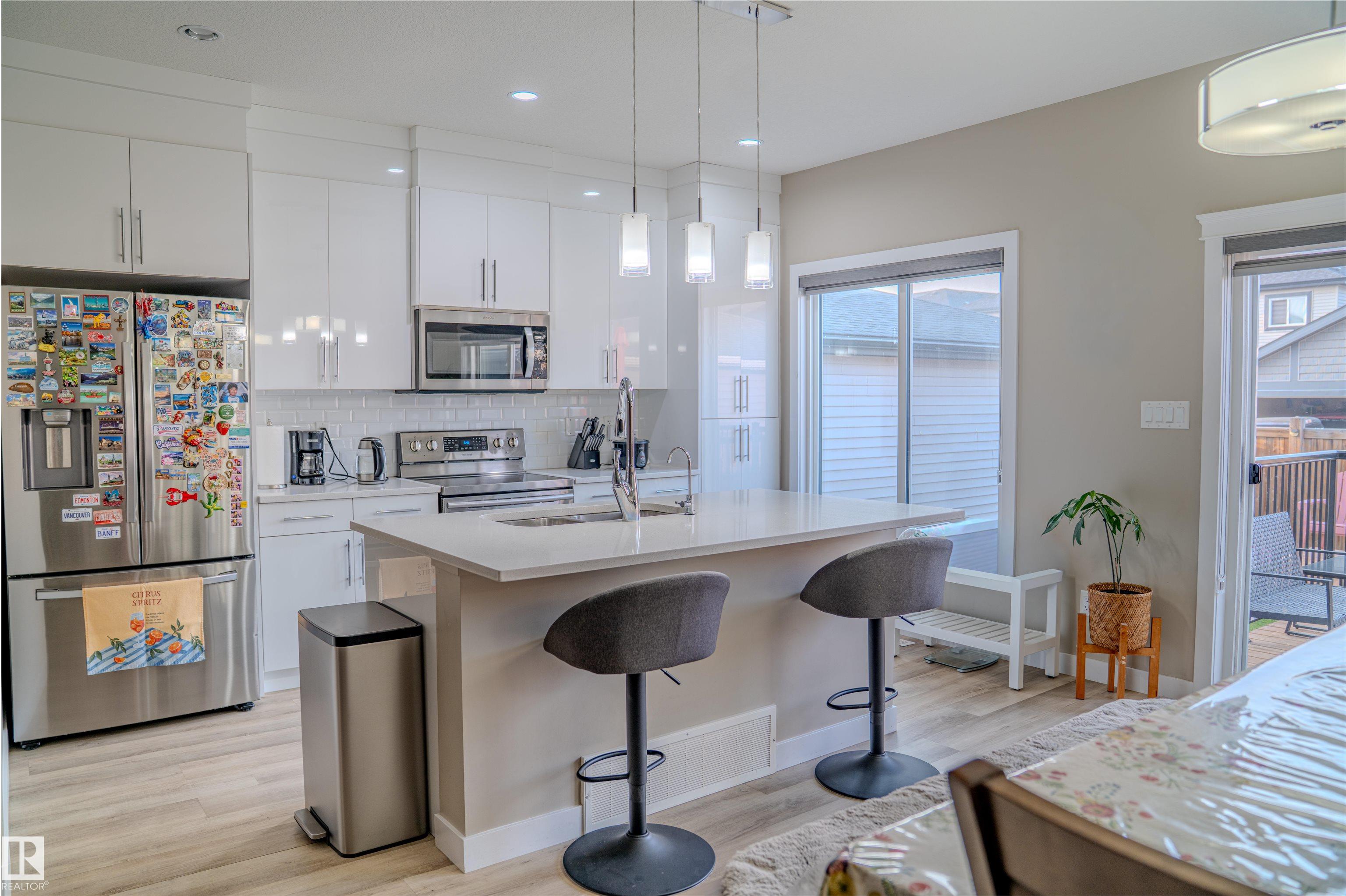 Nestled in vibrant Chappelle Gardens, Southwest Edmonton, this 4-bedroom, 3.5-bath single-family home with a versatile flex room--perfect for a home office, gym, or media haven--blends modern comfort with timeless charm. Featuring premium Hardie board siding, it offers a durable, low-maintenance exterior that resists weather and fire for lasting appeal. The open-concept main floor boasts a gourmet kitchen with quartz counters, flowing into a cozy living area. A 2-car attached garage ensures storage and access. The fully finished basement, with a separate entrance, bedroom, flex room, full bath, and living room, ideal for guests or big family. Enjoy nearby schools, daycares, trails, ponds, parks with playgrounds, dog areas, spray parks, basketball courts, skating rinks, shopping, and a 19-minute drive to the airport. Ideal for families and travellers, this home is your vibrant lifestyle!