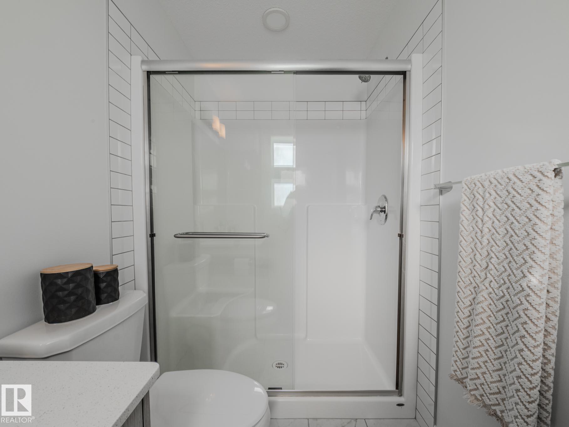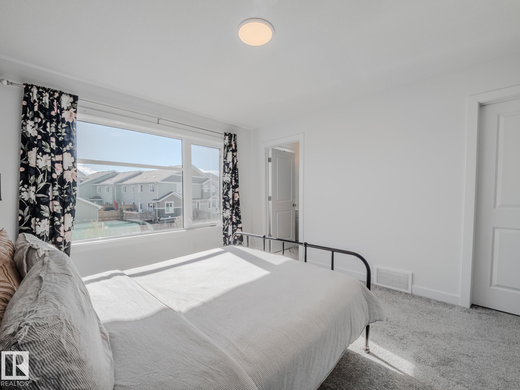 WOW! Step into this beautifully designed 3-bedroom, 2.5-bath home offering a bright and open-concept layout perfect for modern living. The spacious living room flows effortlessly into a generous dining area and a sleek, upgraded kitchen featuring a large island with breakfast bar, elegant quartz countertops, quality cabinetry, and a convenient pantry. A practical boot room and a stylish half bath complete the main floor. Upstairs, the primary suite offers a relaxing retreat with a walk-in closet and private ensuite. Two additional well-sized bedrooms, a full 4-piece bath, and an upstairs laundry room provide comfort and convenience for the whole family. An easily separated basement entrance offers fantastic potential for future development or a legal suite! Fenced yard, double garage and extra parking! Located in the vibrant Chappelle community, you'll enjoy access to scenic wetlands, vast green spaces, walking trails, schools, a community center, and more. Welcome Home!