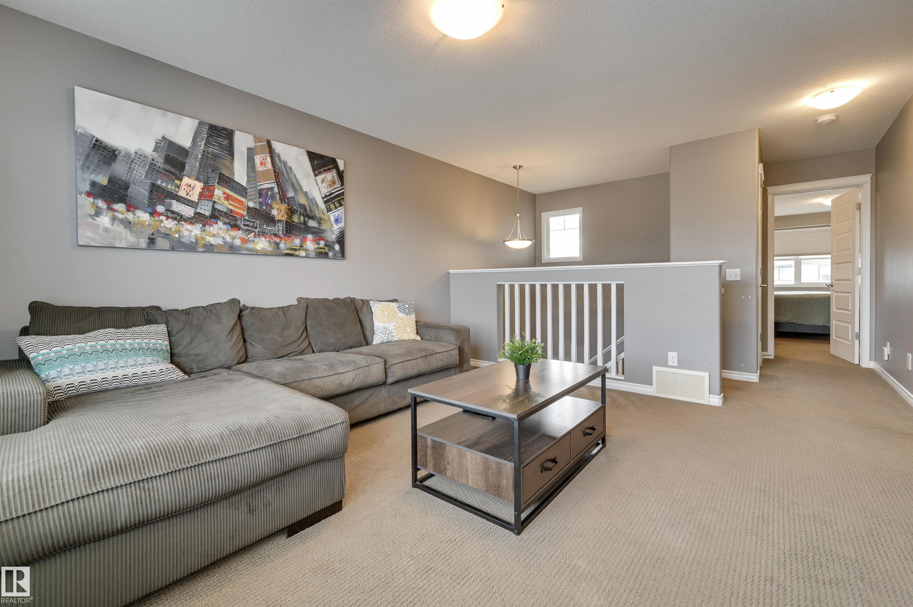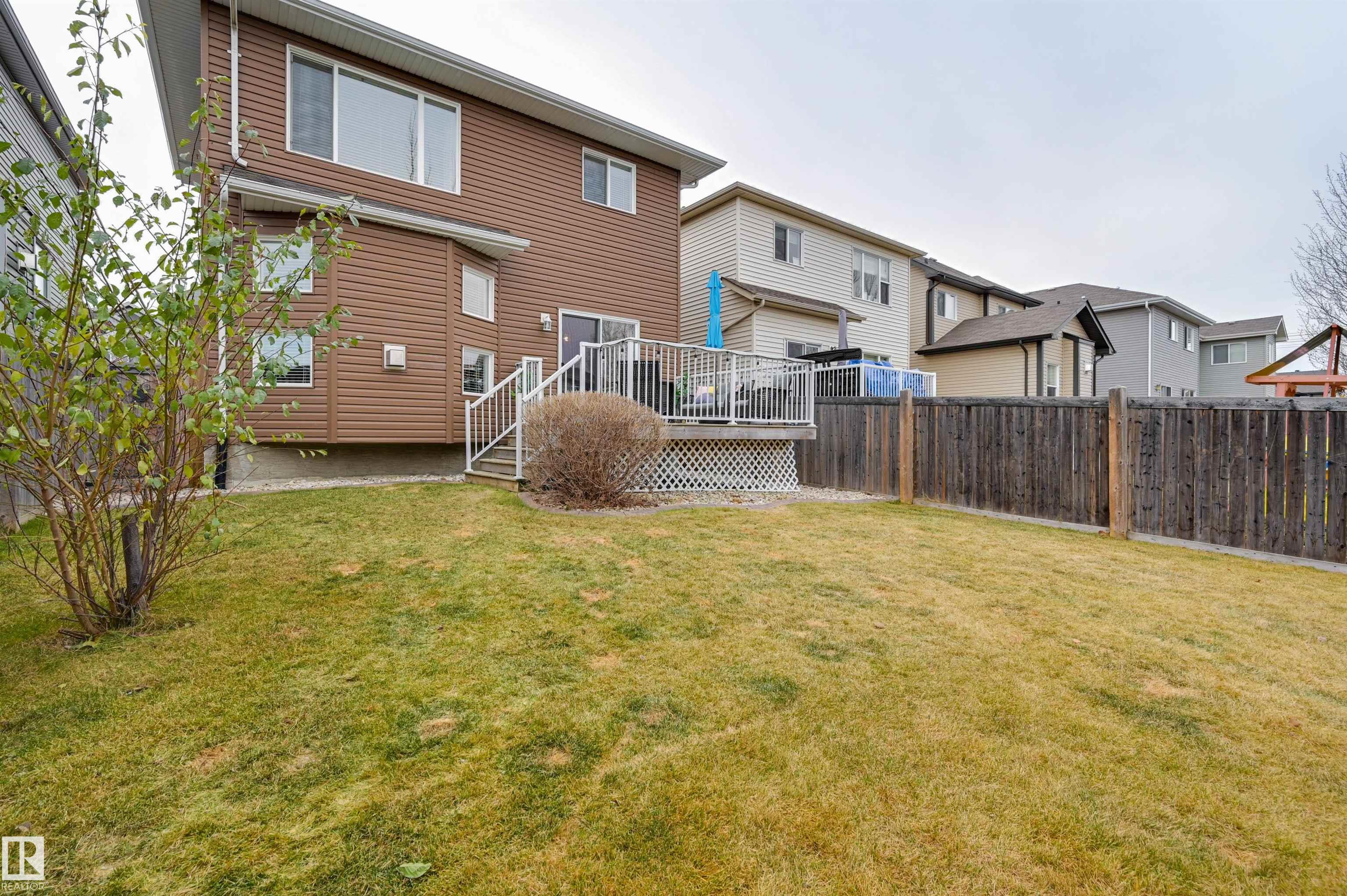 Welcome to this beautiful 4 bed + 4 bath home in Chappelle Gardens! Thoughtful upgrades make it turn-key + ready for your family. Your spacious kitchen features an oversized island + updated appliances! Your bright living room is cozy + comfortable thanks to your new fireplace. Cozy carpet leads you upstairs to the primary bedroom complete w/ a walk-in closet, ensuite, + blackout custom blinds, along w/ 2 additional bedrooms. The fully finished basement provides more living space w/ a bonus room, great for a home gym or flex space. A fully fenced backyard w/ upgraded landscaping + a larger-than-standard deck is perfect for outdoor entertaining. Enjoy A/C in the summer months + a heated double garage w/ dimmable pot lighting during winter! Rest assured w/ keyless entry, new interior paint + garage paint, custom blinds + new main floor lighting! Ice skating, a splash park, schools, trails, + daycares are nearby. Your HOA puts on fun holiday parties for all residents! Don't miss the chance to call this home!