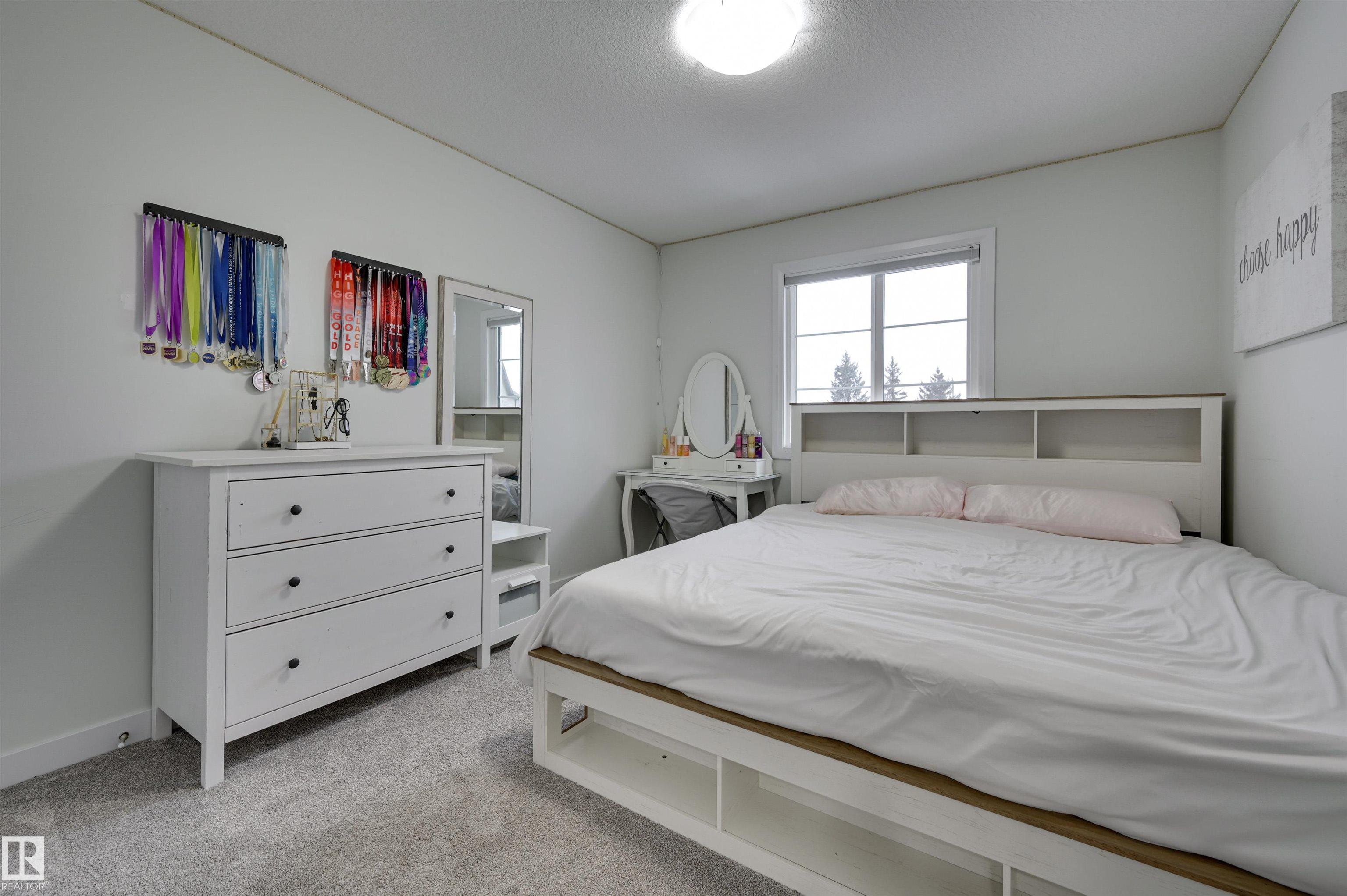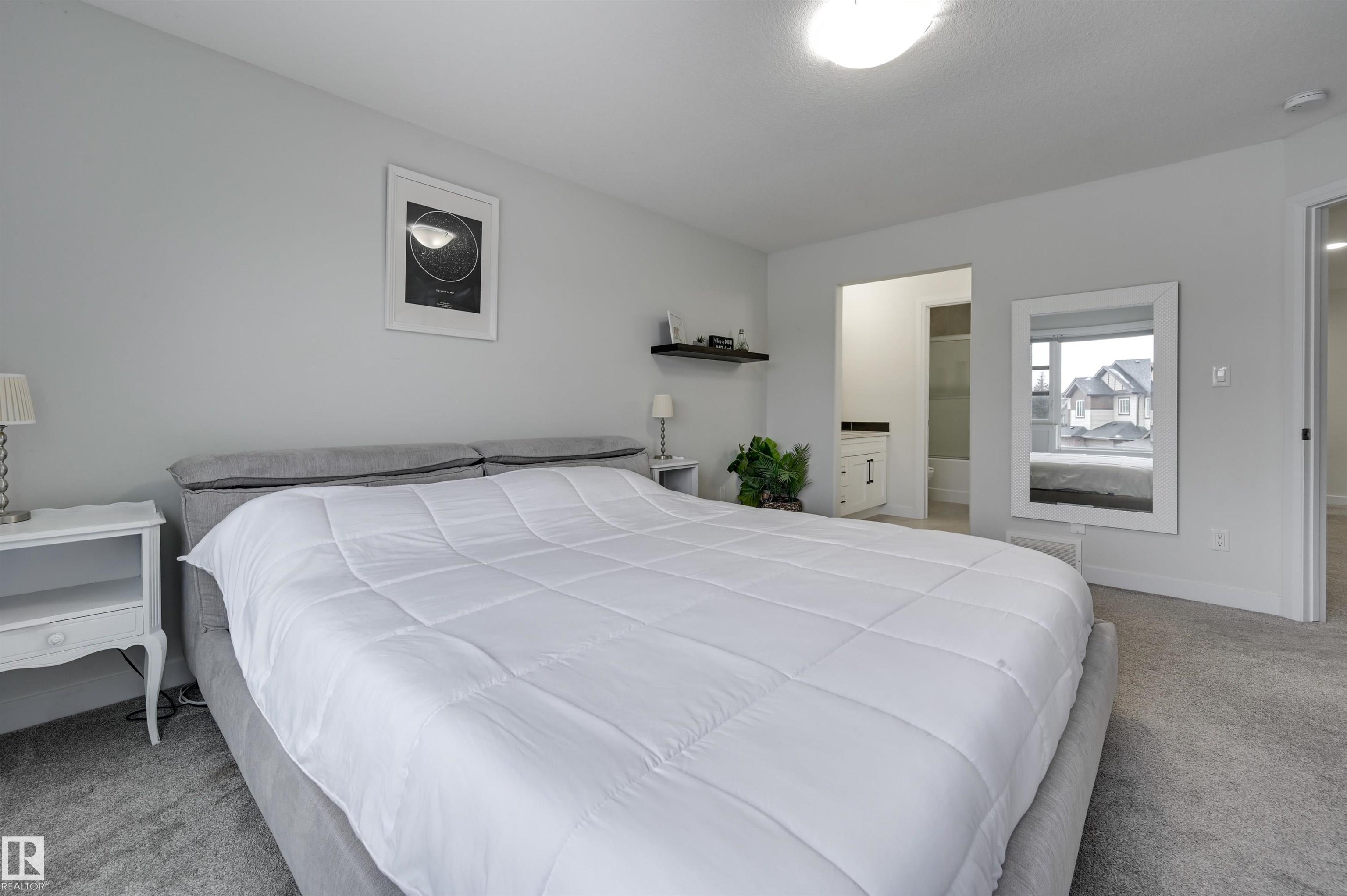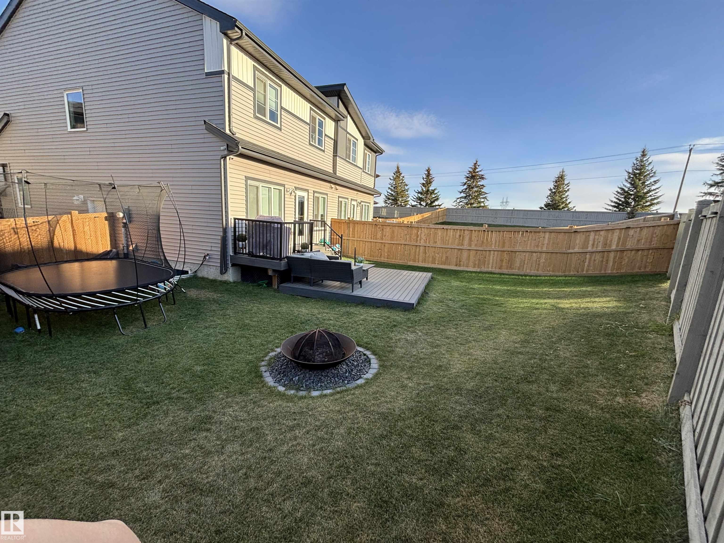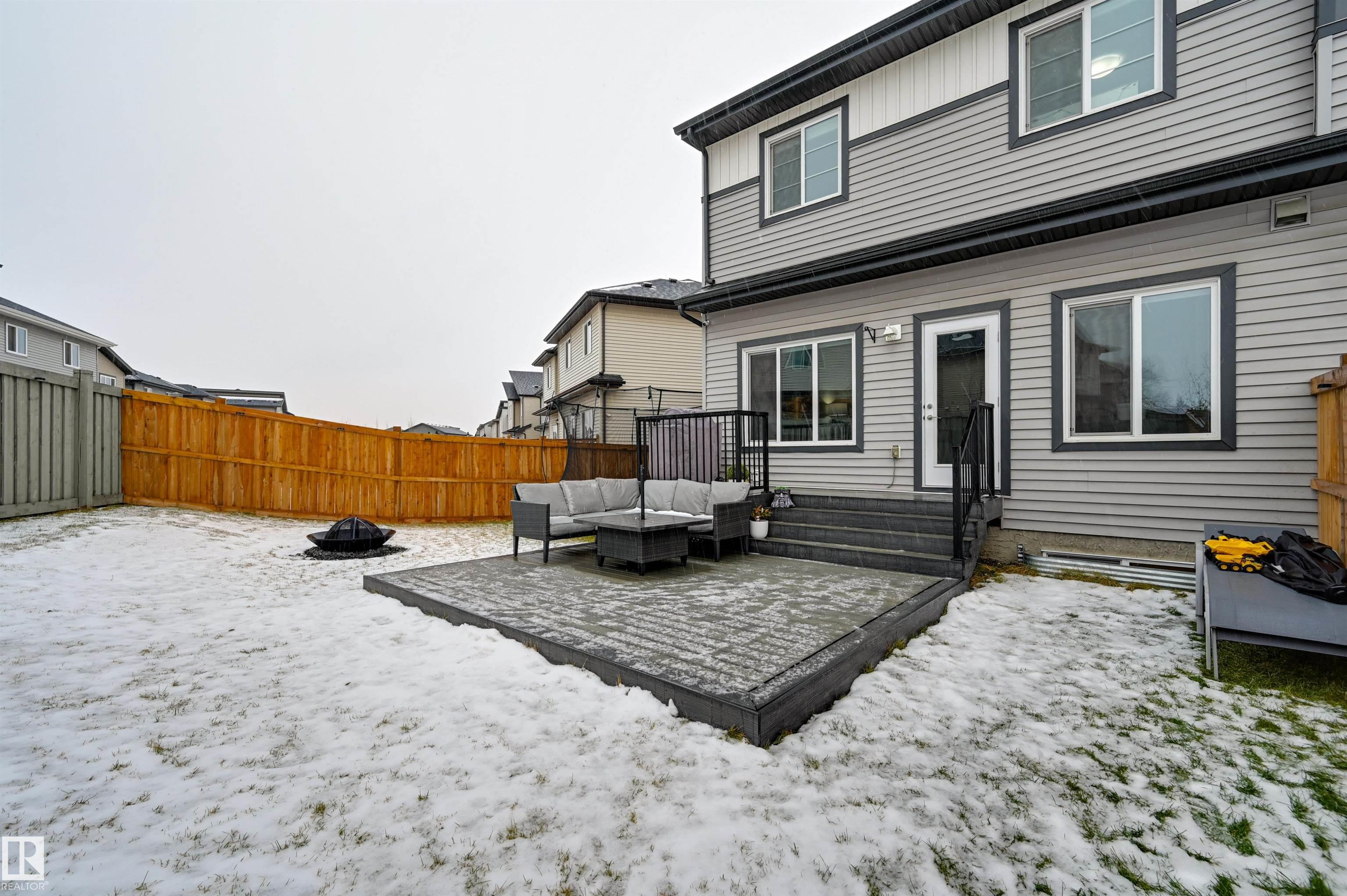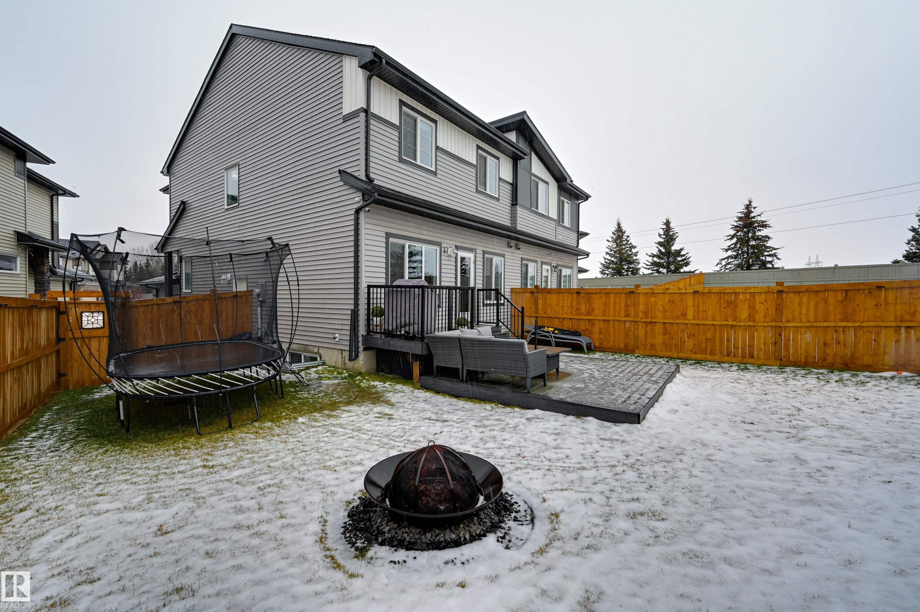 Welcome to this huge (1,830+ sqft) beautifully finished Half Duplex situated on a large lot in a quiet cul-de-sac. The main floor features a bright front den, half bath, and an impressive kitchen with quartz countertops, tile backsplash, pantry, and a large island with seating--perfect for gatherings. The living room showcases a fireplace & a feature wall, flowing seamlessly into the spacious dining area. From here, step out onto the two-tier composite deck overlooking the fully fenced SW facing pie lot, complete with a grassed area ideal for outdoor enjoyment. Upstairs, the spacious primary bedroom includes a walk-in closet & spa like ensuite. A versatile bonus room, two additional bedrooms, a 4 pc bathroom, & laundry offer comfort & convenience for the whole family. The fully finished basement (with separate entrance) adds even more living space with a large family room, a fourth bedroom, and 3 pc bath. Attached garage with epoxy floor & AC included! Move in ready!