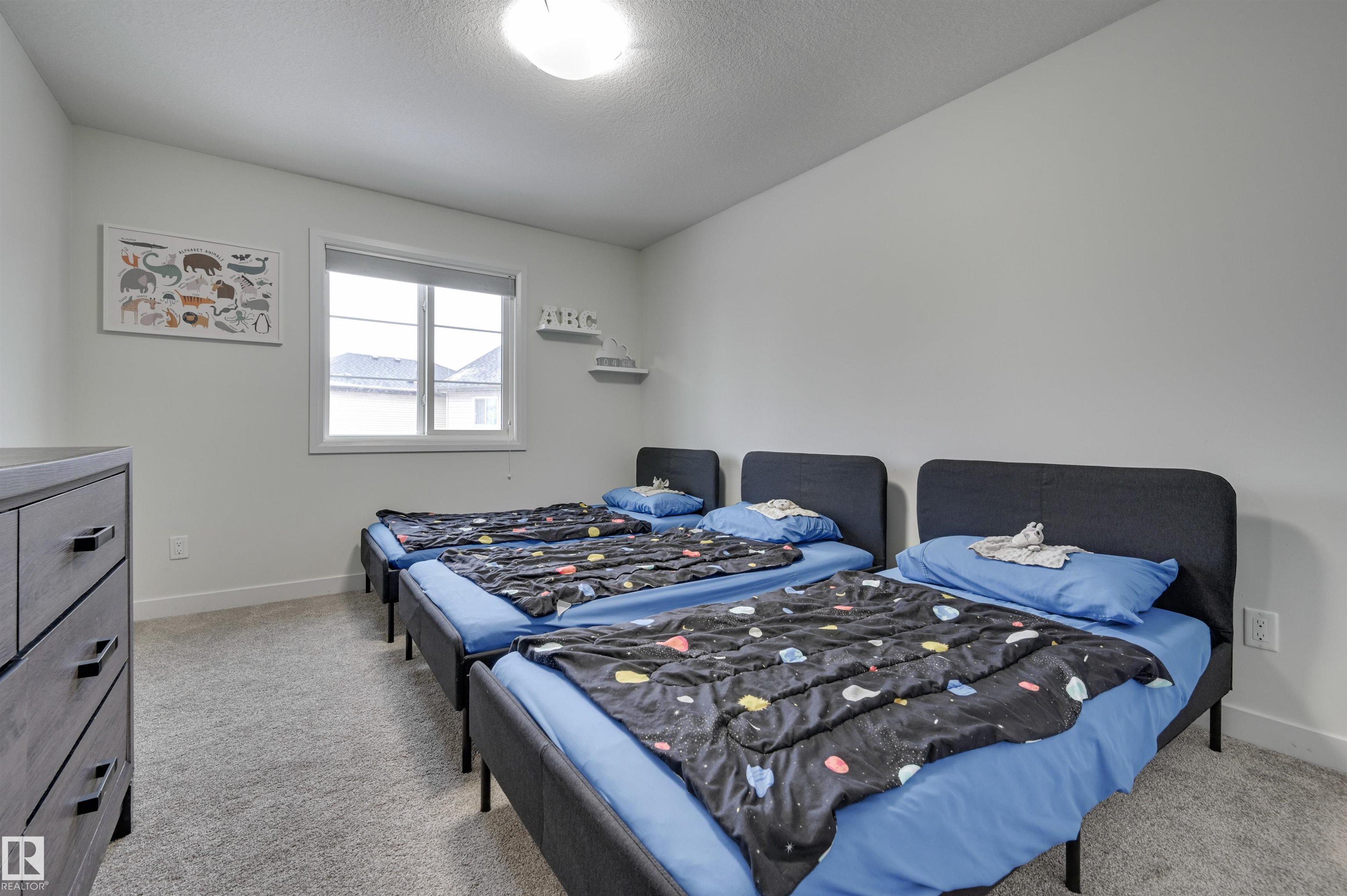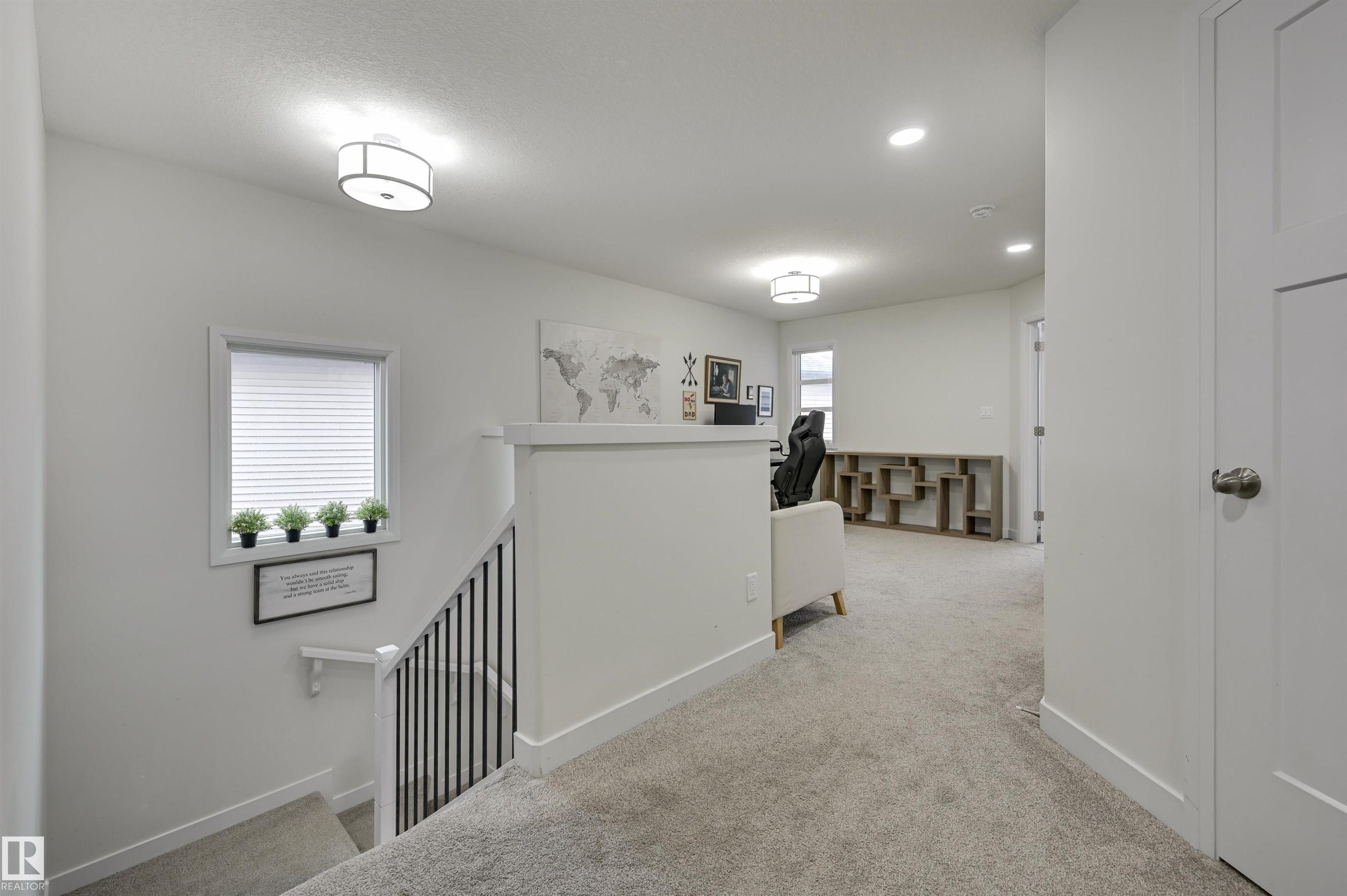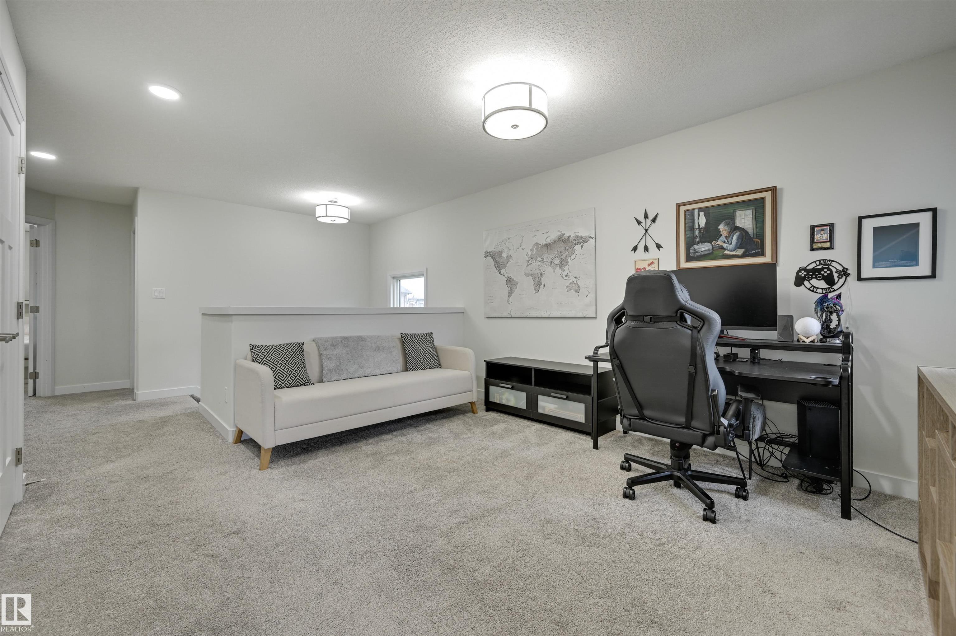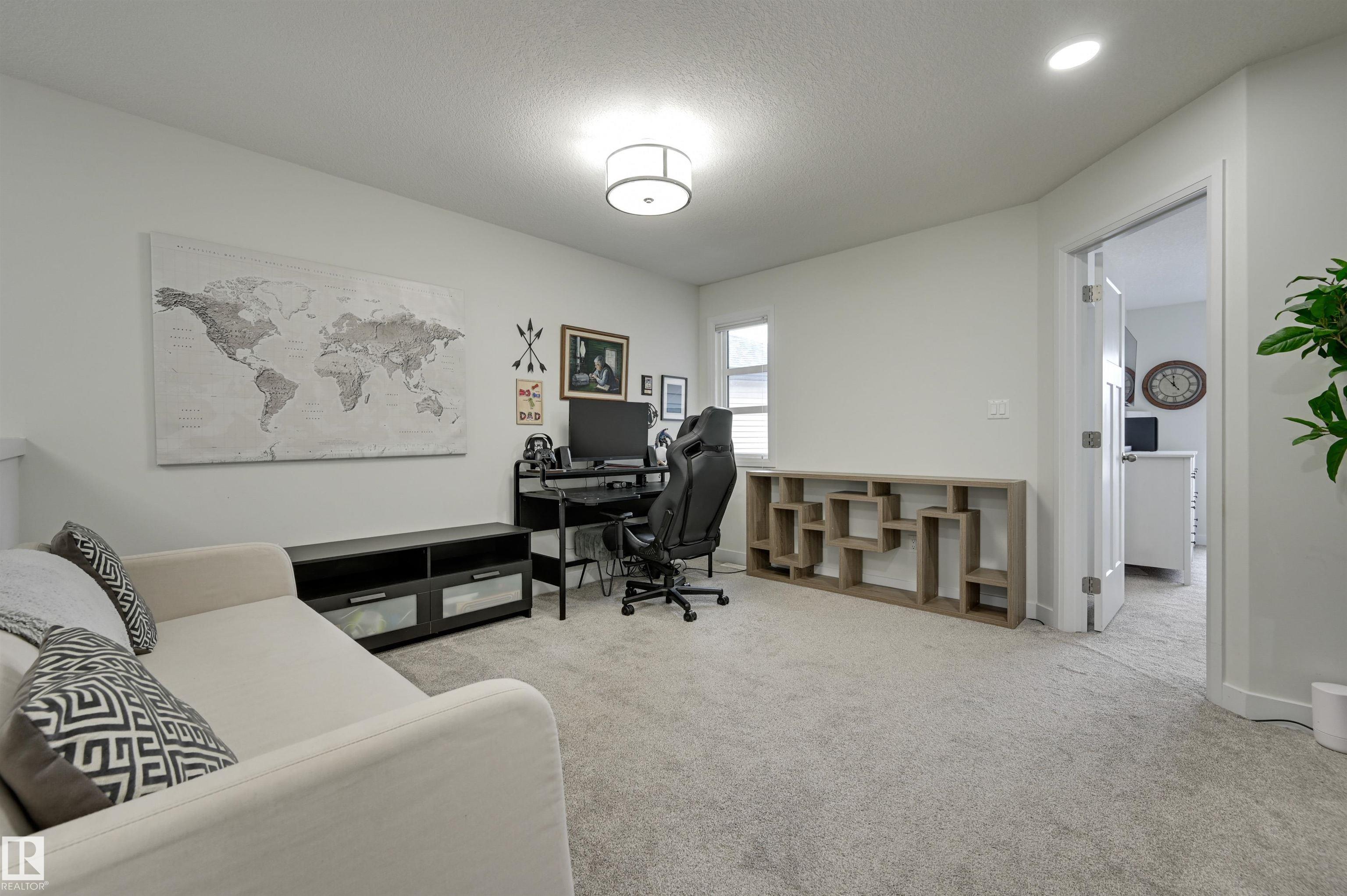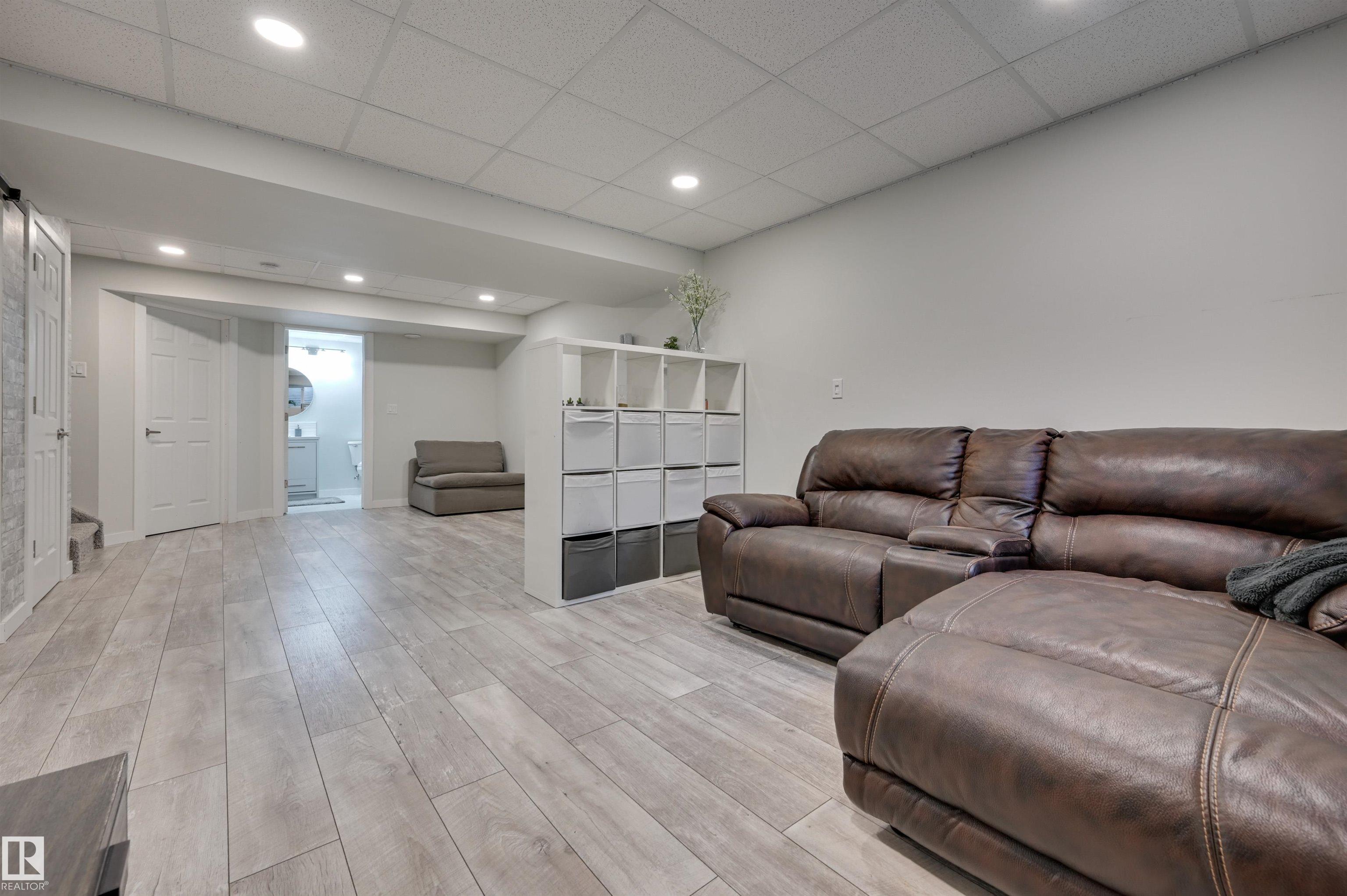 Welcome to this huge (1,830+ sqft) beautifully finished Half Duplex situated on a large lot in a quiet cul-de-sac. The main floor features a bright front den, half bath, and an impressive kitchen with quartz countertops, tile backsplash, pantry, and a large island with seating--perfect for gatherings. The living room showcases a fireplace & a feature wall, flowing seamlessly into the spacious dining area. From here, step out onto the two-tier composite deck overlooking the fully fenced SW facing pie lot, complete with a grassed area ideal for outdoor enjoyment. Upstairs, the spacious primary bedroom includes a walk-in closet & spa like ensuite. A versatile bonus room, two additional bedrooms, a 4 pc bathroom, & laundry offer comfort & convenience for the whole family. The fully finished basement (with separate entrance) adds even more living space with a large family room, a fourth bedroom, and 3 pc bath. Attached garage with epoxy floor & AC included! Move in ready!