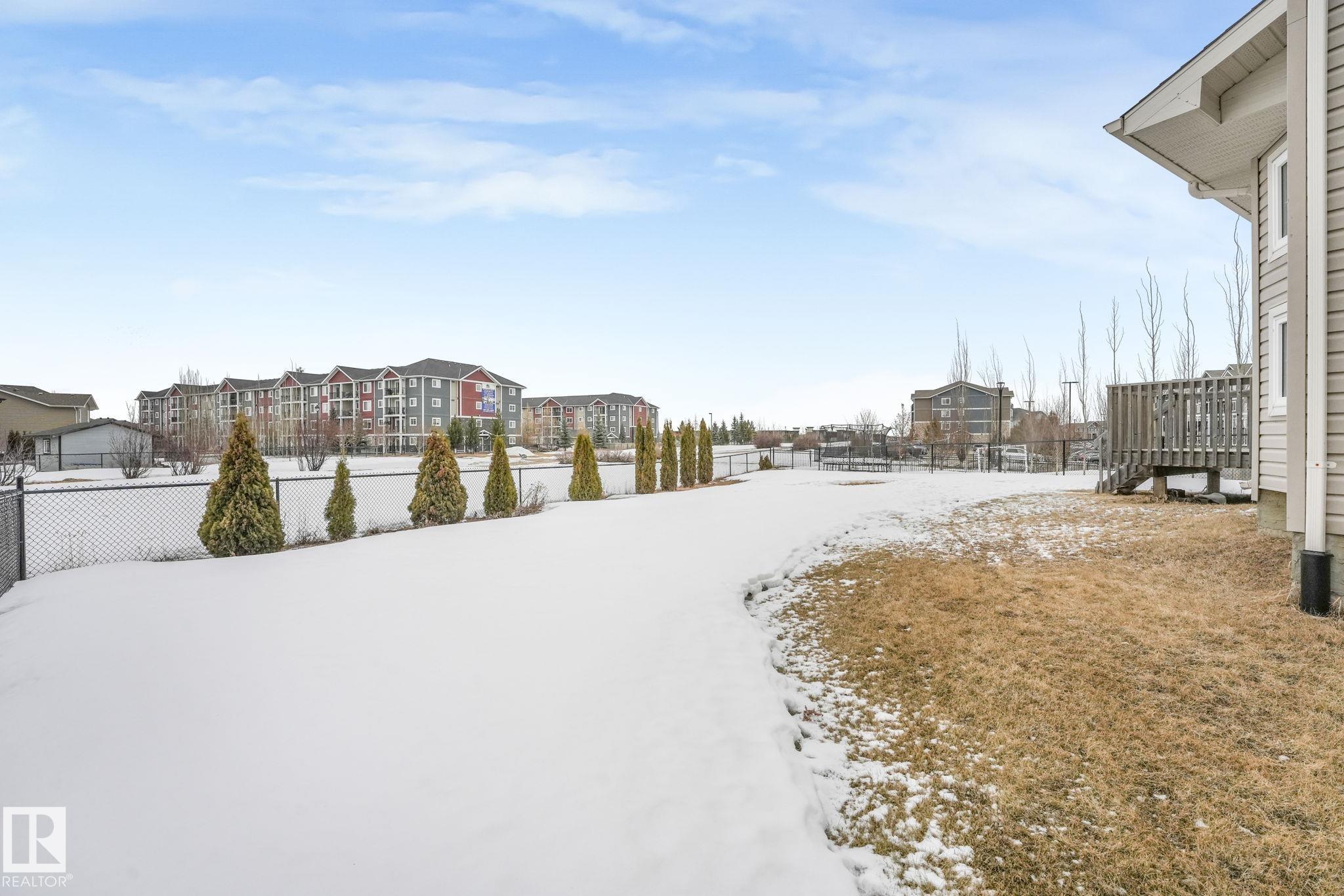 This beautifully maintained 2-storey home offers 2,150 sq ft of living space, on a rare 7,500 sq ft pie-shaped/cul-du sac lot & backing onto a greenbelt. Built in 2012, this home features 4 bedrooms up, a main floor office, & move-in ready! The bright, open-concept showcases: hardwood flooring, large windows, a spacious living room w/ a mantle fireplace. The chef-inspired corner kitchen includes: granite countertops, gas range, stainless steel appliances, corner pantry, tile backsplash, & an eat-up bar, w/ picturesque views of the back yard. The kitchen flows into a sunny breakfast nook w/ direct access to the patio. Upstairs offers a generous bonus room, 3 seondary bedrooms, a full 4-piece bath, & a spacious primary suite, featuring: vaulted ceilings, a walk-in closet, & an upgraded ensuite. Located walking distance to all your daily ameneties, schools, & short drive to hwy 2 and Henday... this home is the perfect blend of space, comfort, & convenience. You're really going to love this one!