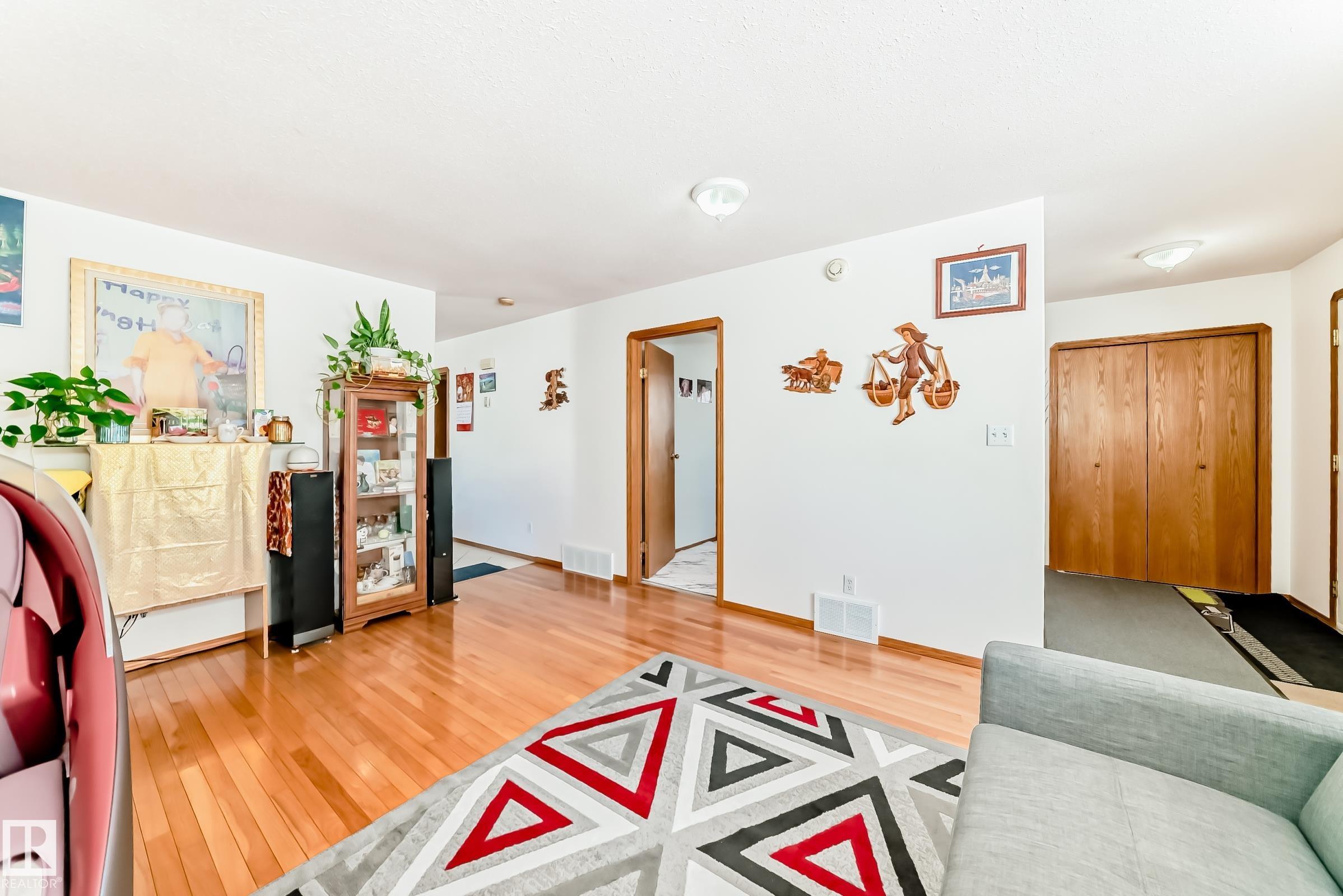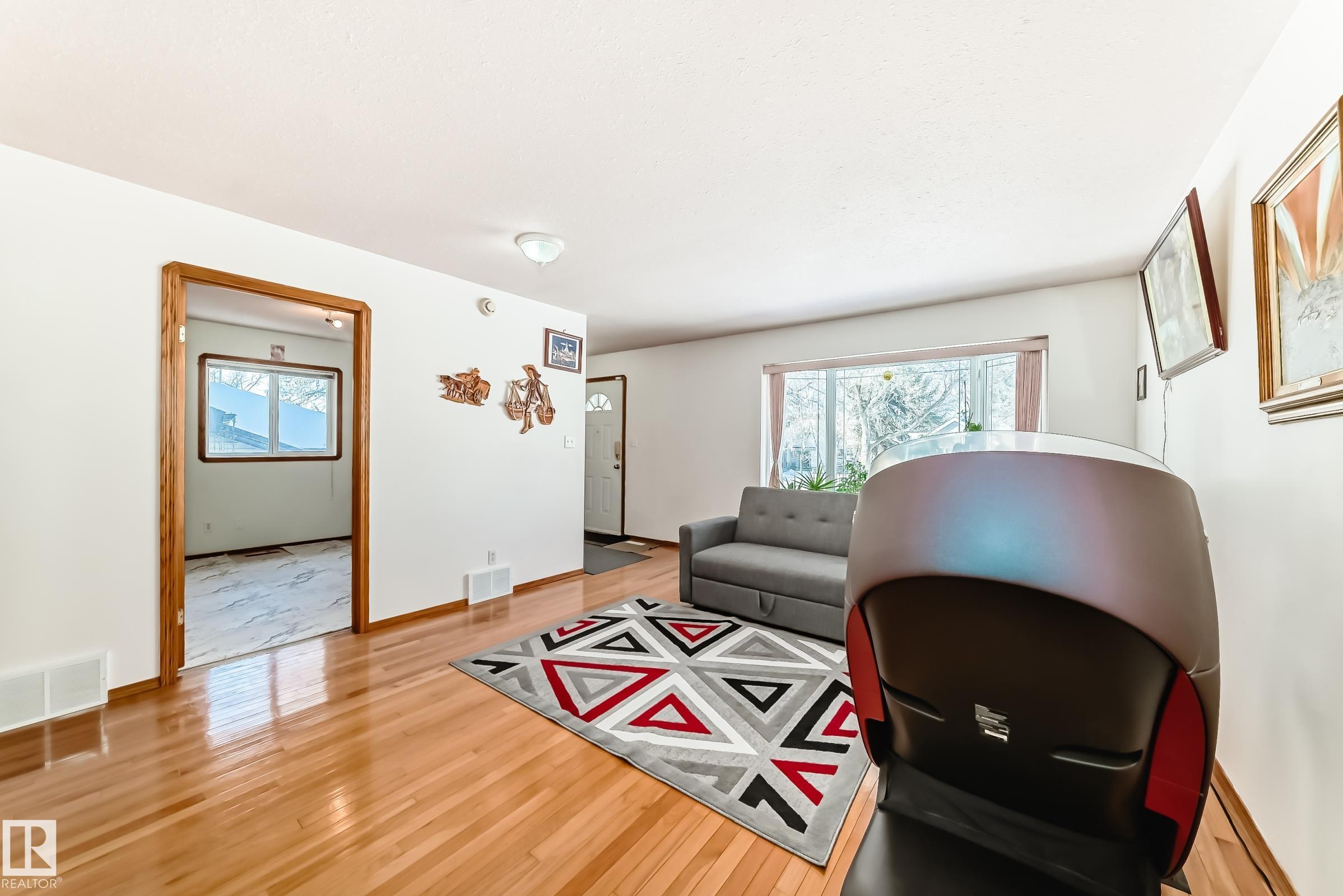 Located in the up-and-coming community of Eastwood, close to schools, transit and shopping, this well-maintained raised bi-level offers great value. Featuring a brand new roof (2025) and hot water tank (2025), this no-smoking, no-pet home is zoned RF3. The raised design enhances efficiency and natural light. Beautiful hardwood flooring complements the spacious living room with a large bay window. The open-concept kitchen offers custom honey oak cabinets, ceramic tile flooring and ample counter space. The primary bedroom includes an ensuite and large closet, with two additional bedrooms and a 4-piece bathroom completing the main level. A separate rear entrance provides potential for a future basement suite. The basement is partially finished with drywall and a bathroom already started. Solid wood beam construction between levels adds durability and sound insulation. A 22x22 oversized double garage completes this home.