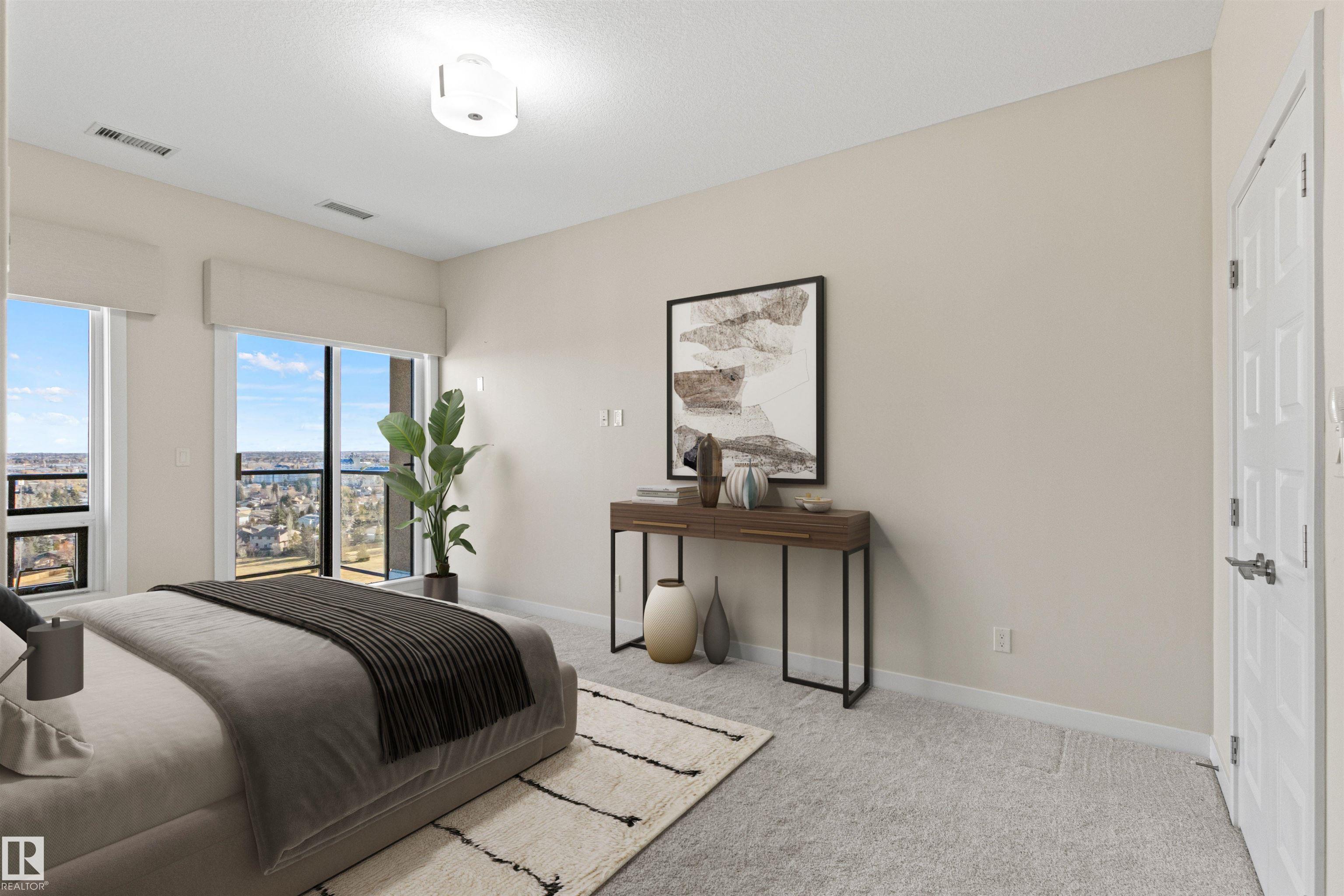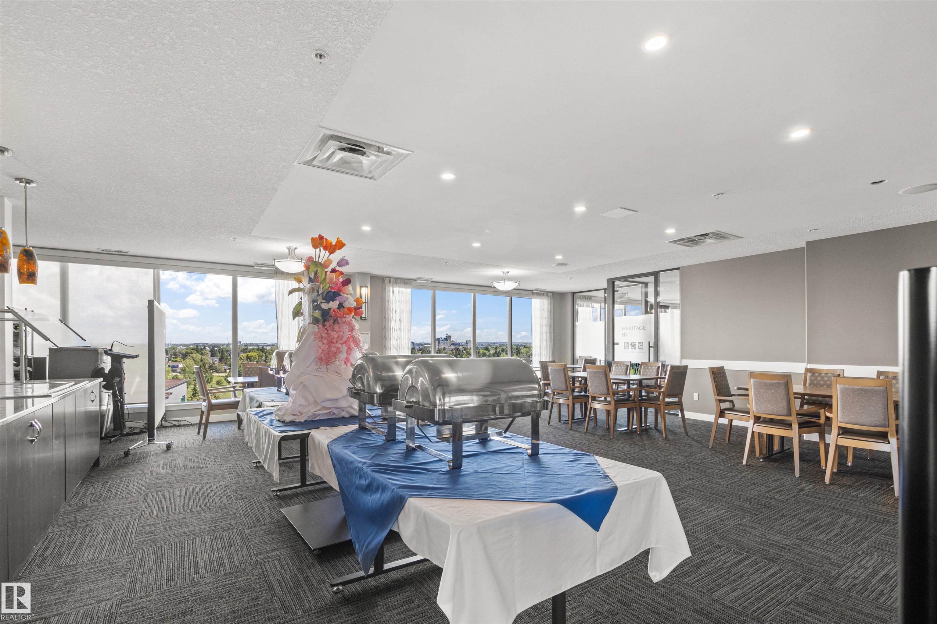 Rare Opportunity for a PENTHOUSE Unit at Heritage Tower@Century Park! This unit offers 3 bdrms & 2 full baths w/ BREATHTAKING views of Downtown/Skyline & Ermineskin Park. CUSTOM KITCHEN offers an OPEN CONCEPT to the dining & living room, a matching custom China cabinet, Kitchen Aid Appliances, Custom Window Coverings (remote blinds in Primary & Living), large island w/QUARTZ counters plus access to your wrap around balcony. Primary suite can accommodate a KING-SIZED bed PLUS offering a massive W/I closet & stunning EN-SUITE complete with WALK-IN SHOWER, HEATED TILE FLOOR + LARGE vanity w/ UPGRADED QUARTZ counters plus an abundance of storage. Main bath offers some special features as well as WALK-IN BATHTUB! 2 more bedrooms to accommodate guest space or office + separate laundry room w/ added storage complete the unit. This property also comes w/ titled tandem underground parking plus 2 titled storage lockers. Residents can also enjoy the onsite restaurant ,HomeCare in the building & active social room.