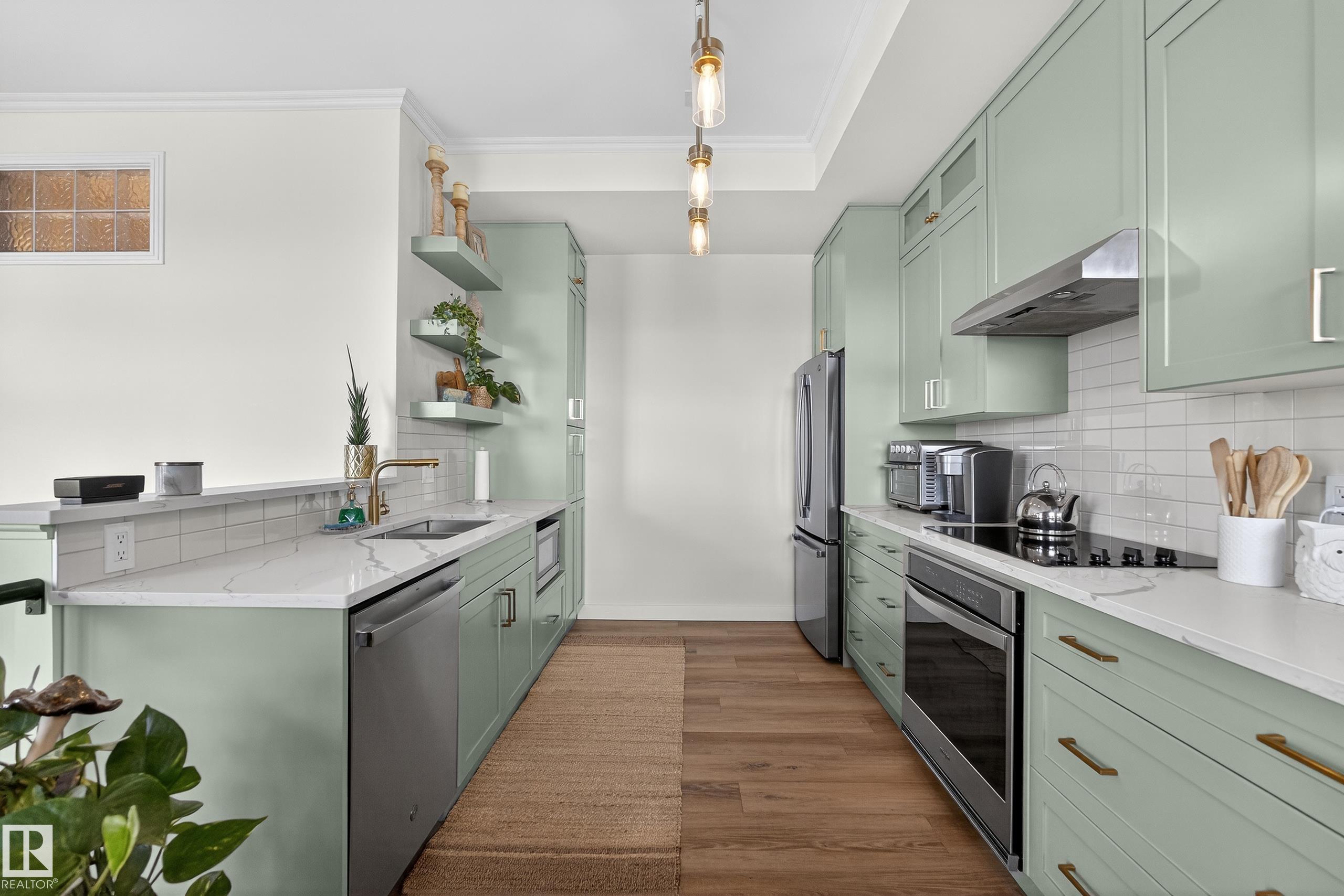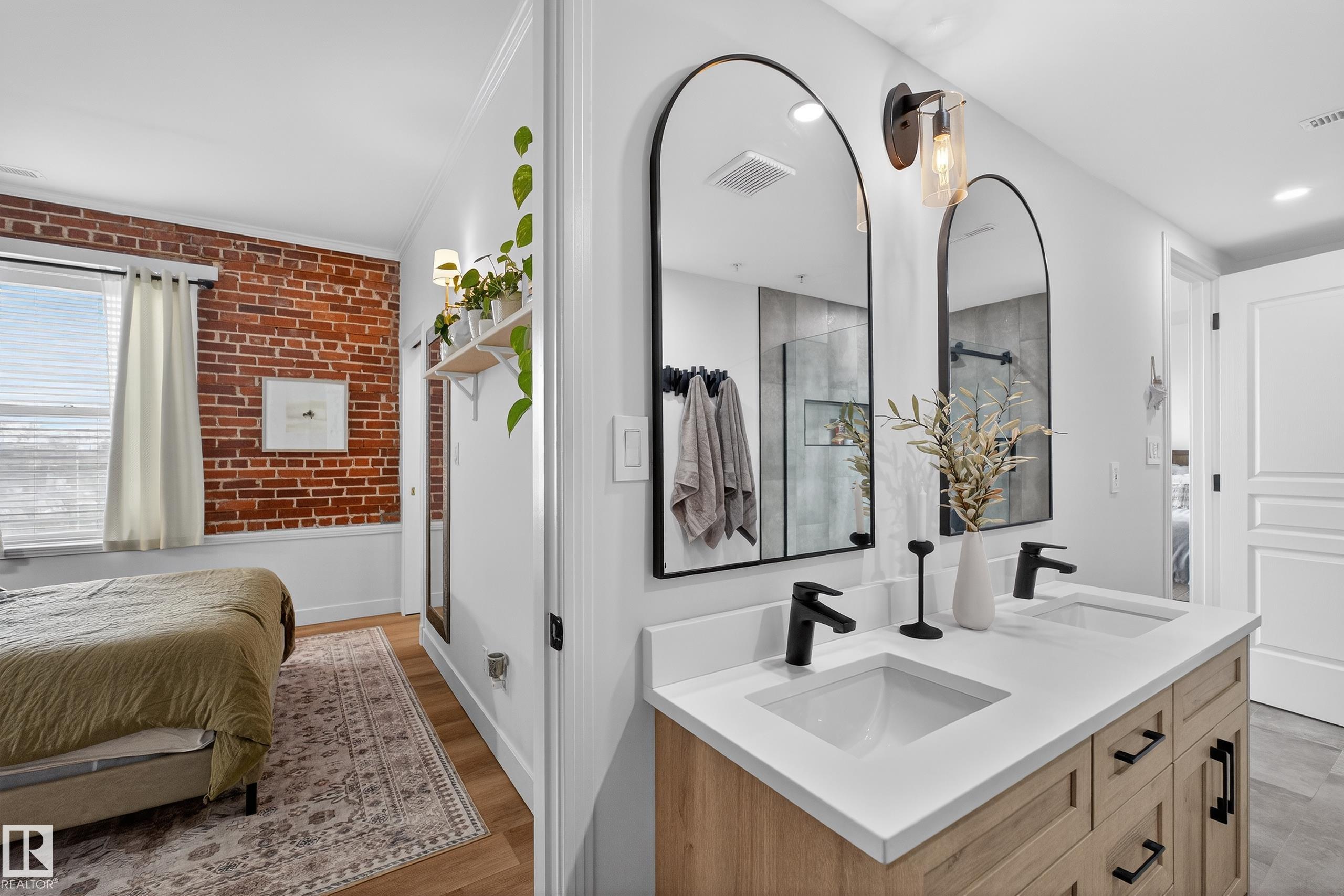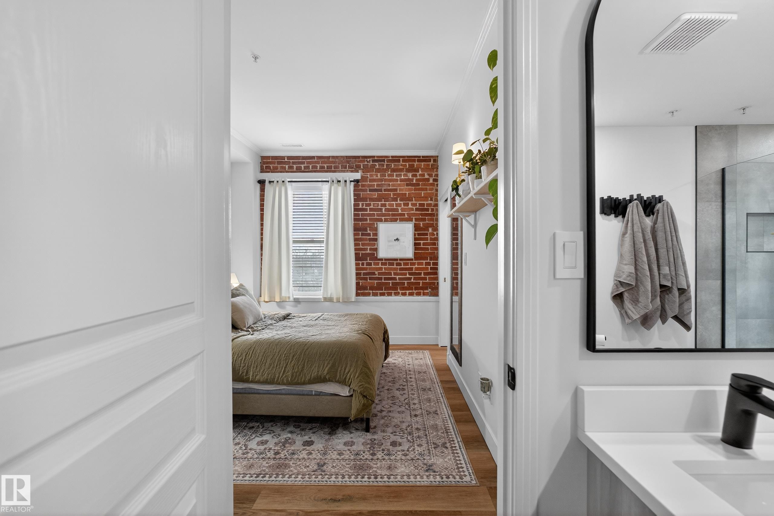 Welcome to this stunning fully renovated 2 bed, 2 bath two-storey condo in the heart of Garneau, just steps from the University of Alberta and vibrant Whyte Avenue. This unique unit offers a rare layout with main floor living featuring a bright south-facing exposure, large windows, spacious living room, full bath, and a beautifully updated kitchen and dining area. Your private in-suite staircase leads to the lower level where you'll find two generous bedrooms and a stylish 4-piece Jack & Jill bathroom with dual vanity. Showcasing exposed brick, modern finishes, and exceptional attention to detail throughout, this home blends character with contemporary design. Enjoy a large private balcony and unbeatable walkability to caf‚s, restaurants, shopping, and nightlife. Perfect for students, professionals, or investors seeking premium location and lifestyle. Rare opportunity in one of Edmonton's most sought-after locations--units like this don't come up often. Experience Garneau living at its finest.