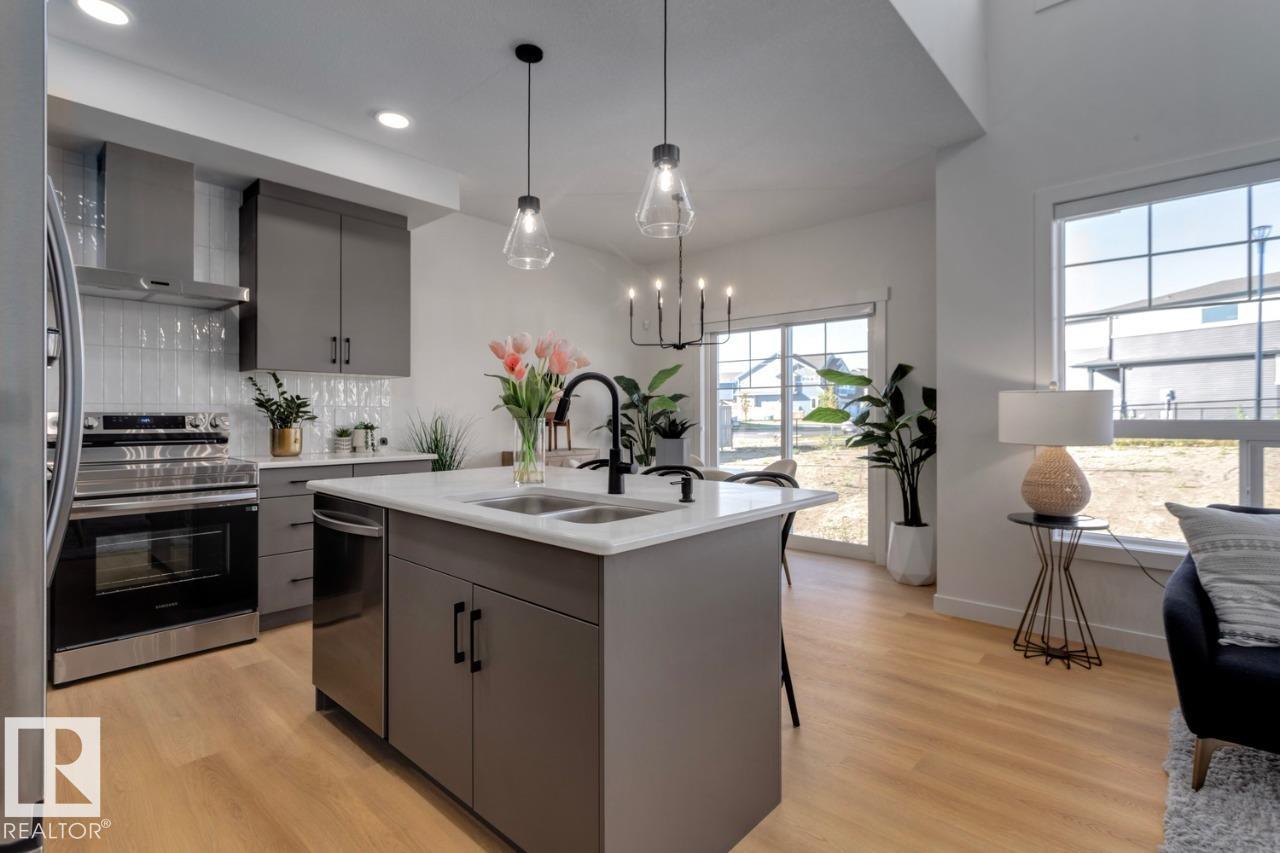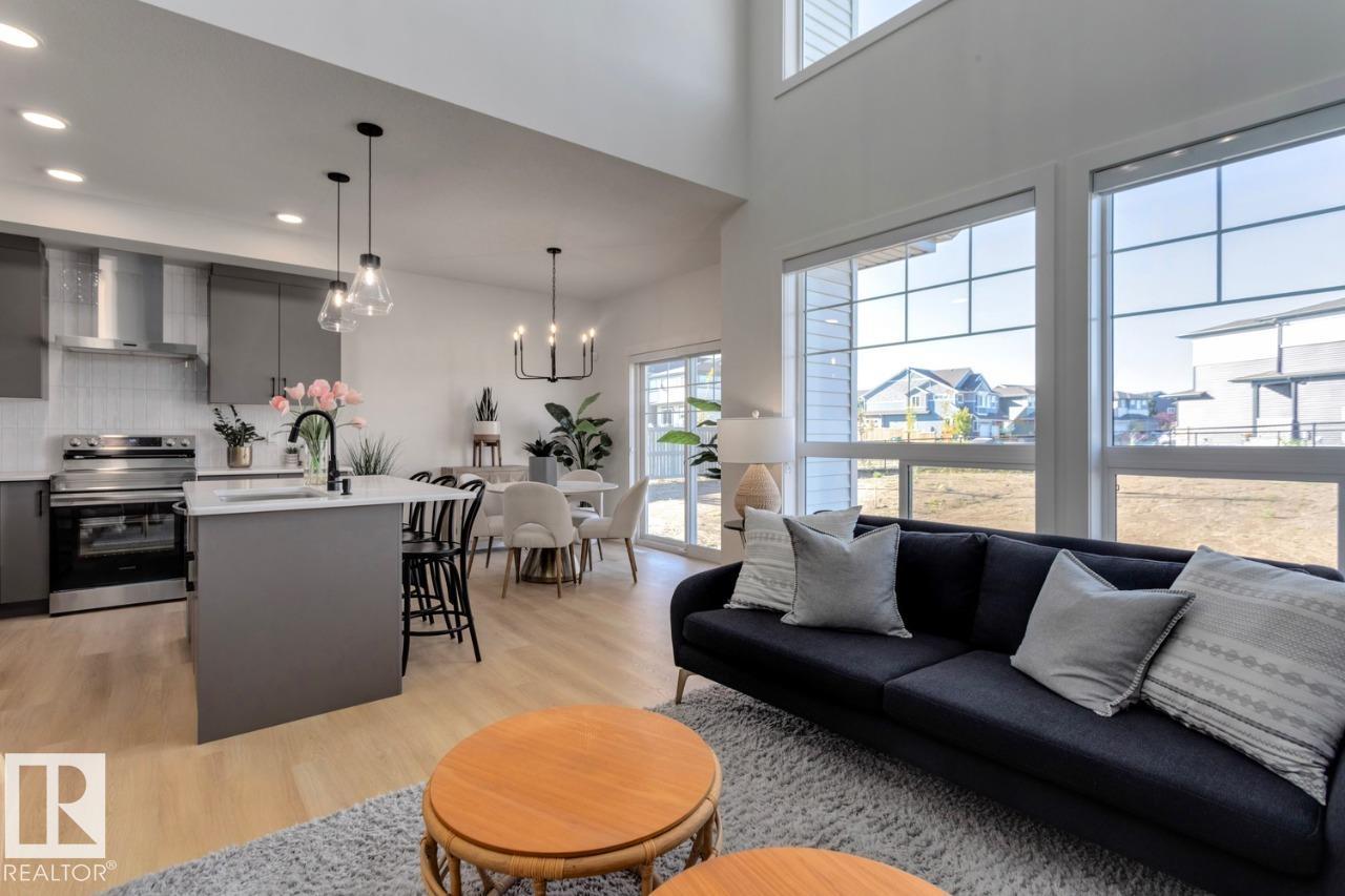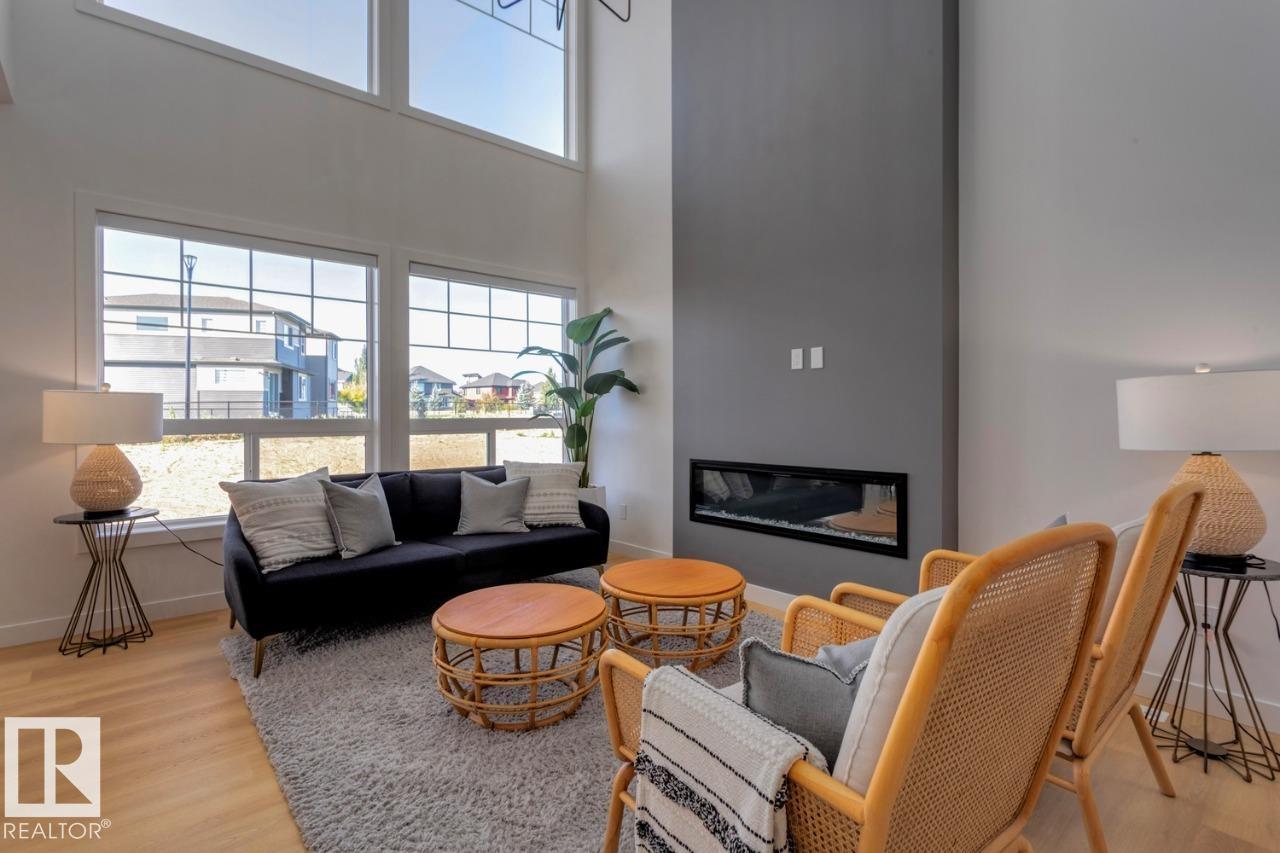 This Craftsman-style home features a main floor bedroom and full bathroom, along with an expansive mudroom that offers convenient access to both the laundry and a walk-through pantry. The generous dining nook is perfect for casual meals, while the kitchen boasts a substantial island with a flush eating bar. The great room is a standout with a 60" electric fireplace and soaring open-to-below ceilings. In the primary bedroom, you'll find an impressive 4-piece ensuite complete with a chic glass shower. The basement is designed with 9' ceilings and two large windows, adding to the home's airy, spacious feel.