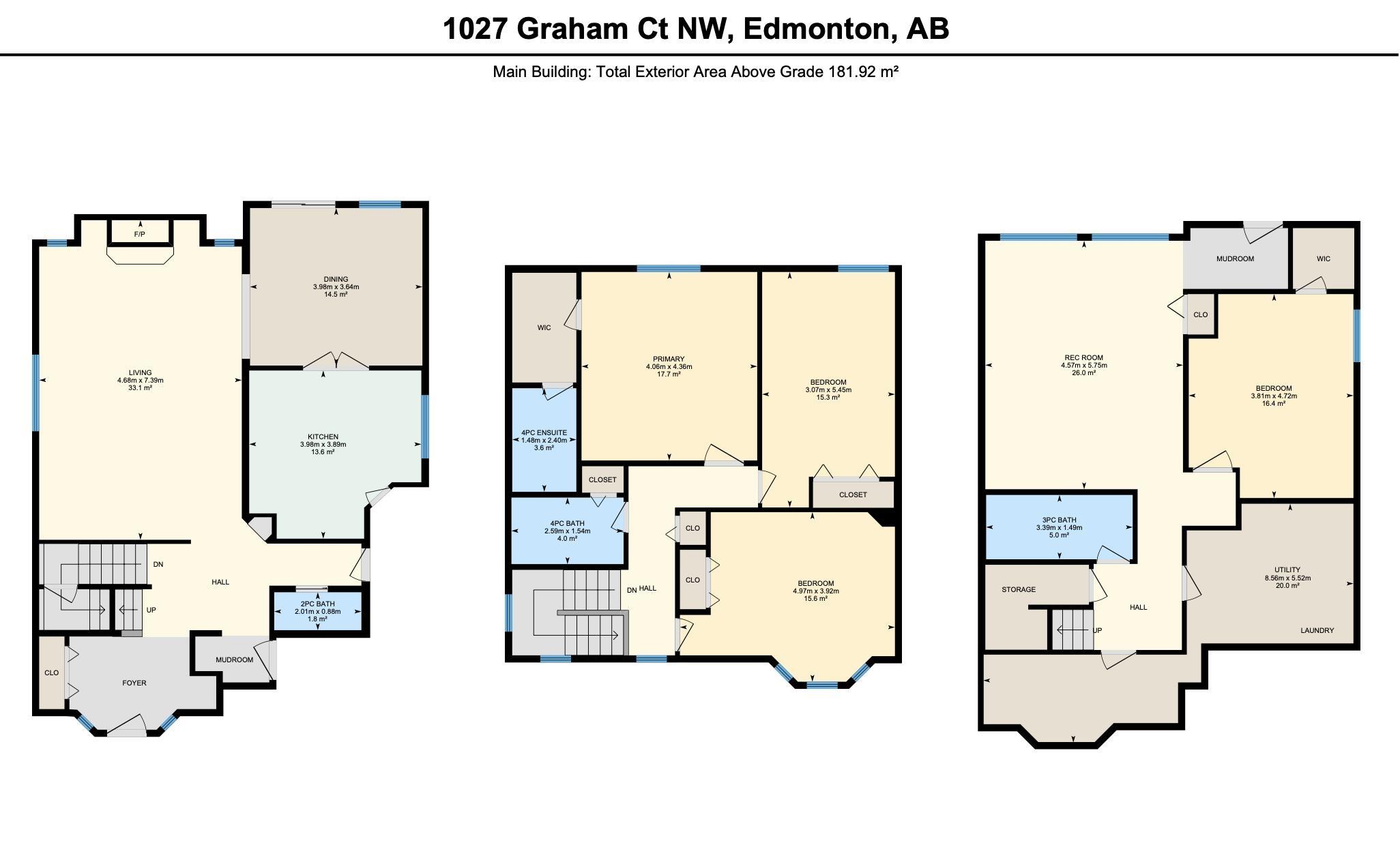 Welcome to this bright FRESHLY PAINTED 4 bed, 3.5 bath home in Glastonbury! With 1,958 sq. ft., this lovely home backs onto a peaceful park for extra privacy. The airy living room features a tile surround gas fireplace, and the spacious kitchen and dining area flow nicely out to the deck -- perfect for family BBQs. Upstairs has 3 generous bedrooms, including a primary with walk-in closet and 3pc ensuite, plus another full bath. The fully finished infloor heated WALK-OUT BASEMENT adds even more space with a huge rec room, a 4th bedroom, utility room, and 3pc bath. Enjoy a fenced backyard and a double attached garage for convenience. Other upgrades include: 4 year old roof, water softener. Great location near playgrounds, schools, public transit, and shopping -- everything you need is close by!