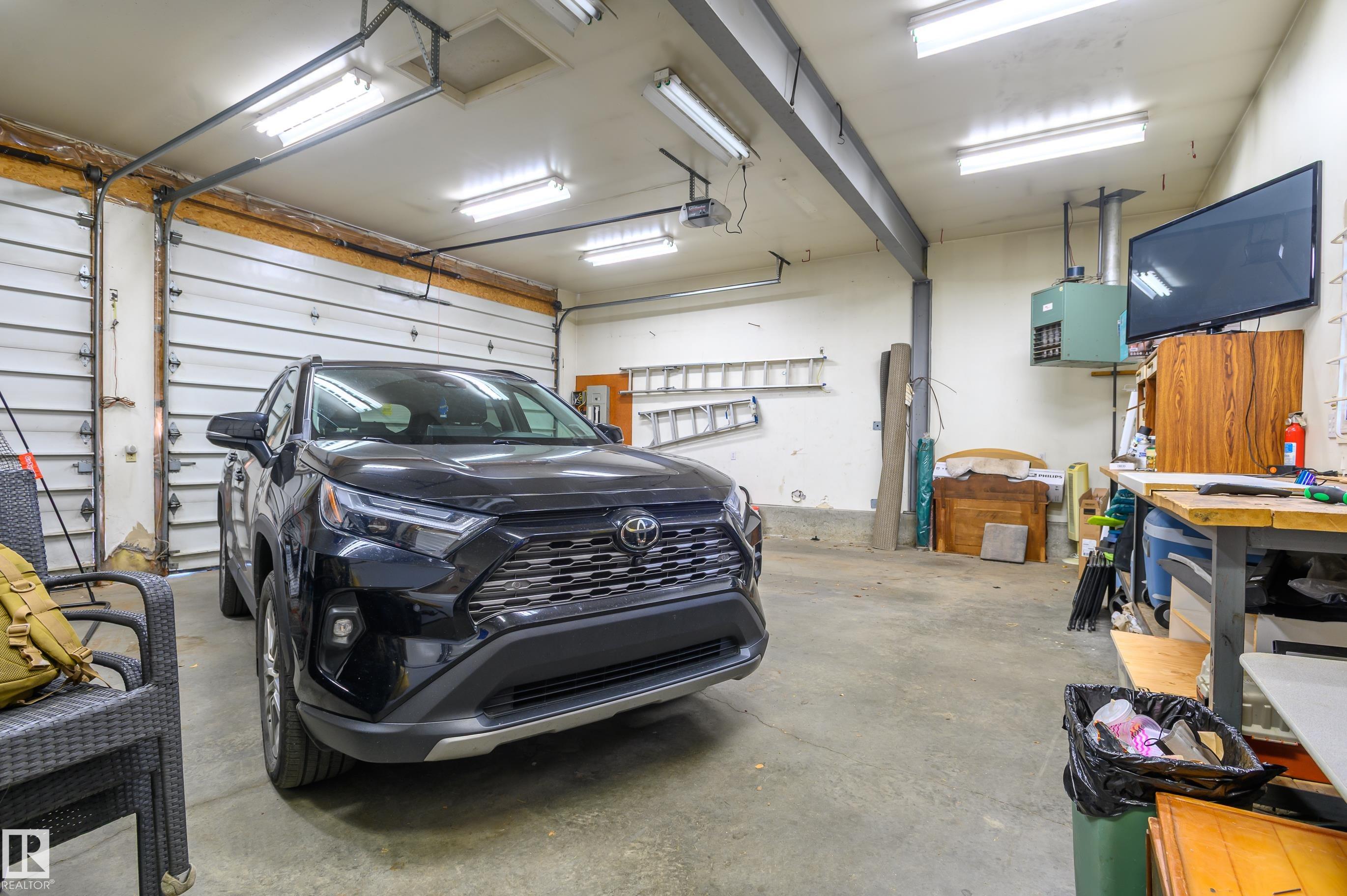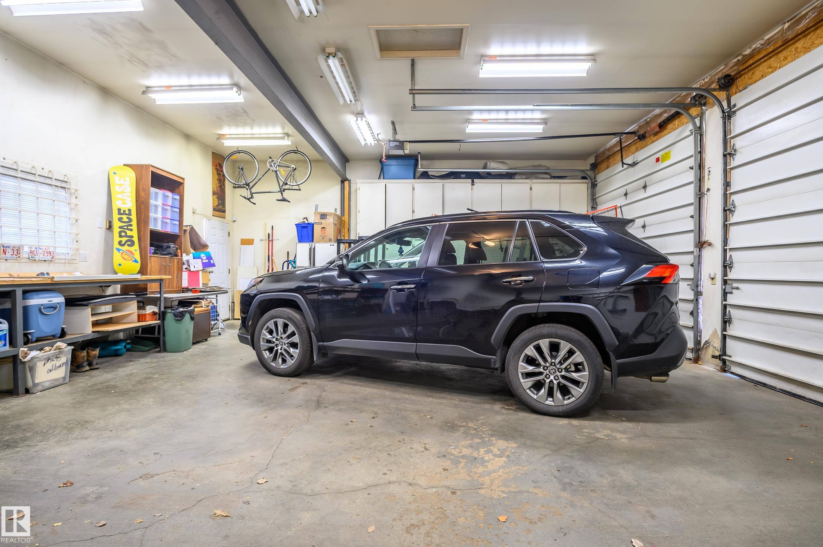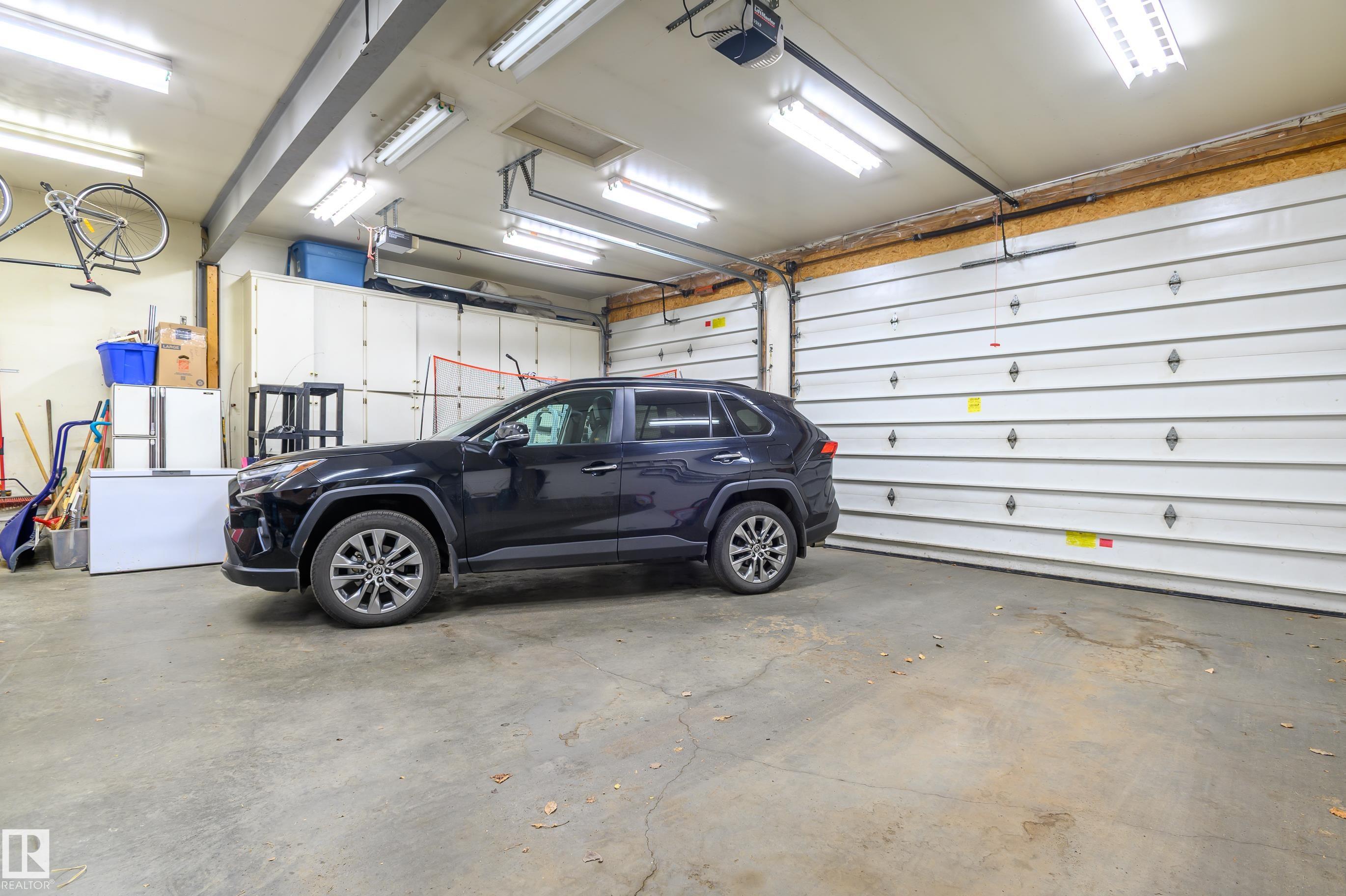 OVERSIZED TRIPLE GARAGE with a beautiful, upgraded 2-story home! Keep your cars (or toys) dry and accessible this winter! This home is filled with natural light from the west front windows. The main floor has a large kitchen, dining room & living room with a full bath & main floor bedroom. Upstairs has 3 large bedrooms and a 3 piece bathroom. The basement features a huge bonus/rec room, bedroom, full bathroom/ensuite & walk-in closet. Recent upgrades include Furnace(2025) & HWT(2022). The 31'x25' 3 car garage has 10' doors(3), 11' ceiling, hoist beam, heater (recently serviced in great shape), bright lighting, shelving & internet connection - all the car enthusiast/hobbyist/mechanic/indoor golfer could ever want. A fantastic spot for a Man Cave! There's RV parking too enclosed by a gate! You'll have 8 parking spots at the back of the house. There's no yard maintenance in the back which has a deck w/gas hookup. All this in a quiet neighborhood backing the ravine. House & garage are shown in Virtual Tour.