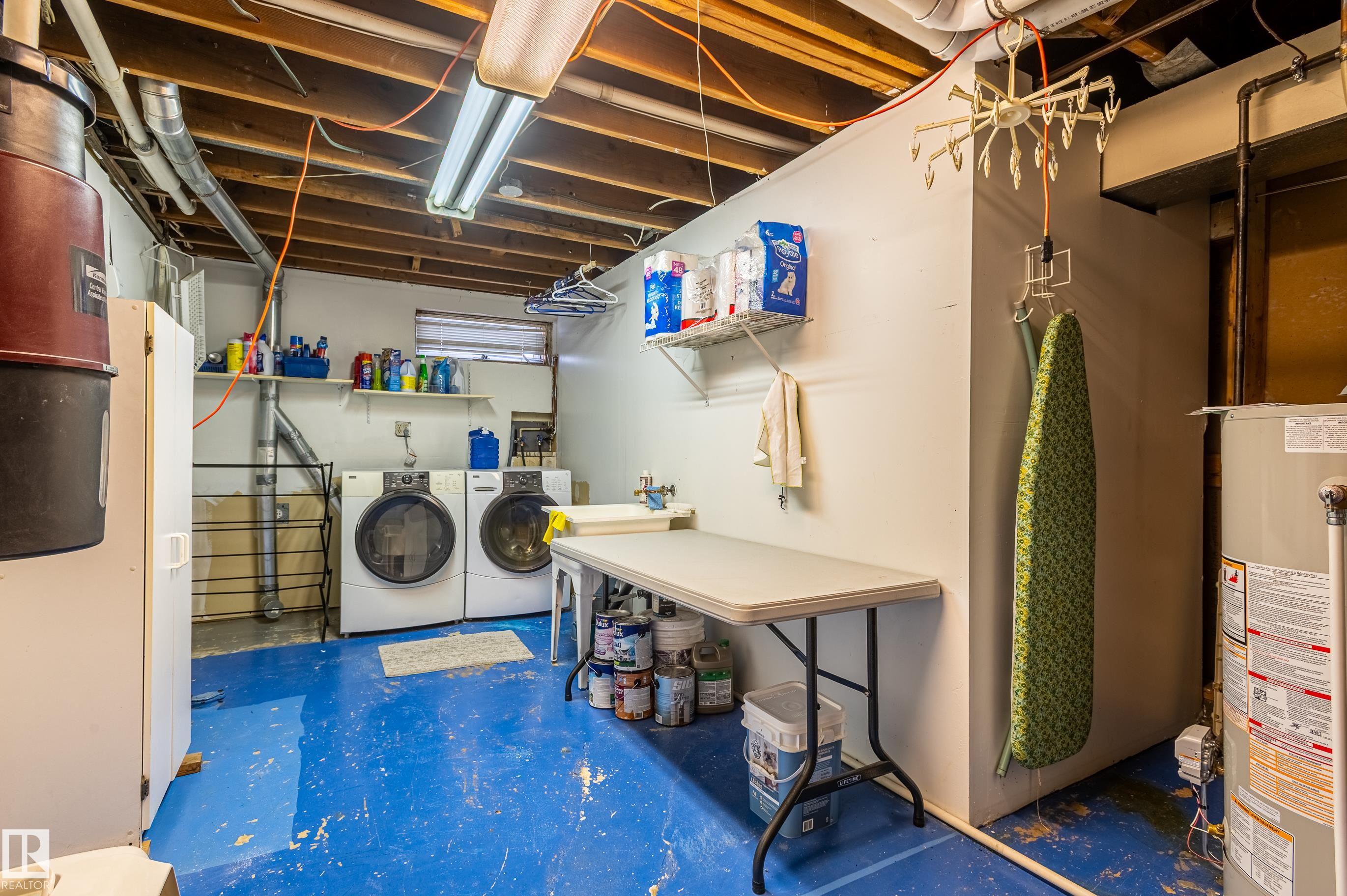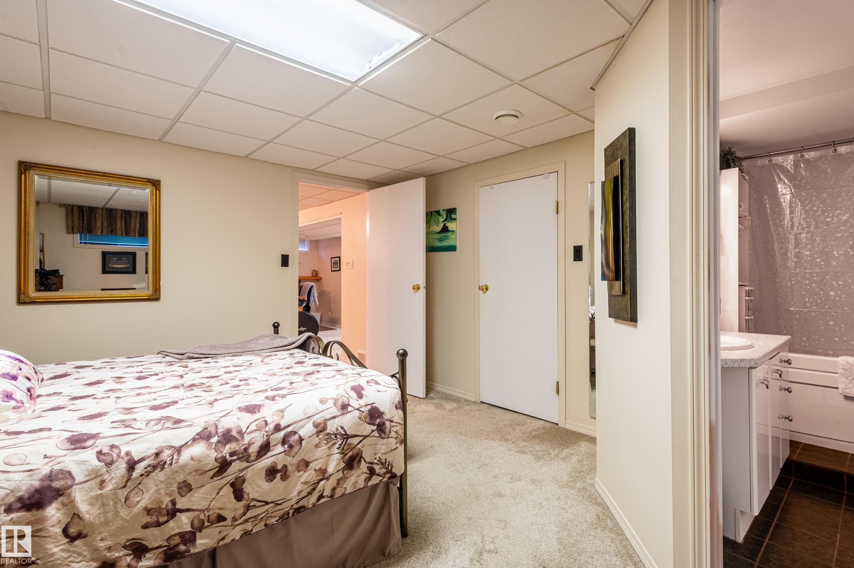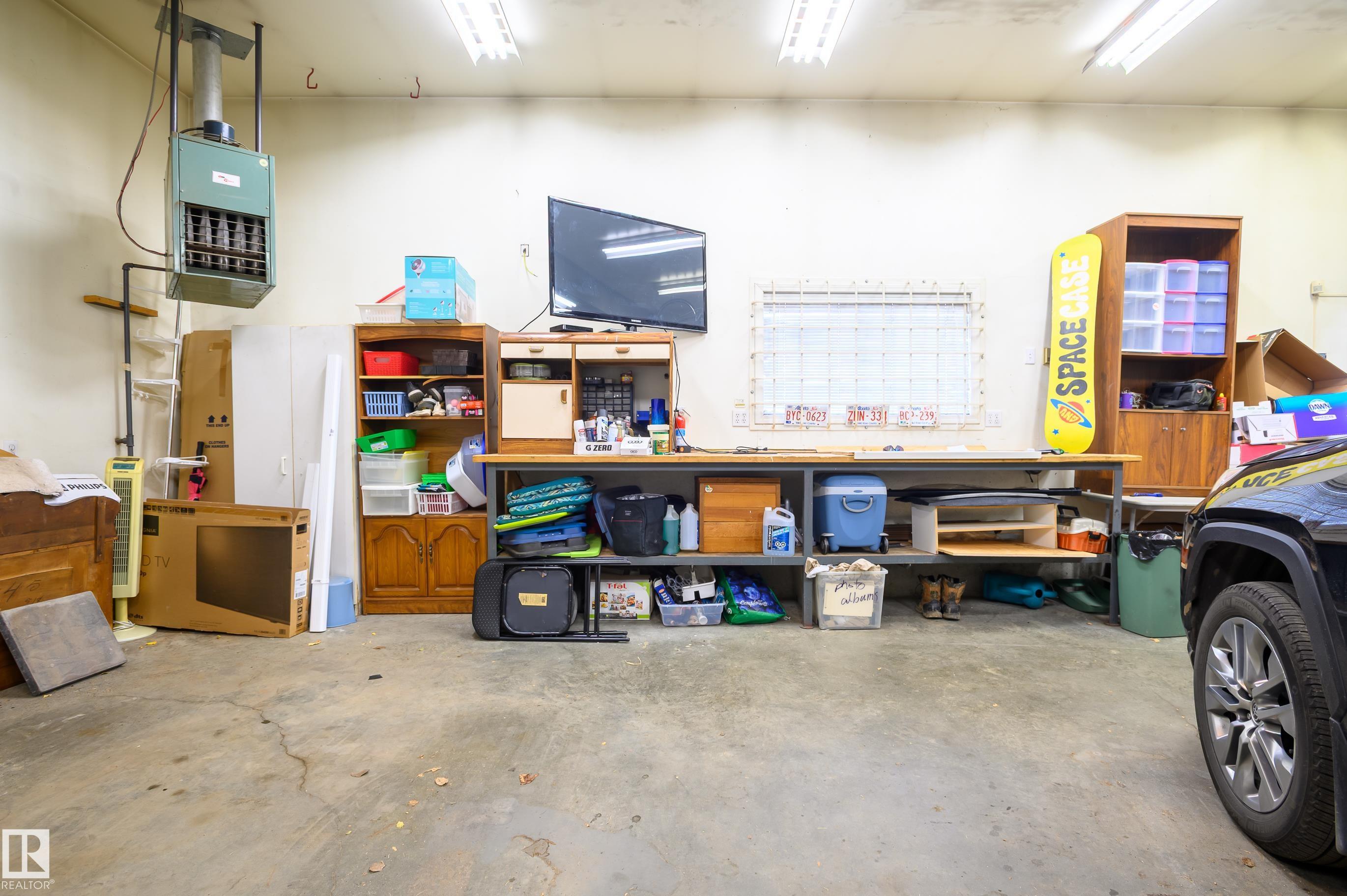 OVERSIZED TRIPLE GARAGE with a beautiful, upgraded 2-story home! Keep your cars (or toys) dry and accessible this winter! This home is filled with natural light from the west front windows. The main floor has a large kitchen, dining room & living room with a full bath & main floor bedroom. Upstairs has 3 large bedrooms and a 3 piece bathroom. The basement features a huge bonus/rec room, bedroom, full bathroom/ensuite & walk-in closet. Recent upgrades include Furnace(2025) & HWT(2022). The 31'x25' 3 car garage has 10' doors(3), 11' ceiling, hoist beam, heater (recently serviced in great shape), bright lighting, shelving & internet connection - all the car enthusiast/hobbyist/mechanic/indoor golfer could ever want. A fantastic spot for a Man Cave! There's RV parking too enclosed by a gate! You'll have 8 parking spots at the back of the house. There's no yard maintenance in the back which has a deck w/gas hookup. All this in a quiet neighborhood backing the ravine. House & garage are shown in Virtual Tour.