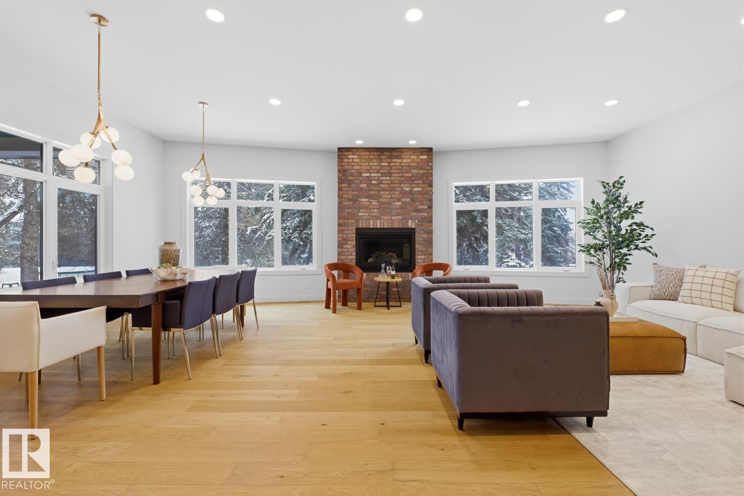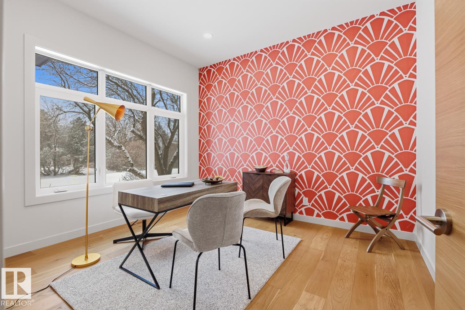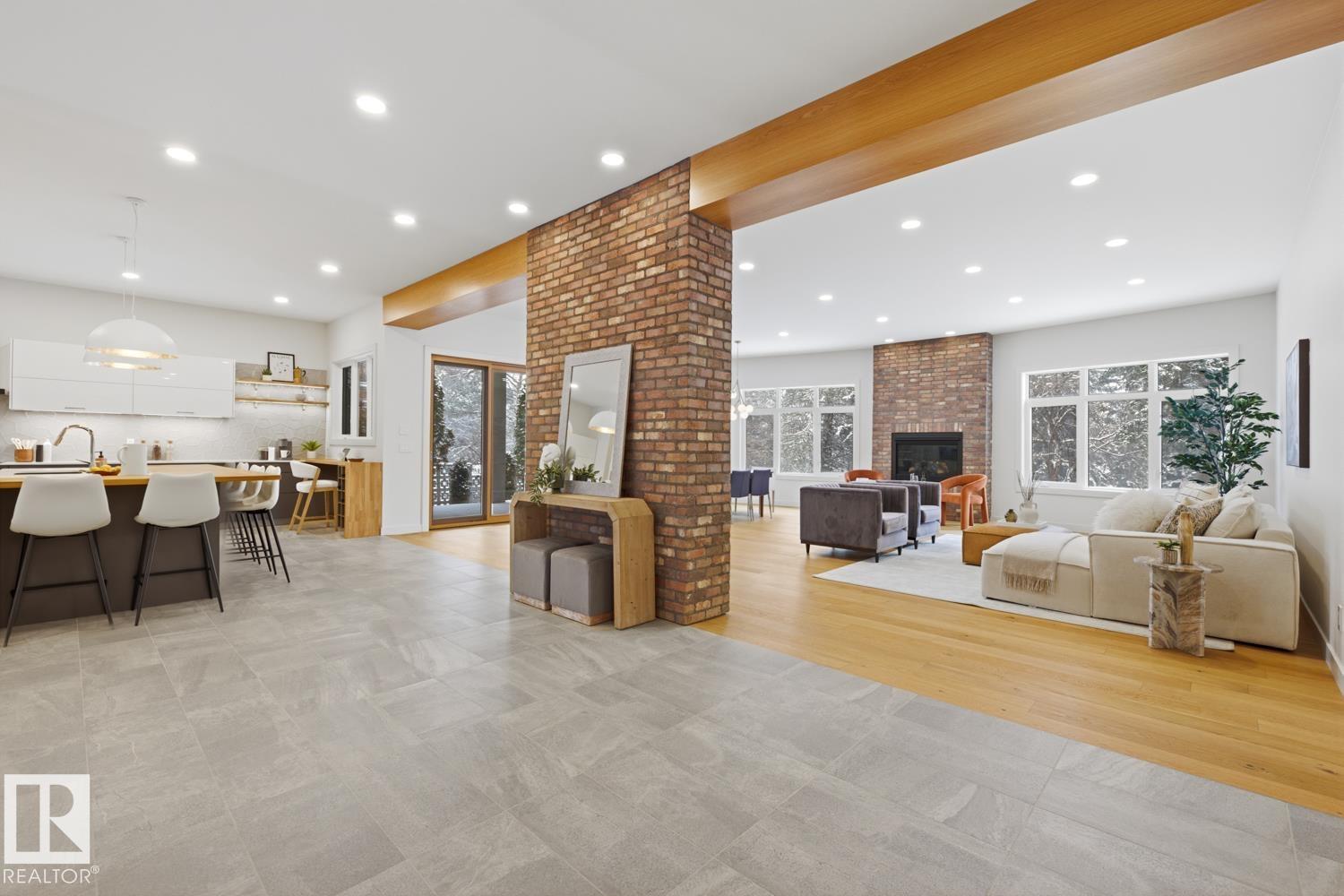Prestigious GRANDVIEW a rare NEW with over 5,790 sqft living space, custom contemporary infill steps from UofA, minutes from the newly announced Stollery Children's Hospital, elevating this already prime location. This 5-bed, 6-bath masterpiece features an open layout, chef's kitchen, Dekton counters, high-end appliances, a butler's pantry. Main floor showcases white-oak hardwood, designer fireplace, office/den, stylish bath, and a large gear/storage room. Sliders open to a covered, heated deck overlooking the treed ravine. Upper level offers a luxury primary suite, plus two bedrooms each with their own ensuite and in-floor heating, laundry room, and a bonus area with doors to a covered, heated balcony engineered for a future hot tub. Fully finished basement includes cold room, 2 large bedrooms, 2 full baths, spacious rec room, and in-floor heating. Home features 2 furnaces (4 zones), AC, central vac, humidifier, and an oversized heated garage. Situated on a landscaped, park-like lot with mature trees.