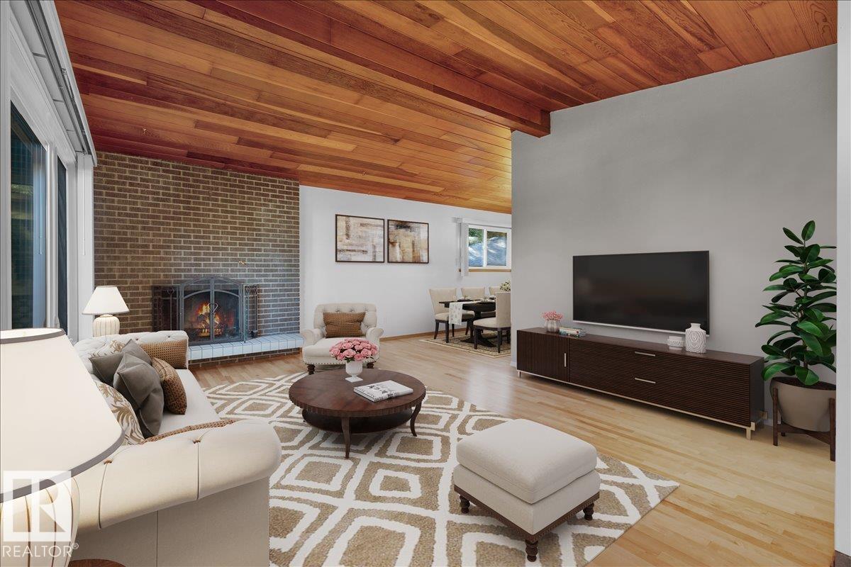 Fantastic 5 bedroom 2.5 bath home in desirable Greenfield could be yours. This 60's era former showhome has many updates and is ready for you to call home. As you enter the beautiful front door you will be greeted by hardwood floors, a vaulted ceiling and wood burning fireplace. You will notice the updated vinyl windows and a beautiful kitchen with granite counter tops, new honeycomb tile backsplash, and updated stainless steel appliances. The main floor boasts 3 bedrooms with a primary ensuite and full 4 piece bath. The finished basement has 2 sizeable bedrooms, bathroom and a large living area with fireplace. Updated furnace and large tiled laundry and storage area round out the basement. The south facing backyard has apple tree's and room to grow and entertain. Newer concrete poured for the rear driveway and double garage with epoxy finished floors. Close to great schools (kids can attend k-12 here!) and easy access to all amenities. This is a great find in a great location. Come see today!
