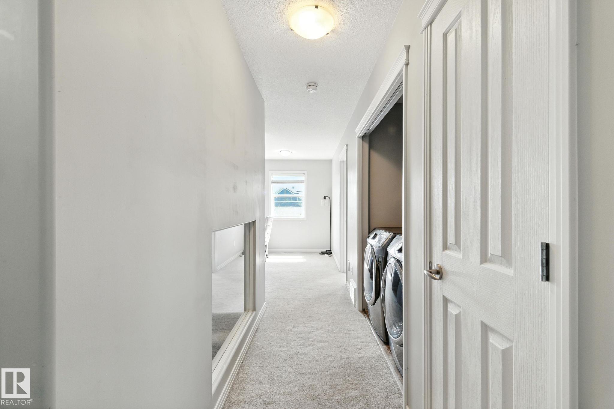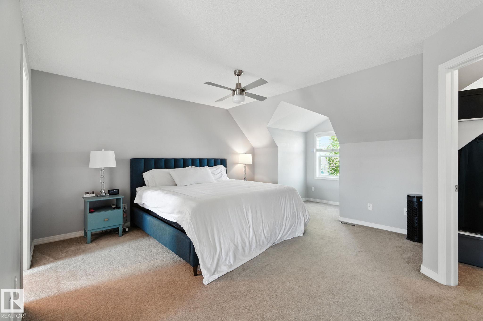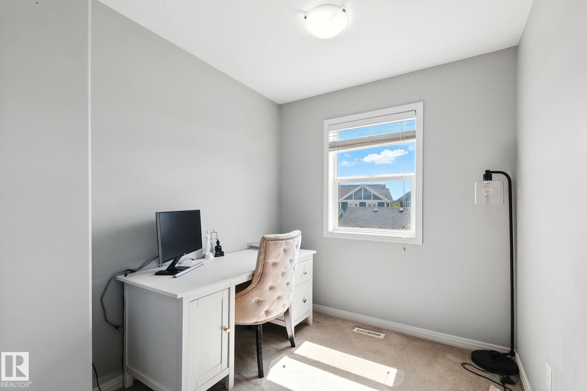 A 3 bedroom, 2 1/2 bath, 2000 sq ft townhome, with a south facing backyard, a double GARAGE and located in the VIBRANT community of Griesbach...WOW! First, step into a cozy living room, complete with a warm FIREPLACE, perfect for relaxing evenings. The kitchen features classic white cabinetry, sleek black appliances, ample counter space and a dining area that overlooks the sunny backyard. A large pantry and a convenient 2-piece bathroom complete the main floor. Upstairs, you'll find a versatile OFFICE area, laundry, and two generously sized bedrooms connected by a stylish Jack and Jill bathroom. The top-level primary suite is a true RETREAT. Enjoy a stand alone tub nestled in a charming dormer, a MASSIVE walk-in closet, and plenty of space for reading nooks or a quiet workspace. The backyard is ideal for entertaining, with a deck perfect for BBQs and a great-sized YARD where kids can play. Close to, schools, shopping, TRENDY coffee shops, and easy access to downtown and the Anthony Henday.