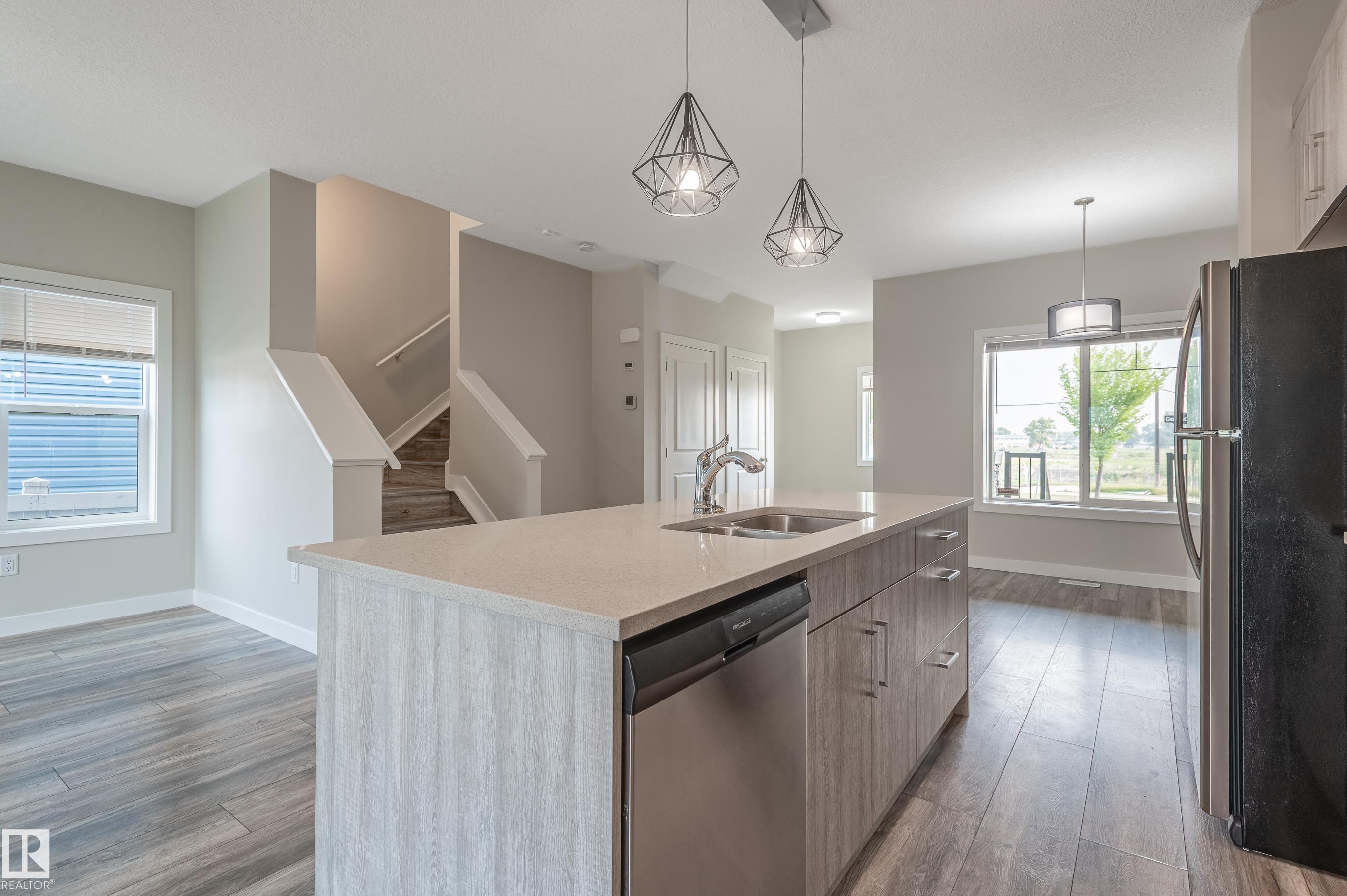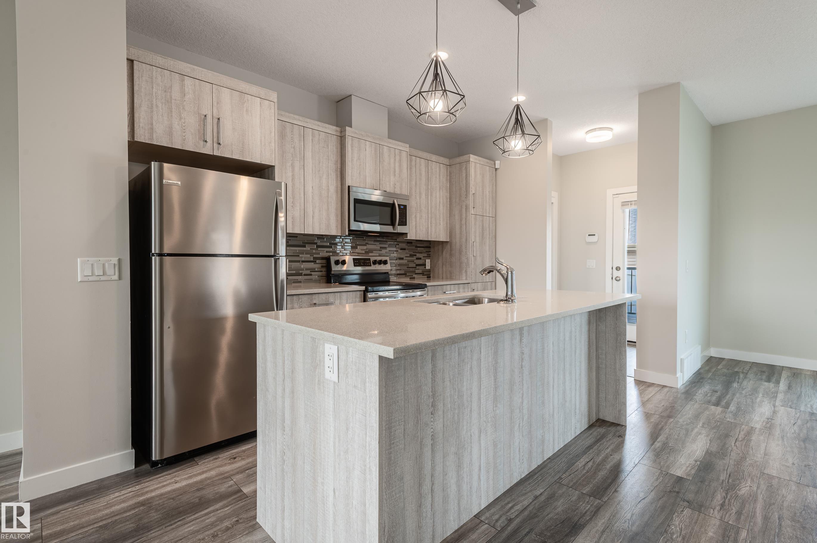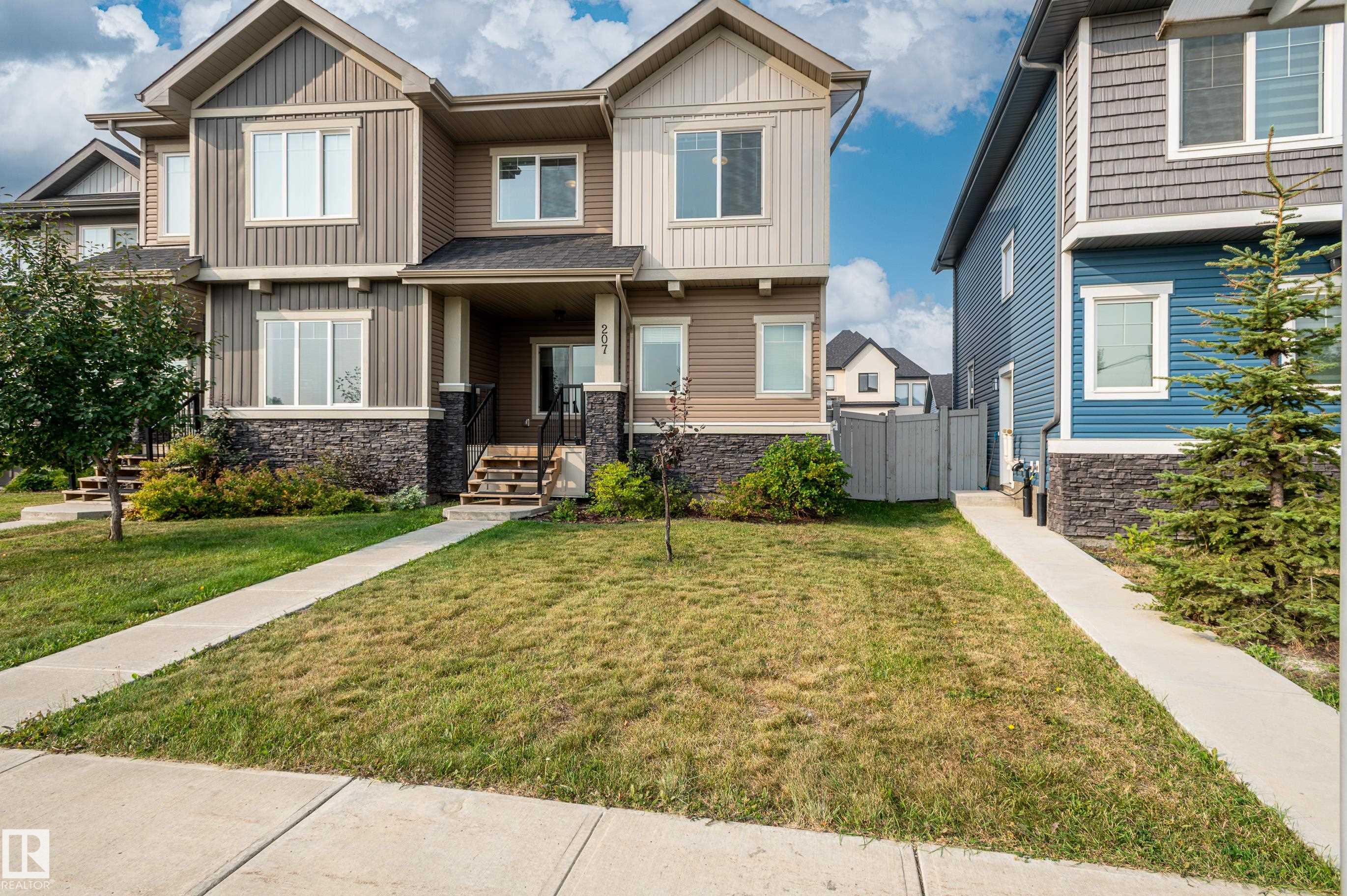 Beautiful and immaculate half duplex in the premier, family-friendly community of Griesbach! This stylish home offers over 1,500 sq. ft. above grade plus a fully finished 665 sq. ft. basement, giving your family plenty of room to grow. The bright and open main floor features modern finishes, spacious living and dining areas, and a well-appointed kitchen with modern finishes and Quartz counters. Upstairs you'll find comfortable bedrooms, including a generous primary suite with an ensuite bath. Even the main bedroom bath is equipped with Quartz countertops and double sinks. The fully finished basement includes an in-law suite, perfect for extended family, a nanny, or guests. Located in one of Edmonton's most desirable neighborhoods, you'll love being steps from schools, parks, greenspaces, walking trails and a community garden, while enjoying quick access to shopping and major routes. A turn-key home in a vibrant community, ready for your family to move in and make lasting memories!