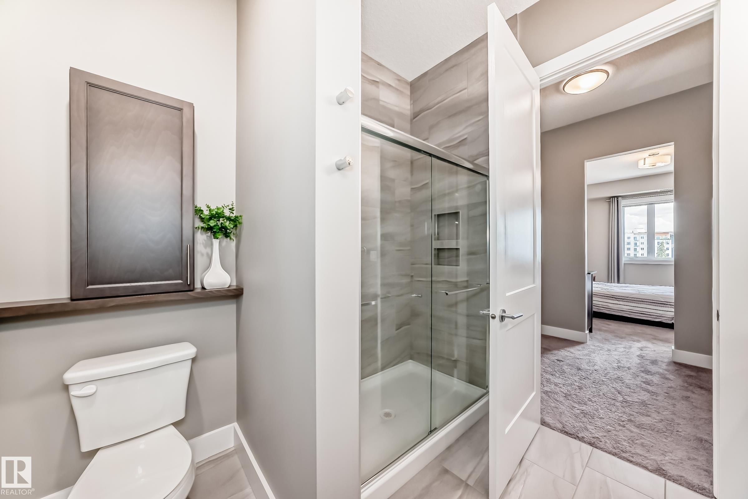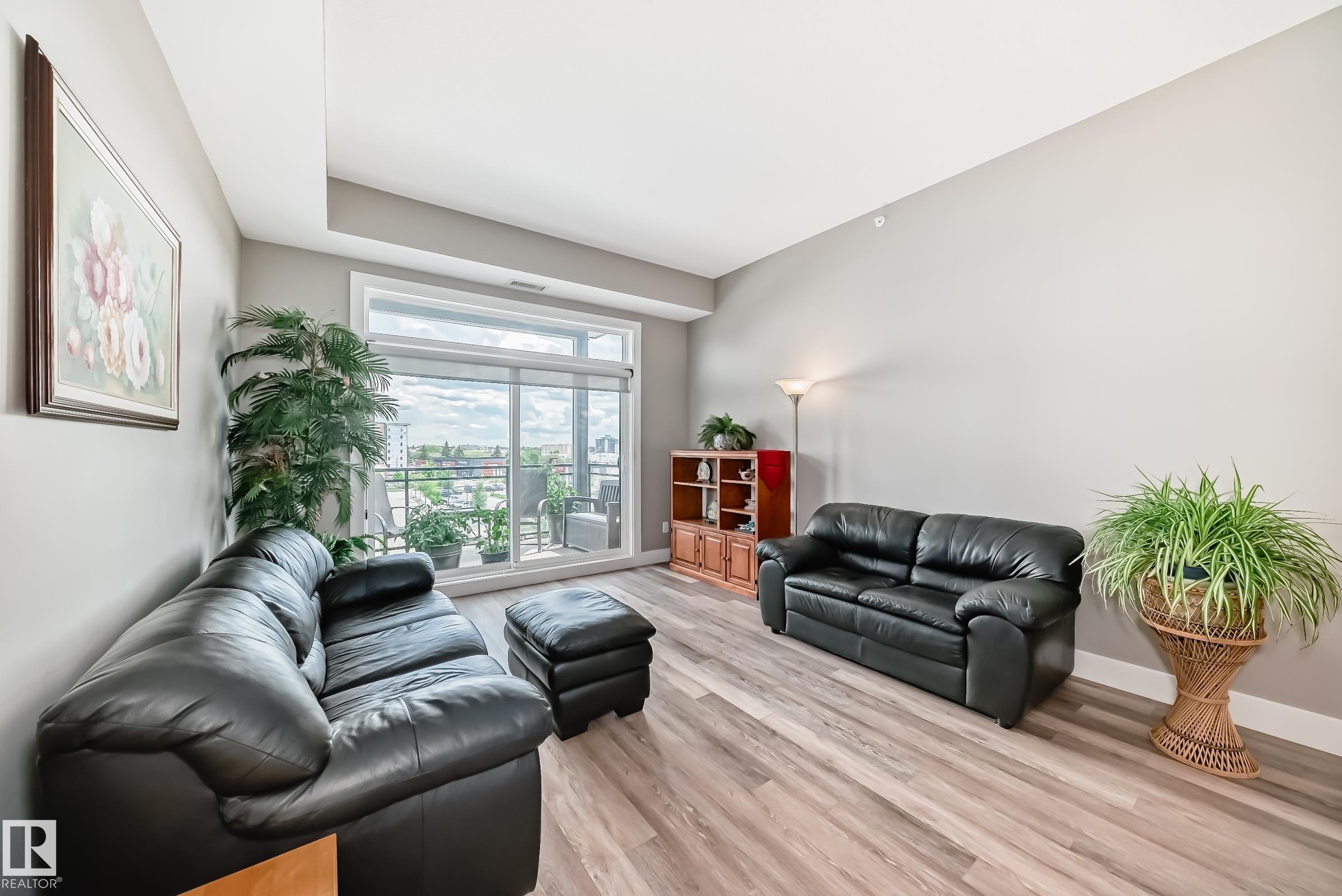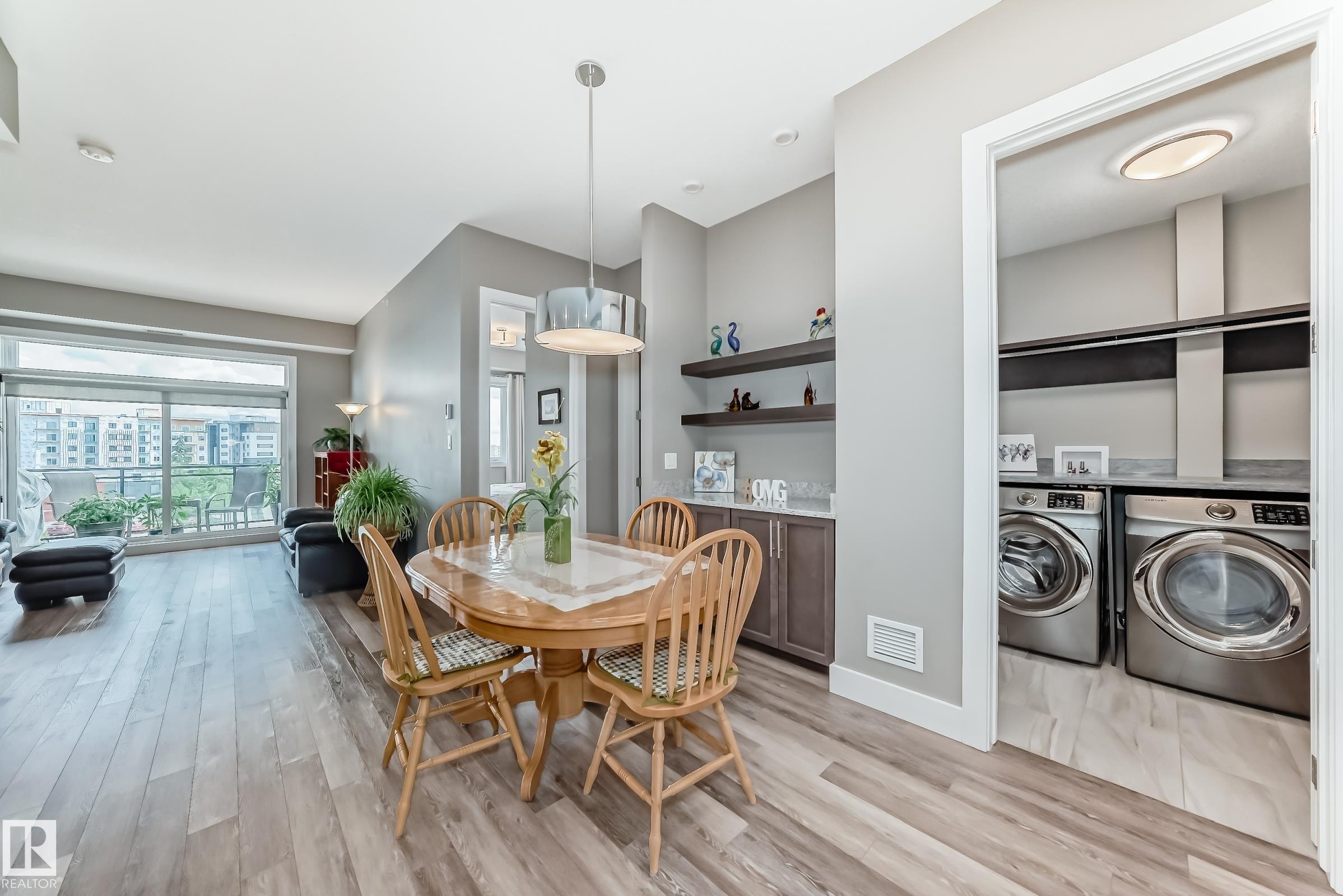 Welcome to this Superior Curb Appeal top floor, 2 bedrooms, 2 bathrooms condo offers Unparalleled Value and Build Quality, situated in the desirable Griesbach community! only steps to Lakes, Park, Playground, Walking-trail, K-9 School, Shopping, shops, restaurants, Northgate ETS, etc... Features open concept, large & bright 10 ft ceiling living room with luxury vinyl plank floorings throughout enhance the sophistication & elevate the allure of this home! Great balcony offers beautify downtown view & perfect for summer BBQ! Spacious kitchen boasts SS appliances, large kitchen island, quartz countertops & an abundance of cabinets. 2 sizable bedrooms & a 4 piece bathroom. King-sized master bedroom c/w a 4pc en-suite & walk-through closet. An in-suite laundry with high-end front load washer & dryer. Title heated underground parking stall with a storage cage. Building amenities including fitness room, guest suite & social room. Shows 10/10! Quick possession available. Just move-in & ENJOY!