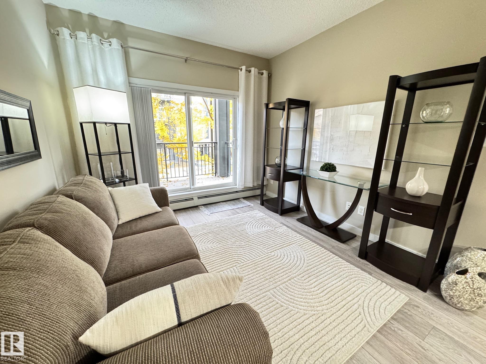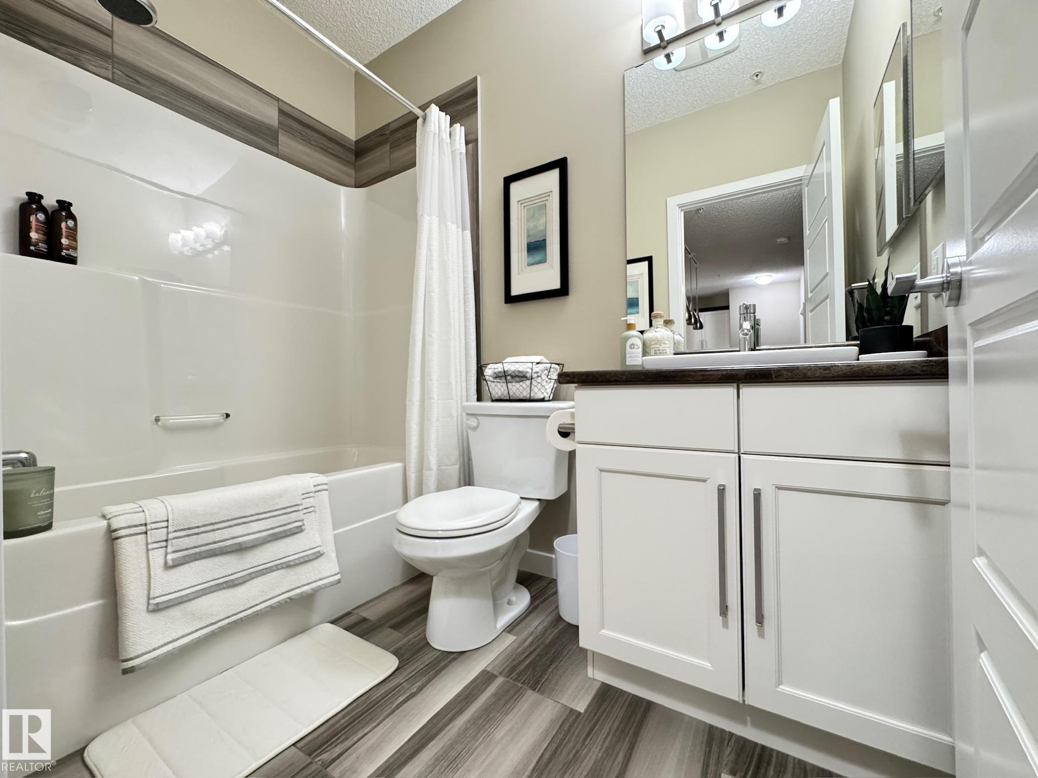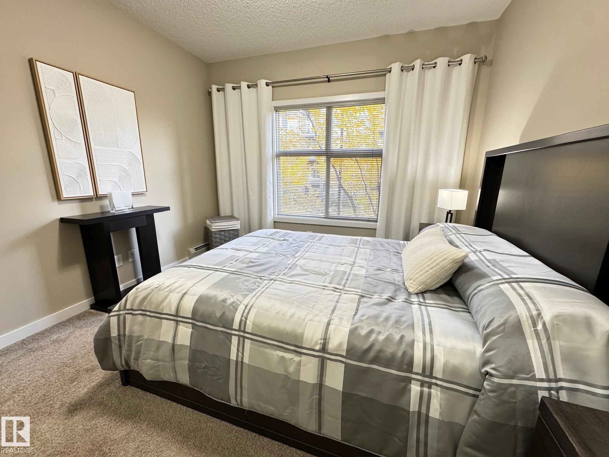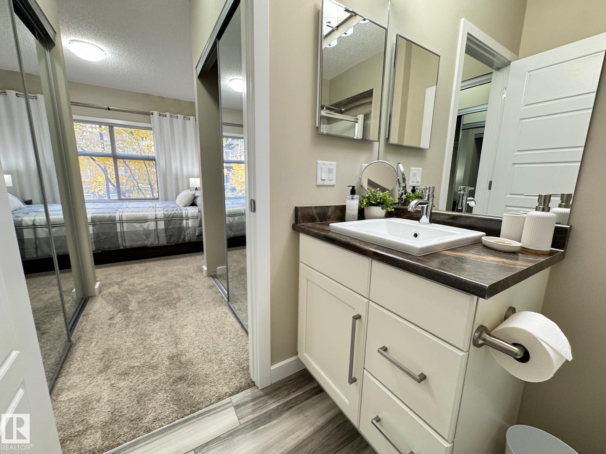 Welcome to the Valour Condominiums in the Village at Griesbach... where nature, convenience and walkability are at the forefront of this award winning community. This 2 bedroom, 2 bathroom unit is meticulously kept and has all of the features and amenities you could possibly want & need. Perfect for seniors, professional couples or singles who work downtown. Features include 9ft ceilings, laminate floor, a wonderful open kitchen with island seating, stainless steel appliances and timeless cabinetry. A beautiful primary bedroom showcases 2 large mirrored walk through closets that lead to a wonderful ensuite with walk-in shower. In-suite laundry, storage & pantry, as well as an 8'x12' outdoor covered patio space. Heated, underground parking stall, social room with pool table & wet bar (next door), exercise gym (building 504). Invest in a unique, growing community with tons of amenities, walking paths, community gardens, local restaurants & coffee shops, close to YMCA and minutes from the Anthony Henday!
