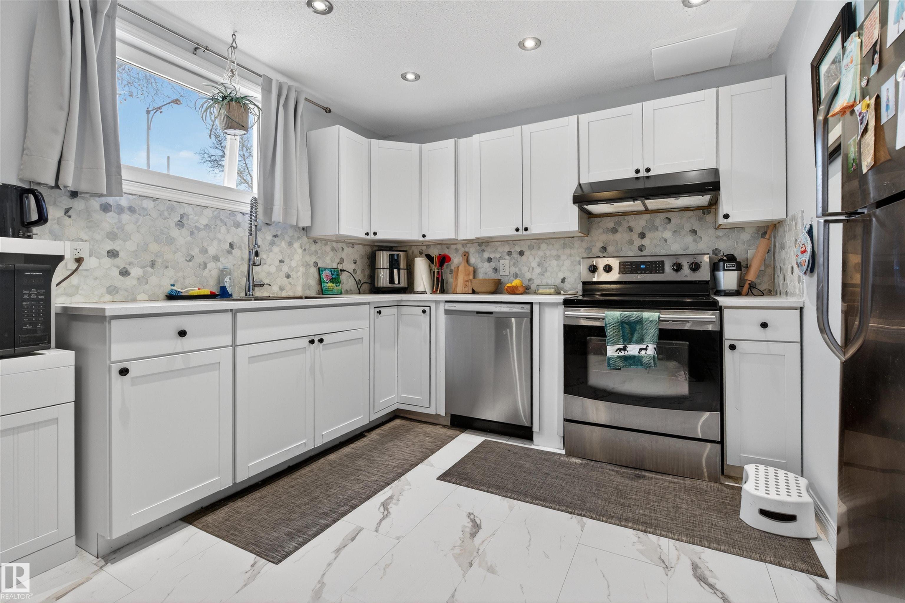 INVESTOR ALERT! Welcome to this LEGALLY SUITED BUNGALOW on a LARGE CORNER LOT in a MATURE, HIGH-DEMAND CENTRAL LOCATION! This MOVE-IN READY / RENT-READY property offers excellent INCOME POTENTIAL with a well-maintained LEGAL BASEMENT SUITE currently occupied by GREAT TENANTS. The BRIGHT main floor features a NEWER KITCHEN, UPDATED FLOORING, and LARGE WINDOWS bringing in plenty of NATURAL LIGHT. Downstairs, the self-contained suite includes its own KITCHEN, and SPACIOUS LIVING AREA--perfect for reliable rental income. Outside, enjoy a STREET-FACING OVERSIZED DOUBLE GARAGE and a MASSIVE DRIVEWAY with parking for up to 4 VEHICLES. Major upgrade includes SEWER LINE REPLACED (2020). Located just MINUTES TO DOWNTOWN & WEST EDMONTON MALL with EASY ACCESS to YELLOWHEAD & WHITEMUD. WALKING DISTANCE to SHOPS, CAFES, GROCERIES & MCKINNON RAVINE, plus FUTURE LRT nearby. Fantastic HOLDING PROPERTY with FUTURE DEVELOPMENT POTENTIAL in a SAFE, COMMUNITY-FOCUSED NEIGHBOURHOOD!