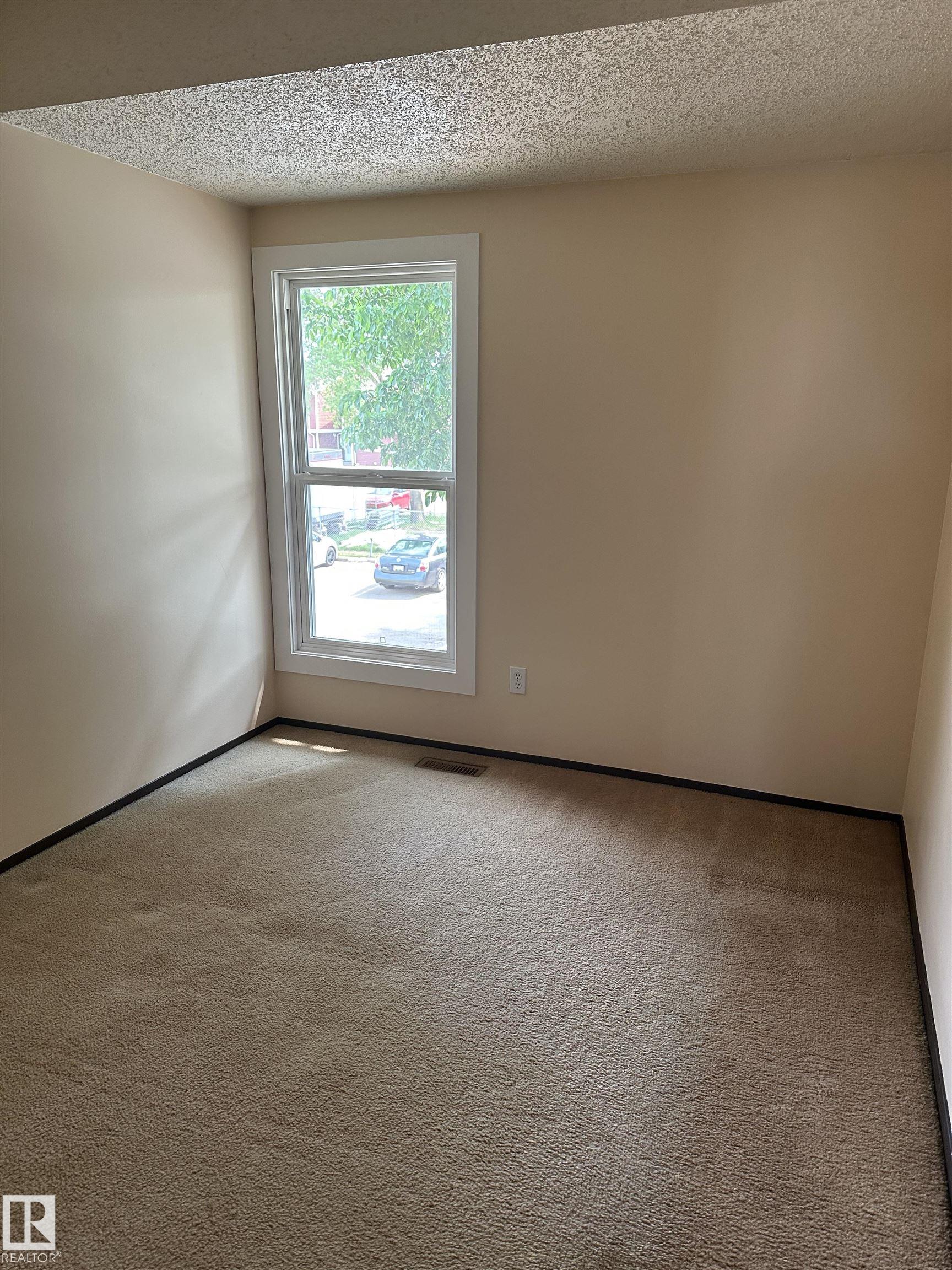 VERY CLEAN Townhome in North Edmonton. Terrific easy access location close to Yellowhead highway and Clareview with shopping, schools, parks, and public transportation minutes away. Terrific private complex getting new siding, shingles and windows all done within last two years, new doors. 3 BEDROOMS 1.5 BATHROOMS with large deck. 2 PARKING STALLS. Main floor has half bathroom large kitchen with appliances included and in kitchen dining area. Main floor living room has large windows, new electric Remote Fire Place. Upper floor has 3 large bedrooms and full 4 PC. bathroom. Large master suite. Basement has separate storage room and ready for your personal touch. Utility room in basement. Do not miss this one great property with good value.