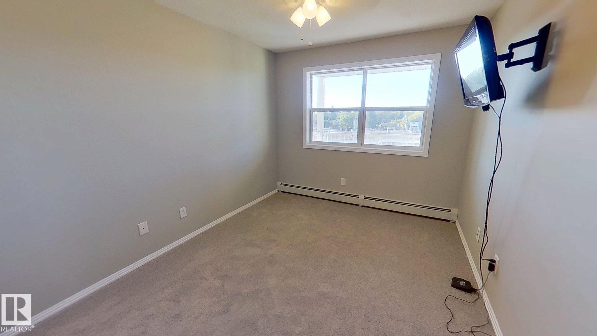 Welcome to this bright and updated 1-bedroom, 1-bathroom condo offering 663 sq. ft. of comfortable living space in a 55+ adult building. The home features brand new carpets, fresh paint, and laminate flooring throughout. The functional layout includes a spacious in-suite laundry room, a kitchen with built-in dishwasher, and a living room with corner gas fireplace and tiled surround. Large south-facing windows provide plenty of natural light and access to a private balcony. This well-maintained building includes an elevator, social room with kitchen, and heated underground parking with personal storage cage. Condo fees cover heat, water, building insurance for common areas, and exterior maintenance. Conveniently located directly across from Bonnie Doon Shopping Centre, with easy access to bus routes, the new LRT line, Bonnie Doon Leisure Centre, and Idylwylde Public Library.