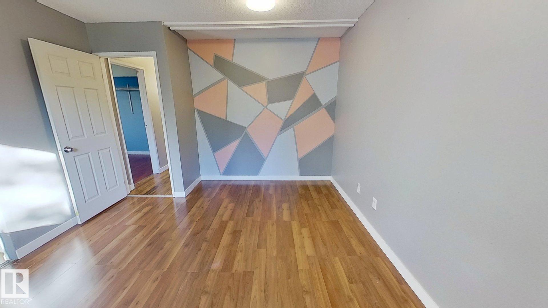 Spacious master suite with large walk-in closet. One additional bedroom plus linen closet. Full bathroom on upper level and a «-bath on the main floor. Entry closet. Kitchen includes fridge, stove, dishwasher, exhaust fan, and a small pantry. Dining room and living room. Patio doors open to a fenced backyard with a deck. In the basement: large recreation room, storage room, washer/dryer, and mechanicals (water heater and furnace approximately one year old). Parking: one stall just outside the door, visitor parking about 10 ft away, plus street parking available. Excellent location near Percy Page High School, elementary schools, Millwoods Recreation Centre, LRT, and Millwoods Town Centre shopping.