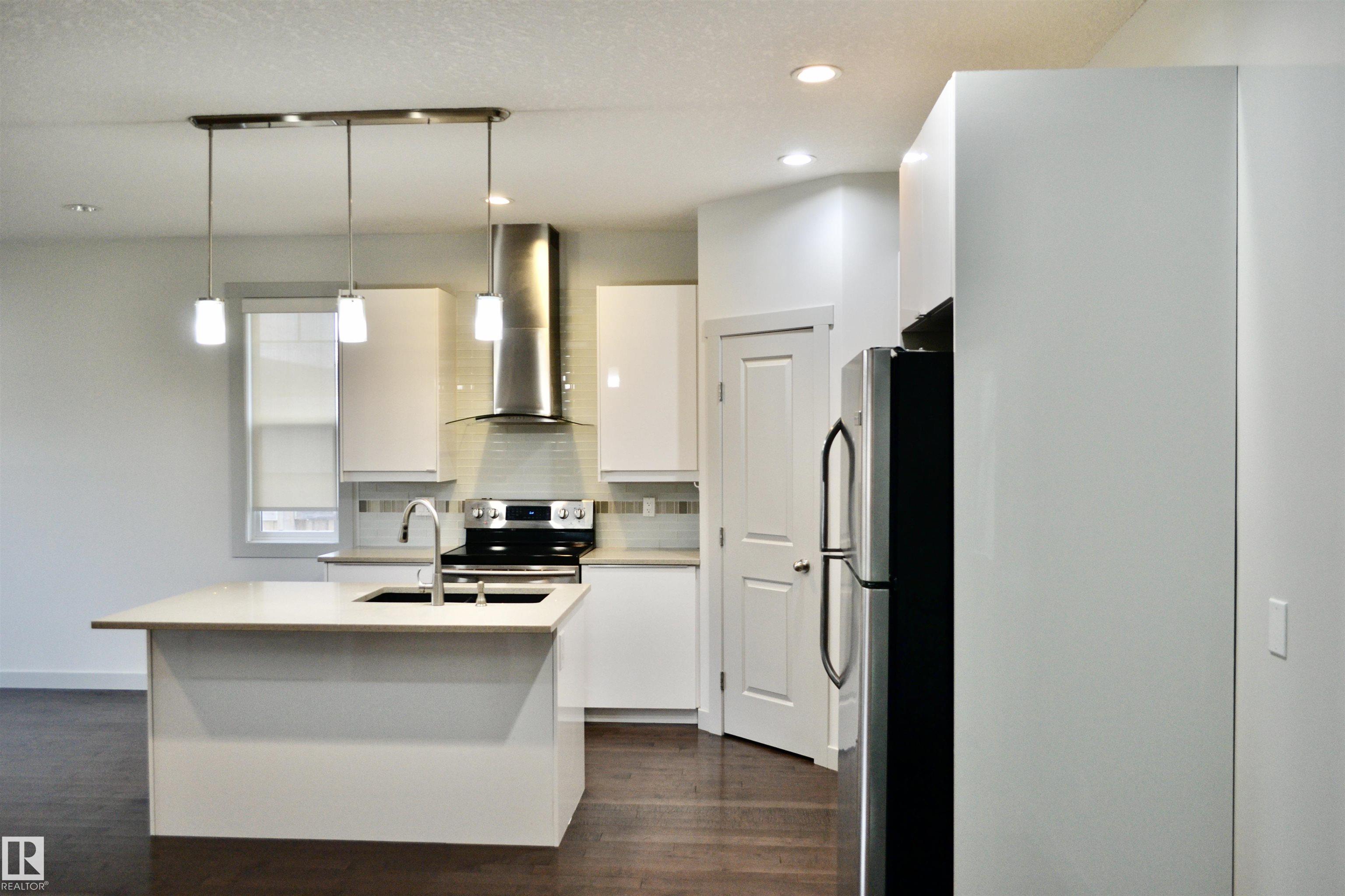 Beautiful half-duplex in the desirable community of King Edward Park! This well-maintained 2-storey home features three bedrooms upstairs, with a generous master-bedroom complete with a walk-through closet, and generous ensuite. The second floor includes two more bedrooms, 4-piece bathroom and laundry. The main floor's open floor plan has a family/dining room, 2-piece bath, and kitchen with quartz counters and plenty of storage. The fully finished basement has a separate entrance and includes laundry, two bedrooms and a 4-piece bathroom. The living space is roughed in to add a kitchen, making this home great as an investment property or for a growing or extended family! The yard features maintenance free landscaping and a single detached garage. This home is situated in close proximity to the U of A Campus Ste. Jean, Whyte Ave, Mill Creek Ravine walking trails, transit (incl. Bonnie Doon LRT), shopping and approximately 15 min bus ride to the U of A main campus.