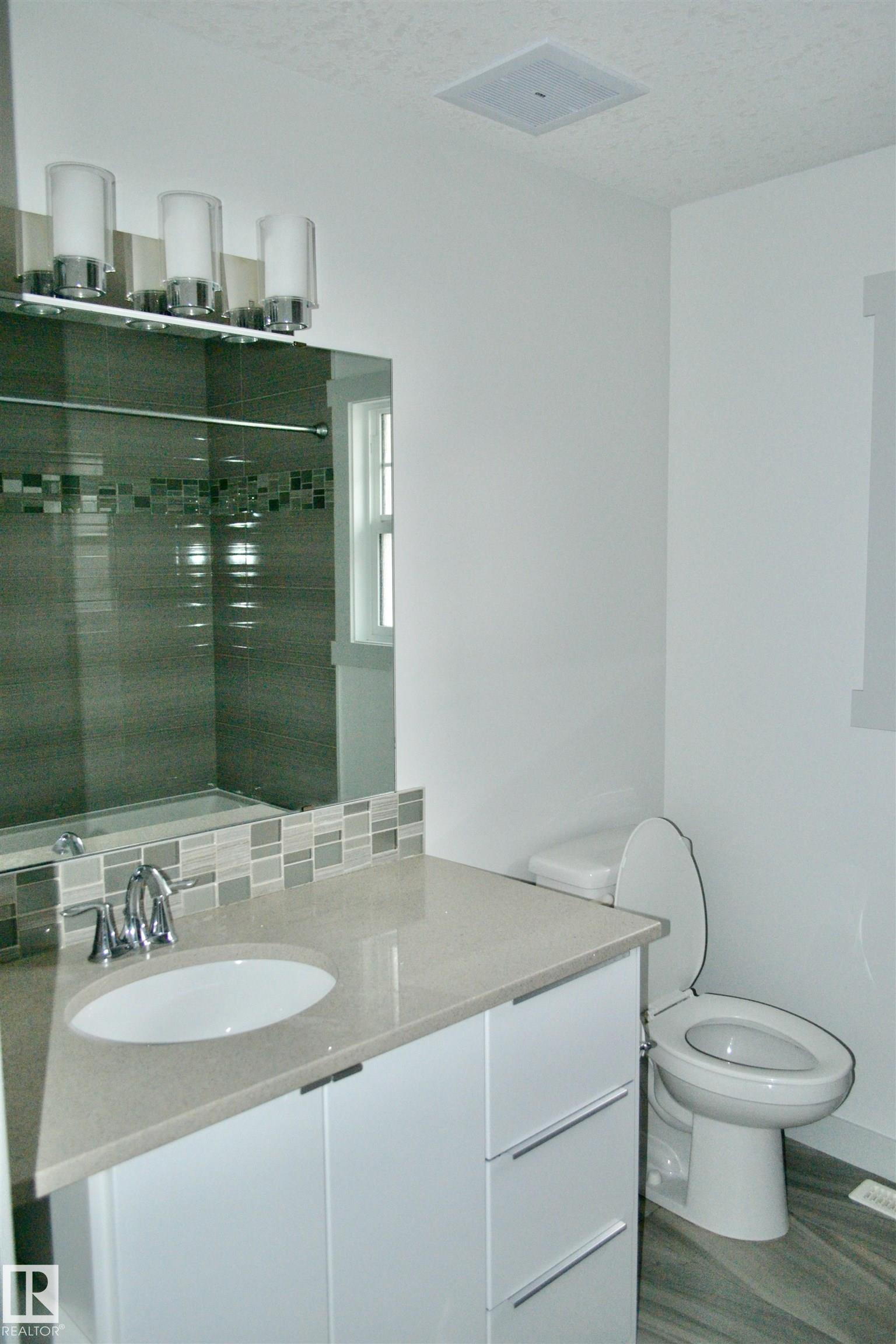 Beautiful half-duplex in the desirable community of King Edward Park! This well-maintained 2-storey home features three bedrooms upstairs, with a generous master-bedroom complete with a large walk-in closet, and spa-like ensuite. The second floor includes two more bedrooms, 4-piece bathroom and laundry. The main floor's open floor plan has a family/dining room, den, 3-piece bath, and kitchen with quartz counters and plenty of storage. Natural light floods the main and second floors from the south-facing windows. The fully finished basement has a separate entry, kitchen, laundry, two bedrooms and a 4-piece bathroom, making this home great as an investment property or for a growing or extended family! The yard features maintenance free landscaping and a single detached garage. This home is situated in close proximity to the U of A Campus Ste. Jean, Whyte Ave, Mill Creek Ravine walking trails, transit (incl. Bonnie Doon LRT), shopping and approximately 15 min bus ride to the U of A main campus.
