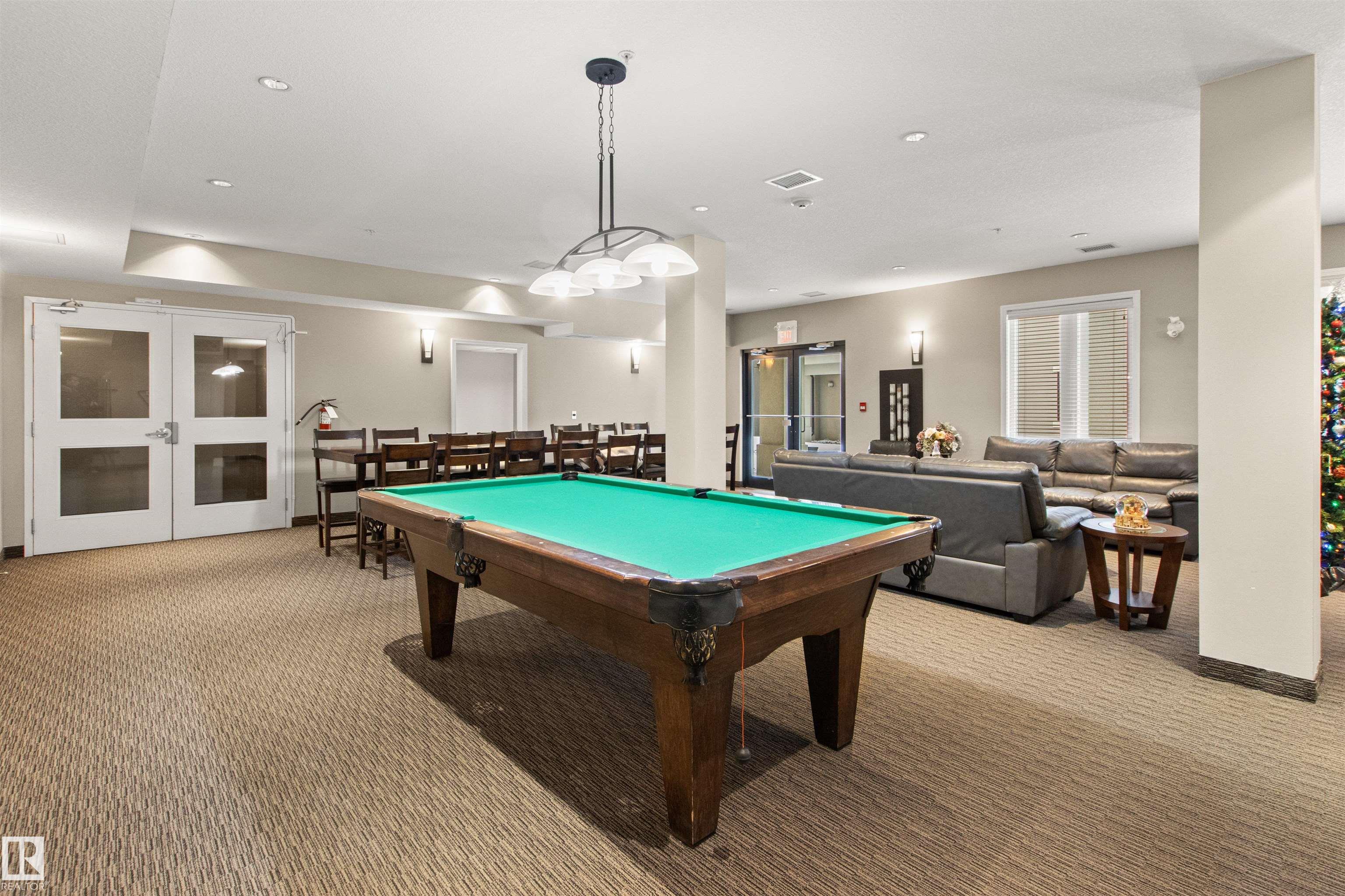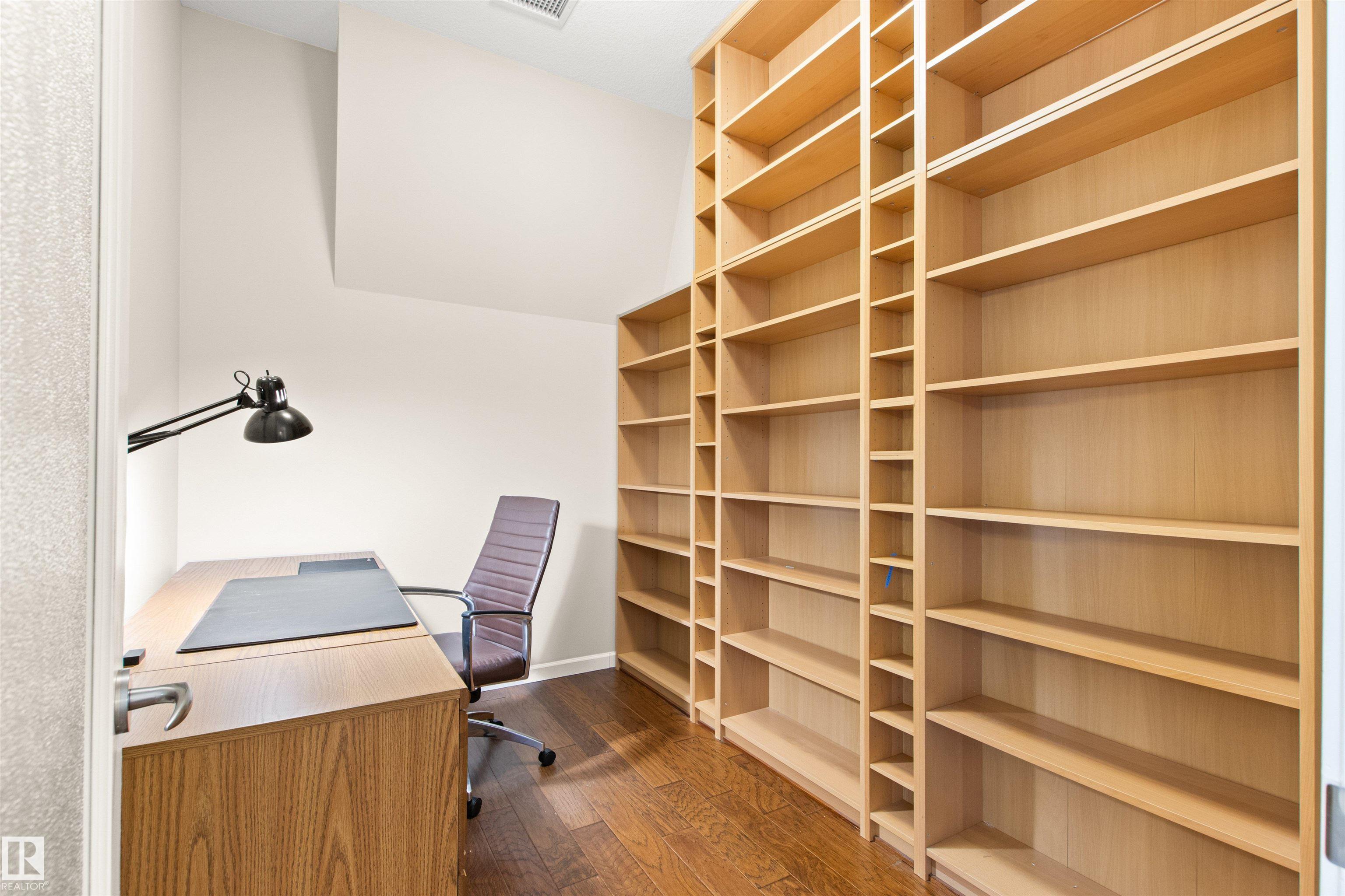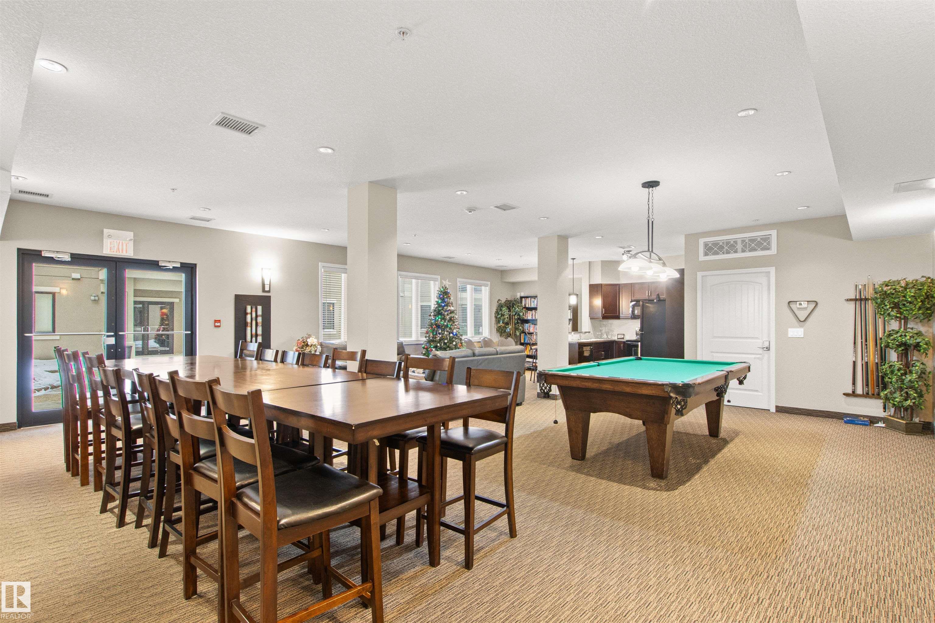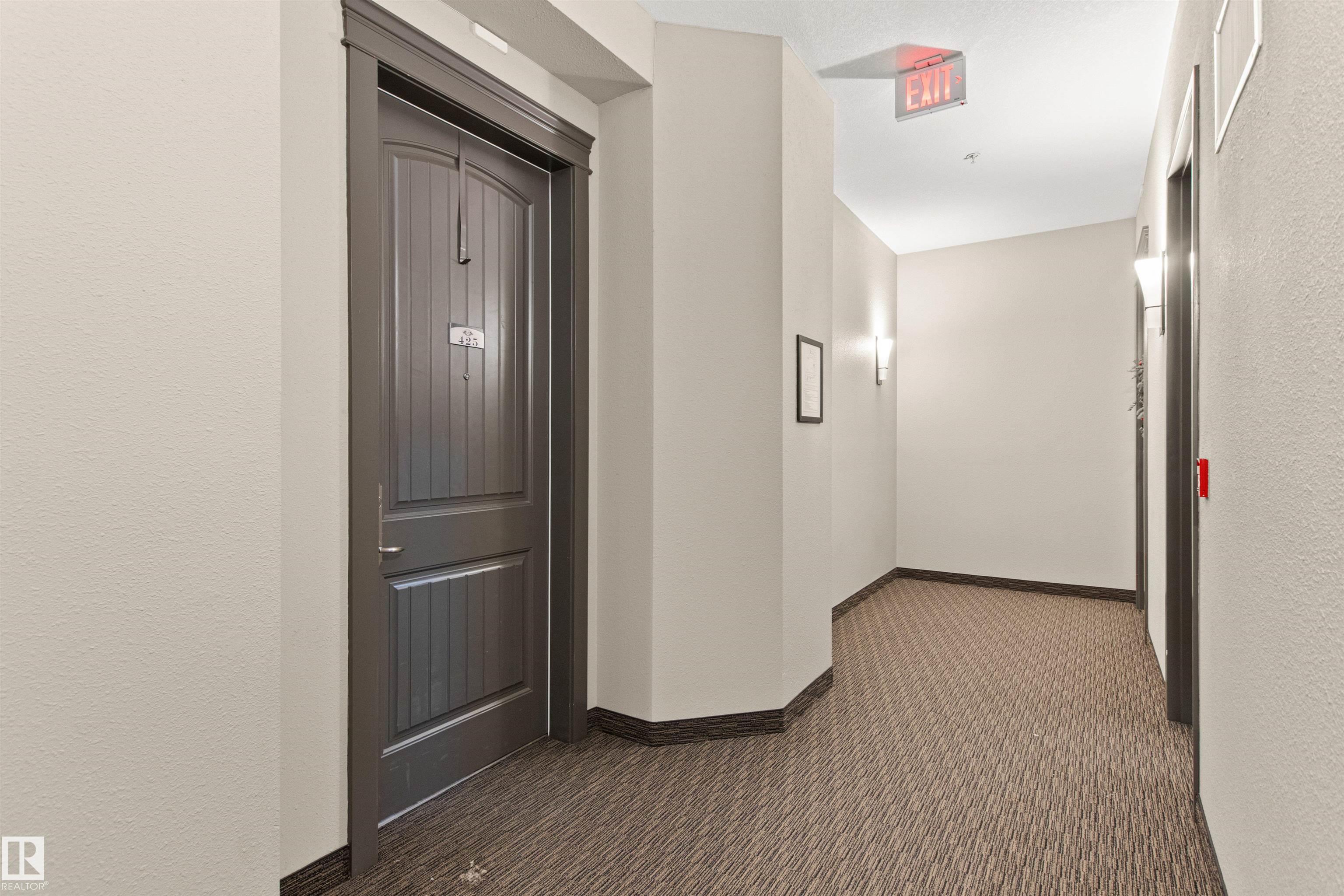 Rare opportunity to own this penthouse corner end unit with spectacular views off the balcony overlooking 2 lakes, landscaped trees, & walking trails! This 2 bedroom + den "open" concept layout features; chefs galley kitchen, cherry stained mahogany cabinets, granite counter tops, s/s appliances, impressive 10' vaulted ceilings, engineered hickory hardwood, custom built-in murphy bed, den has built-in book shelf unit, ensuite off primary bed. has huge shower w/his & hers closets, in-suite laundry, spacious living rm w/corner mantle fireplace, formal dining rm., patio drs. lead to one of two covered private decks. A truly remarkable gem in Mactaggarts exclusive neighborhood. Best of all its an original owner & yes in showhome condition! Complete with two heated underground stalls, one storage cage, two gyms, social rms., & Guest Suites! Just minutes to Windemere, South Edmonton Common & Anthony Henday.