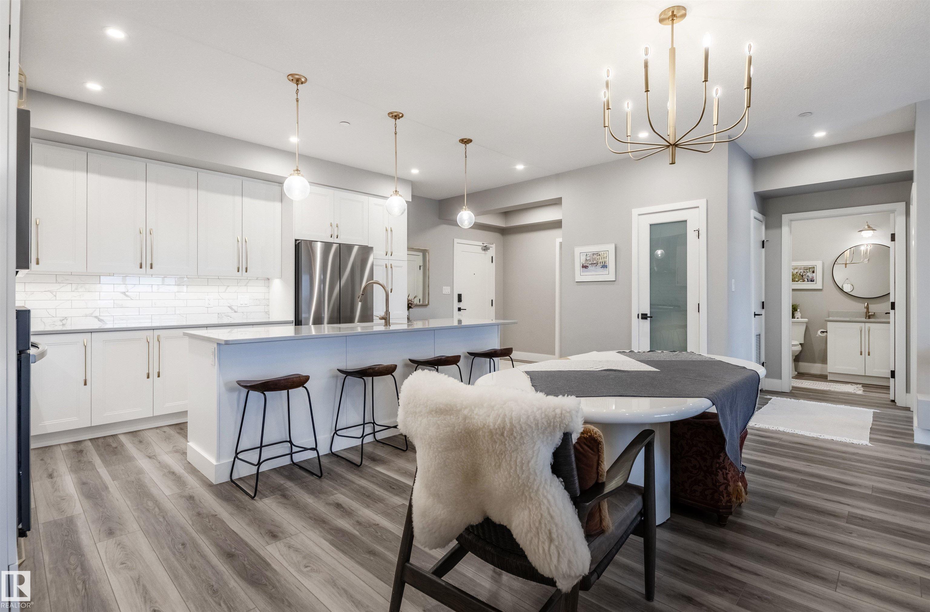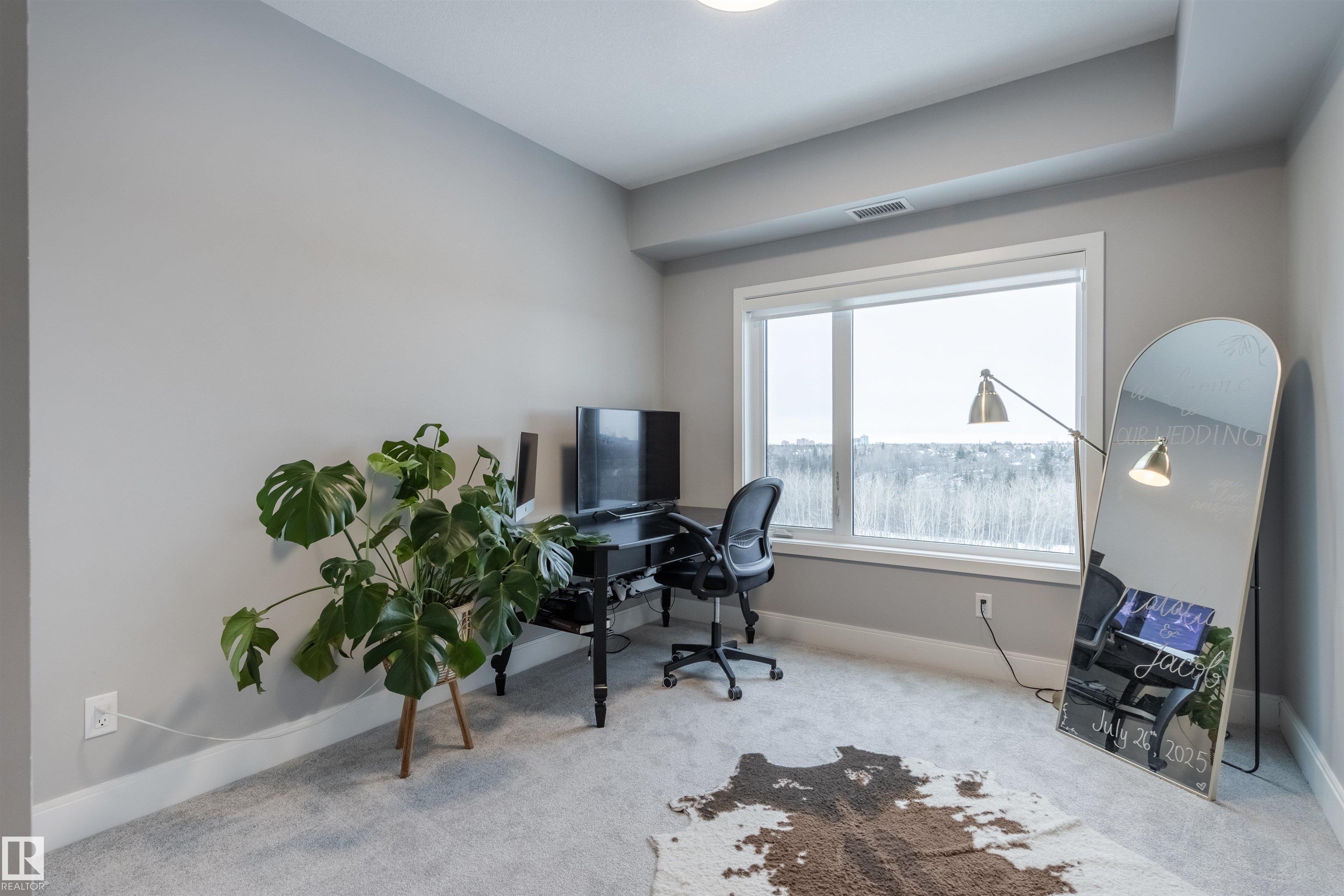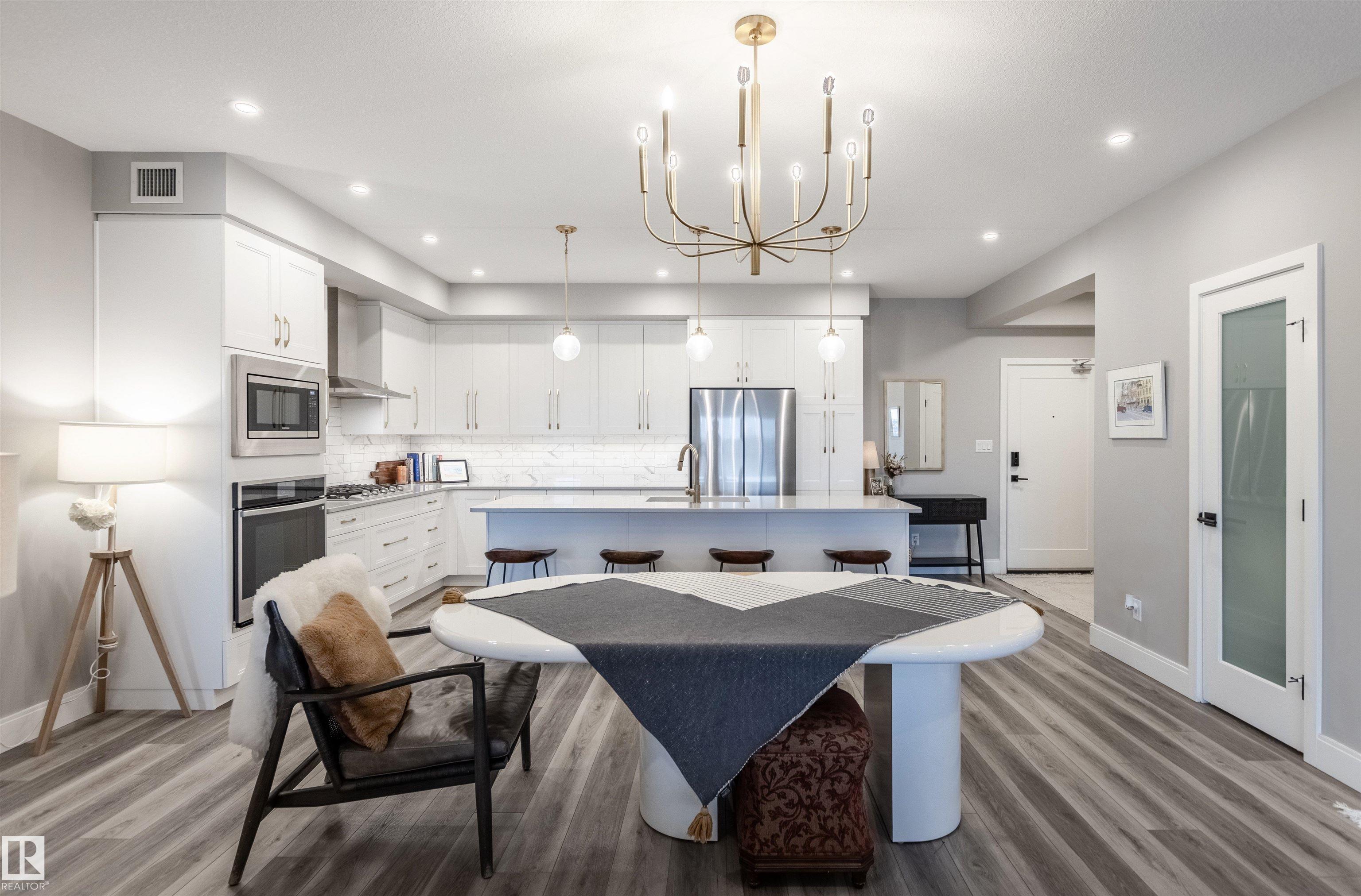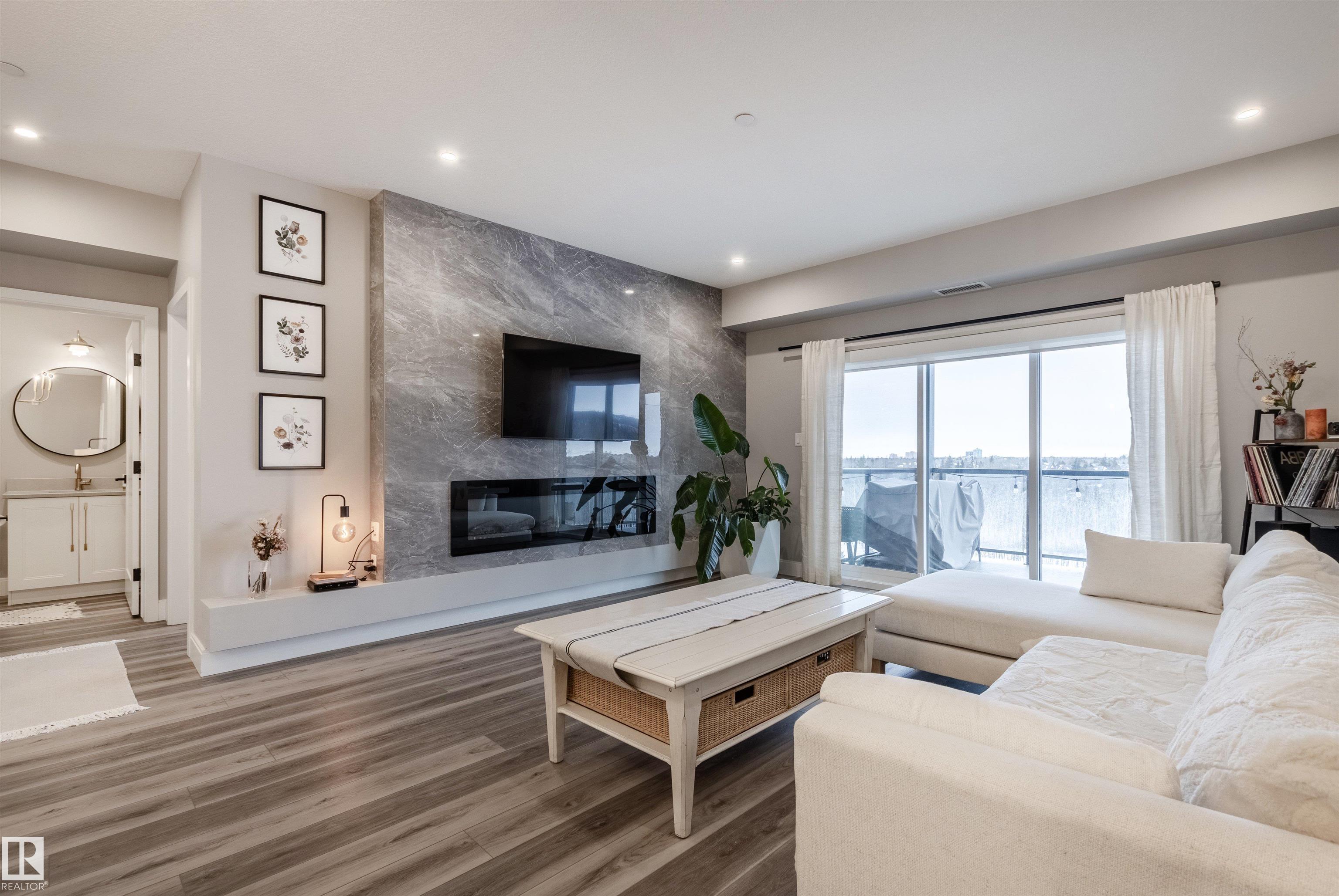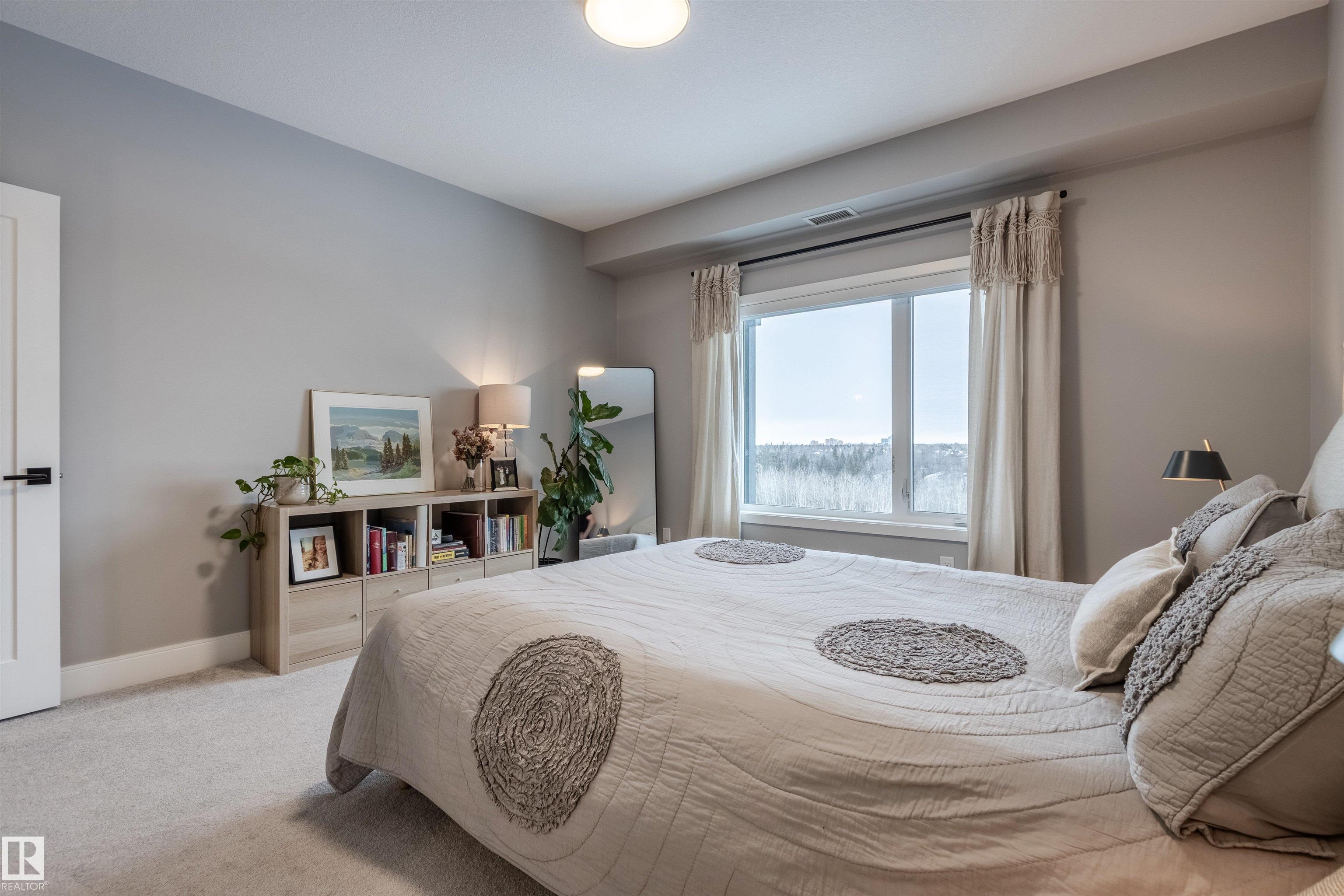 Luxury living and comfort best describe this 2 beds/2 baths condo in EDGE AT LARCH PARK in Magrath Heights neighborhood. The unit has unobstructed views of MACTAGGART RAVINE from every window and the balcony. It offers: A/C, open concept layout, high end finishings, and 9' ceiling. Kitchen c/w SS appliances (including gas cooktop), quartz counters, huge island and plenty of up-to ceiling cabinets. Living room has an electric fireplace. Dining area will fit a large table. Spa like ensuite bath and a large closet will satisfy the most discerning buyers. You also find a gas hook up for a bbq on the balcony. Underground, titled parking is heated and c/w a storage cage. The building offers unparalleled, world-class amenities that include: gym, yoga studio, games room, chef's kitchen, owners lounge, art studio, pet spa, dog park, fire pit, bike storage, guest suites and a roof top patio. It is steps to a scenic trails and nature. Make a move!