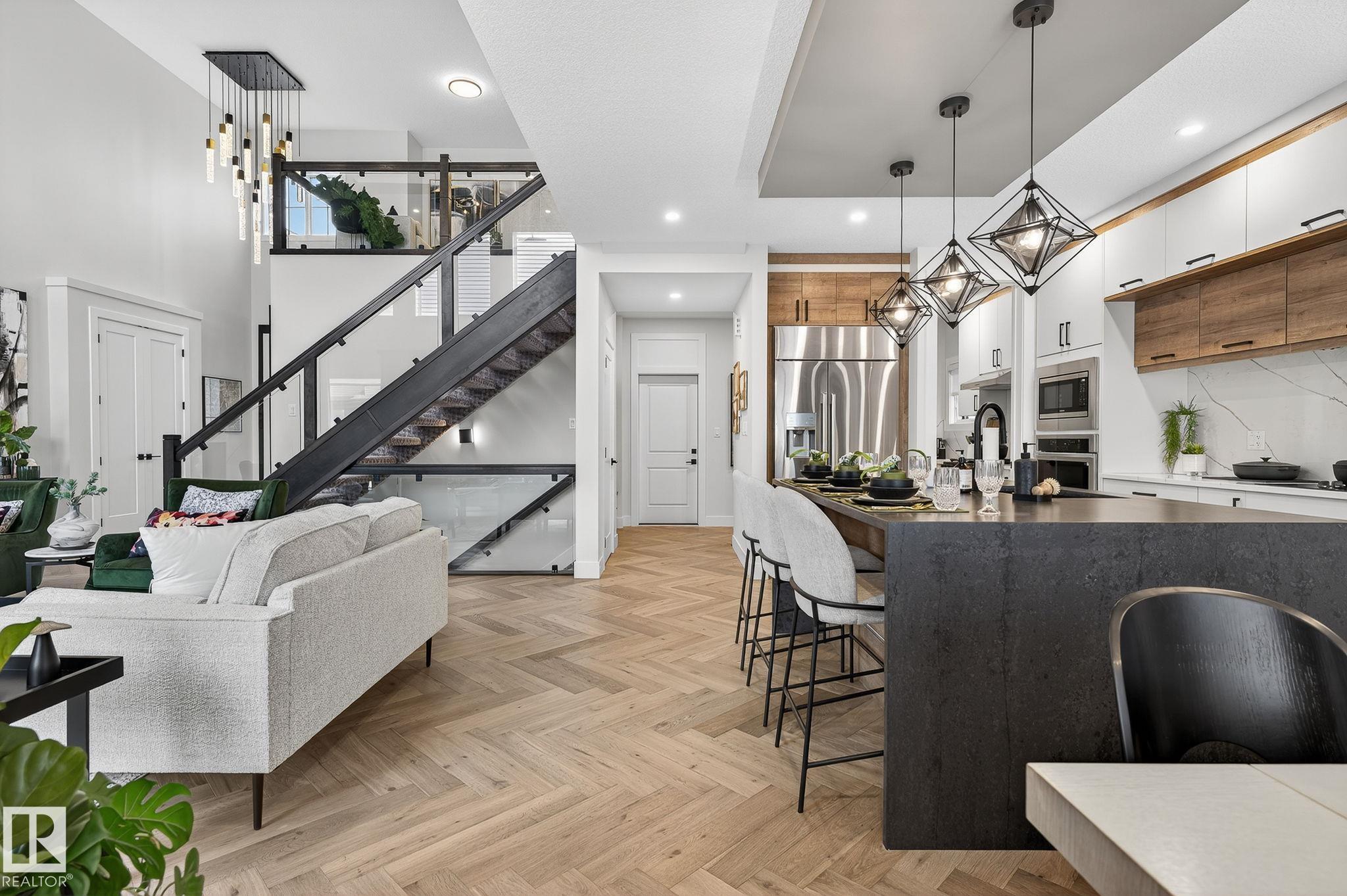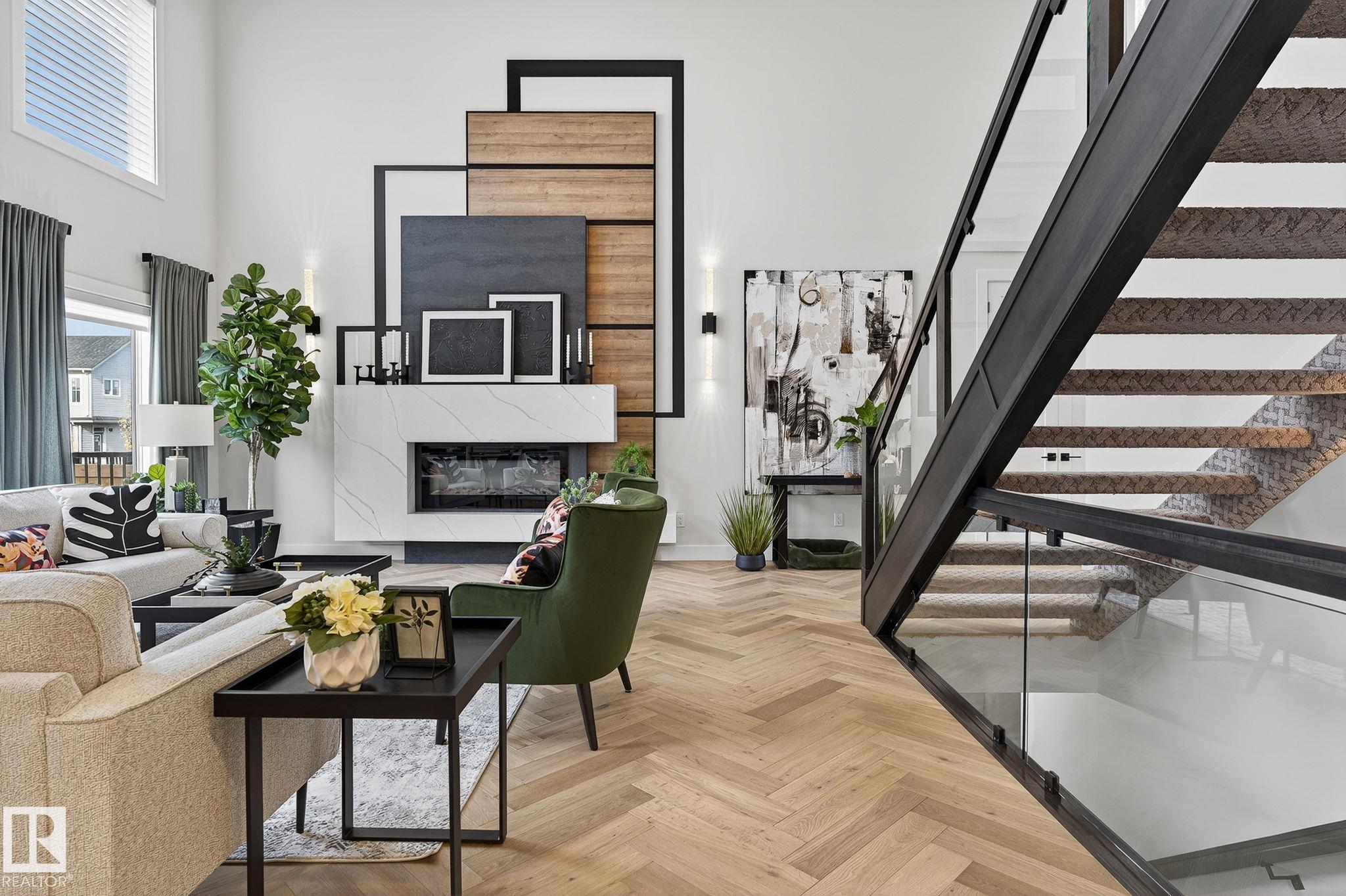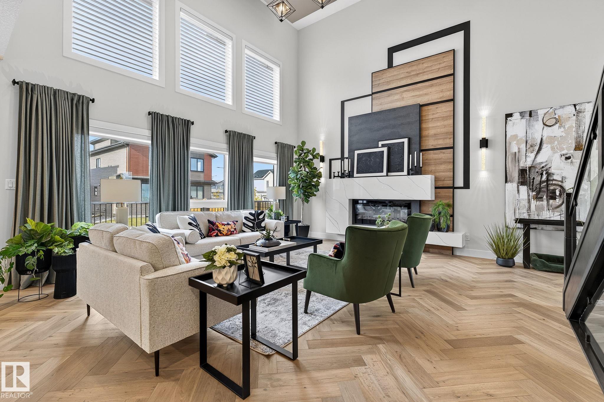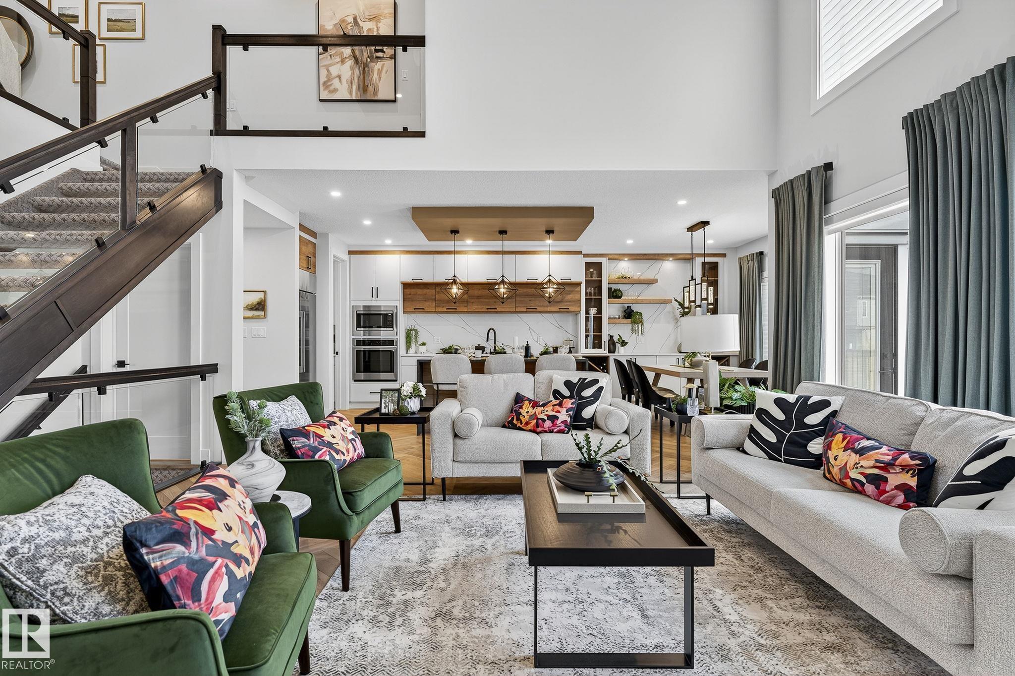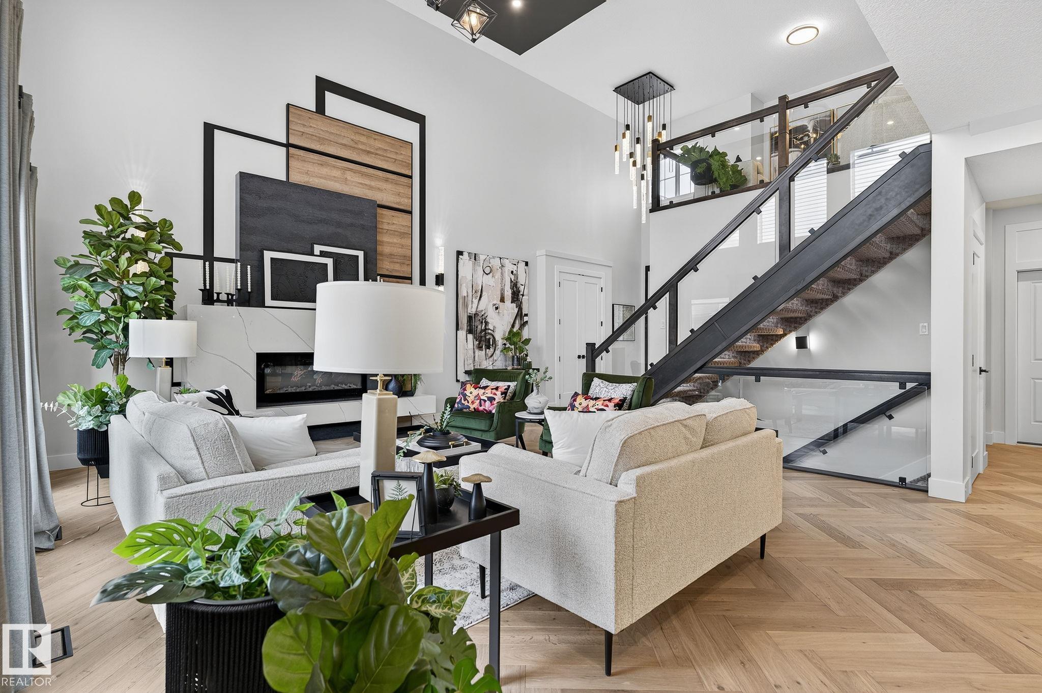The wait is over -- our upgraded show home by Lyonsdale Homes in the sought-after Marquis community is now available! From the moment you step inside, this home impresses with elegant design, premium finishes, and exceptional craftsmanship. Soaring main-floor ceilings create an open, airy feel, showcasing just under 2,700 sq. ft. of thoughtfully designed living space. Quartz detailing around the fireplace adds a striking focal point, while the chef-inspired kitchen features Quartz countertops, a built-in oven, electric cooktop, and a spice kitchen with gas range. With 4 spacious bedrooms and 4 full bathrooms, including two master bedrooms--one with a stunning tiled feature wall--this home blends luxury and comfort. Air conditioning and all furniture are included, making it truly move-in ready. The oversized triple garage and side basement access provide flexibility, while durable Hardie Board siding and a fully landscaped yard add lasting appeal.