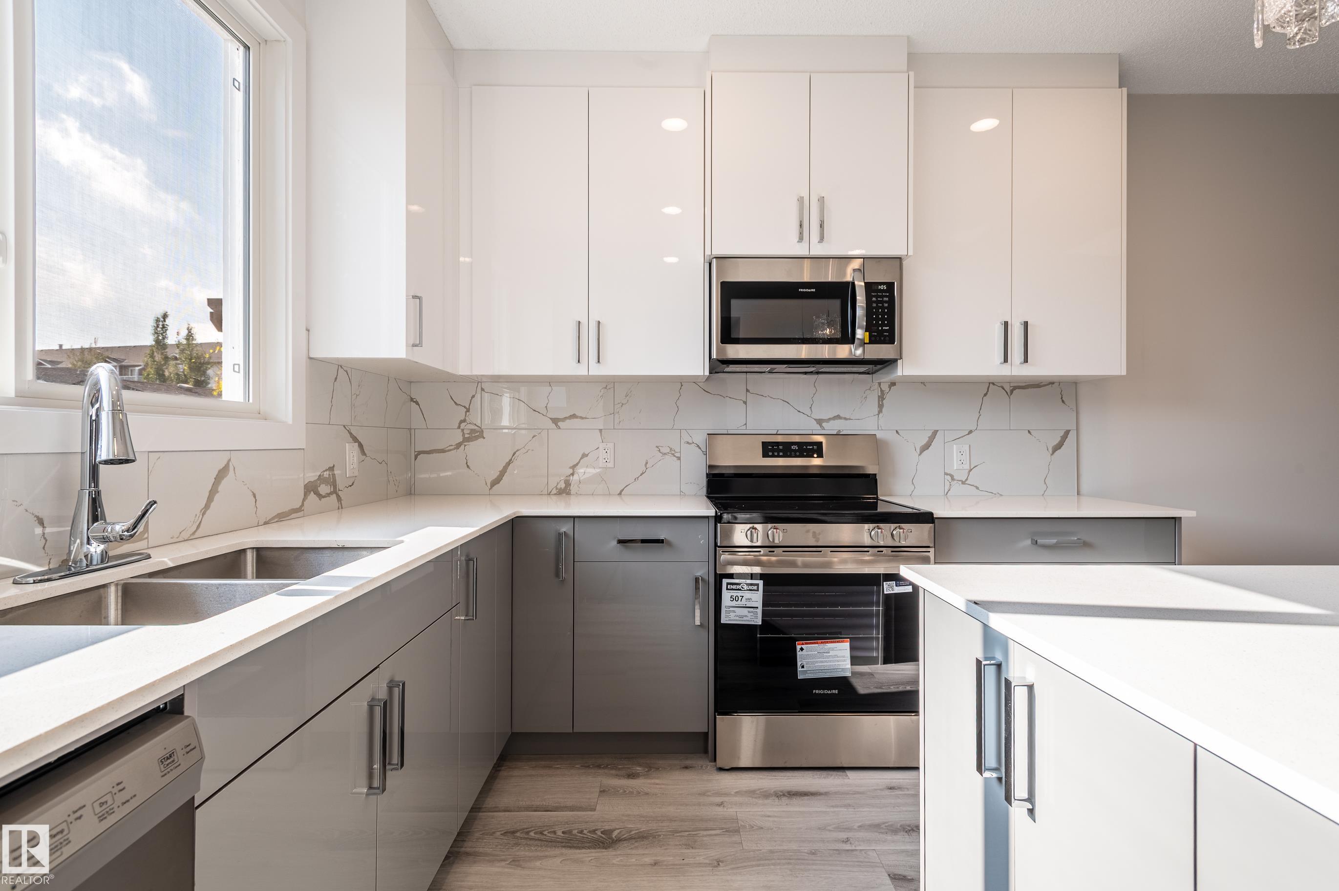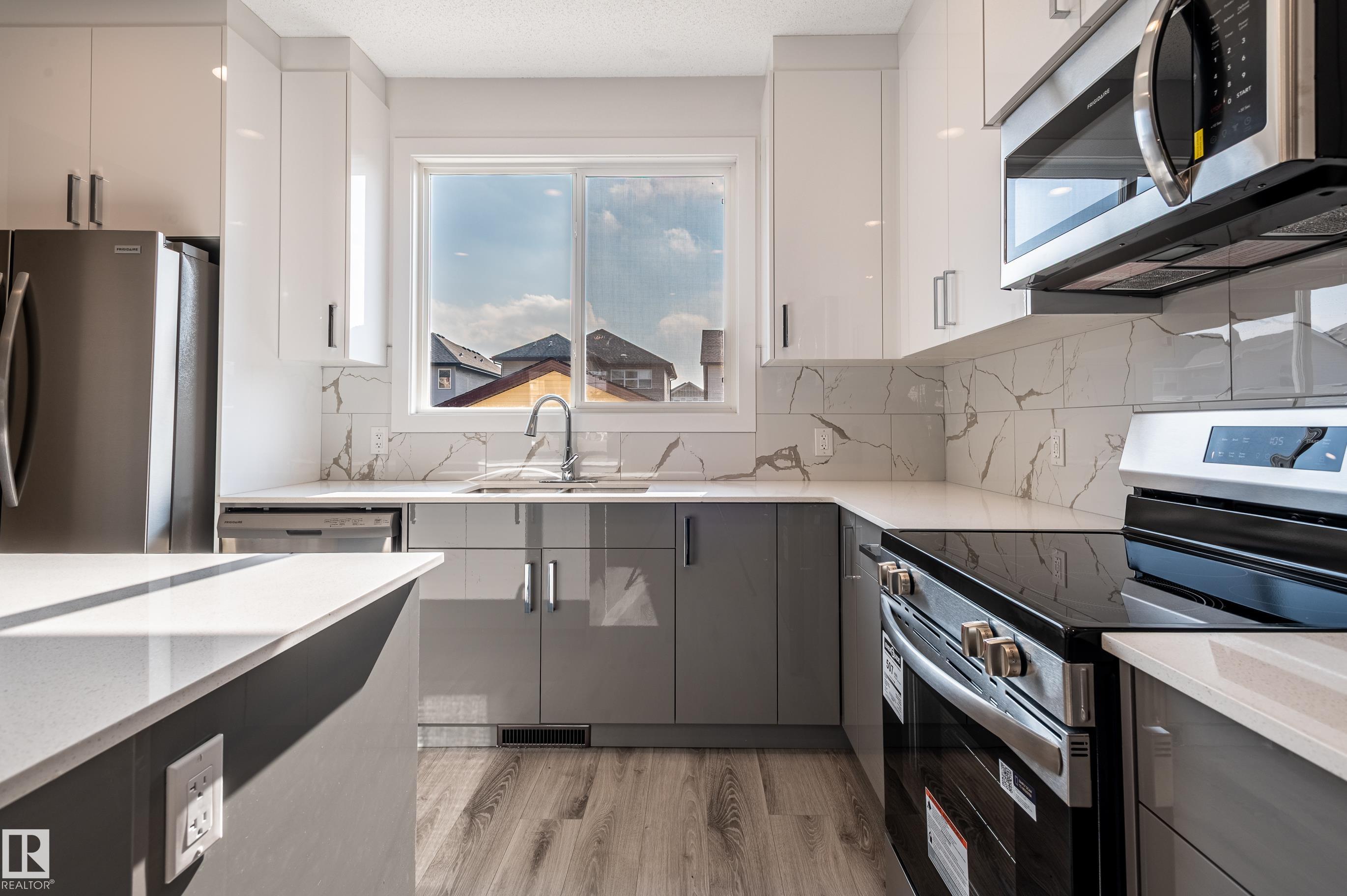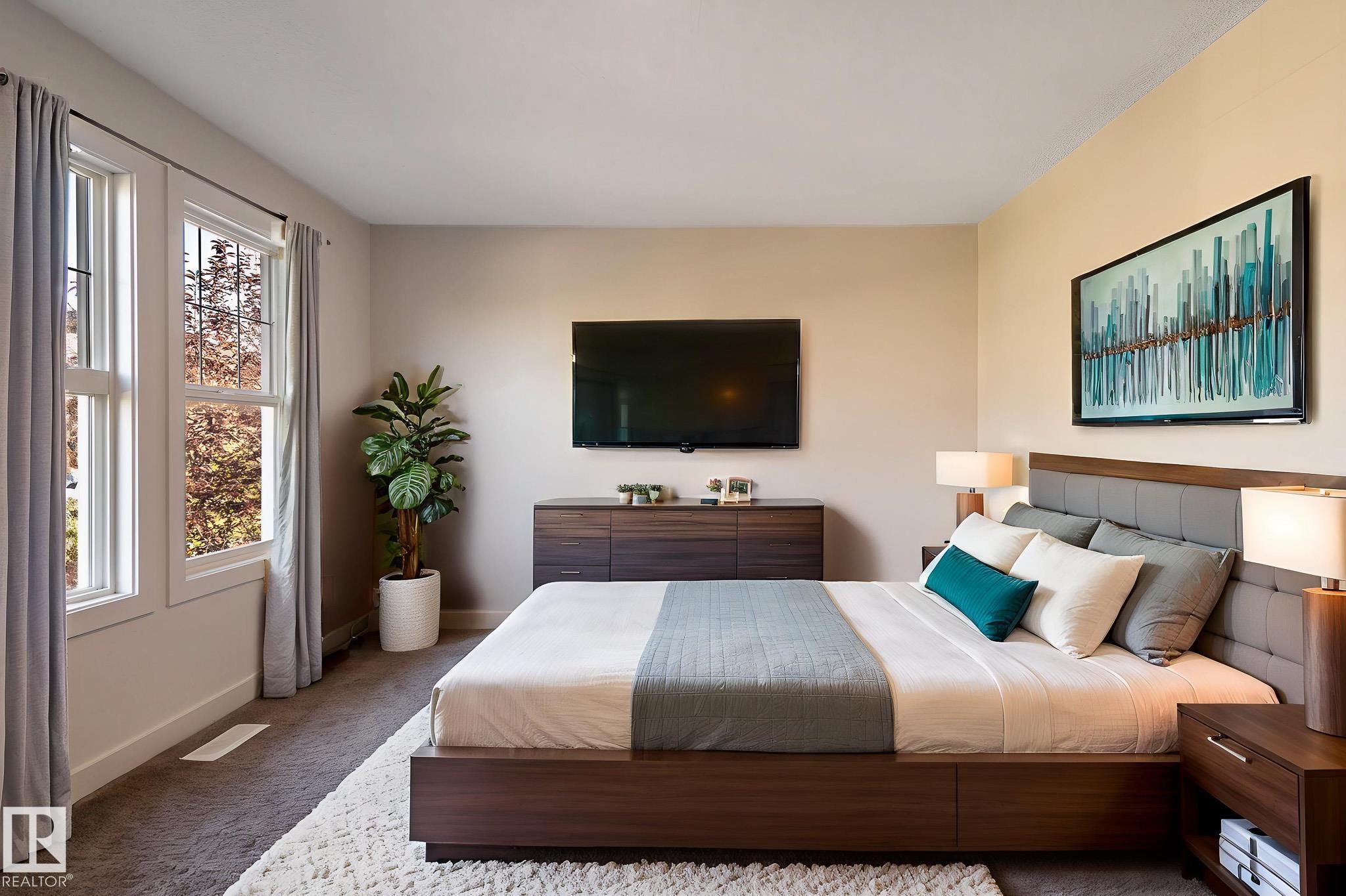 Welcome to this beautifully remodeled contemporary 2-storey home in the family friendly community of McConachie. Offering modern style and comfort, this home is move-in ready and waiting for your family. The open-concept main floor features bright living spaces, sleek finishes, and a kitchen designed for both everyday living and entertaining. Upstairs you'll find spacious bedrooms, including a relaxing primary suite, along with a convenient layout for family life. Recent upgrades and thoughtful design touches give the home a fresh, modern feel throughout. The fully landscaped yard and outdoor space provide room for kids to play or for summer gatherings. Located in one of Edmonton's most desirable north-side neighborhoods, you'll enjoy quick access to top rated schools, shopping, parks, greenspaces, and major transportation routes for an easy commute. A beautiful, calm, and welcoming property ready for its new family to call home!  Some photos have been digitally staged.