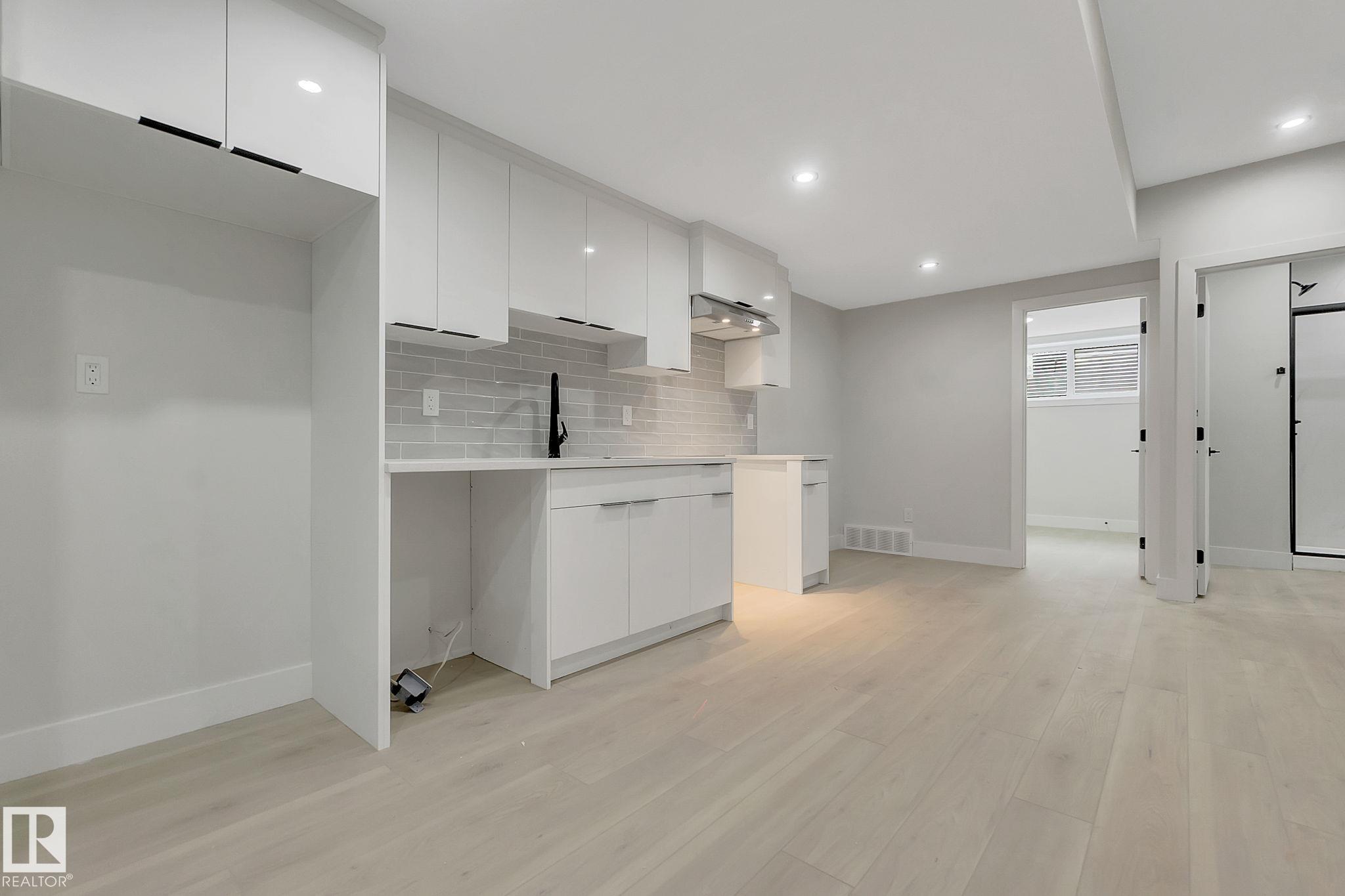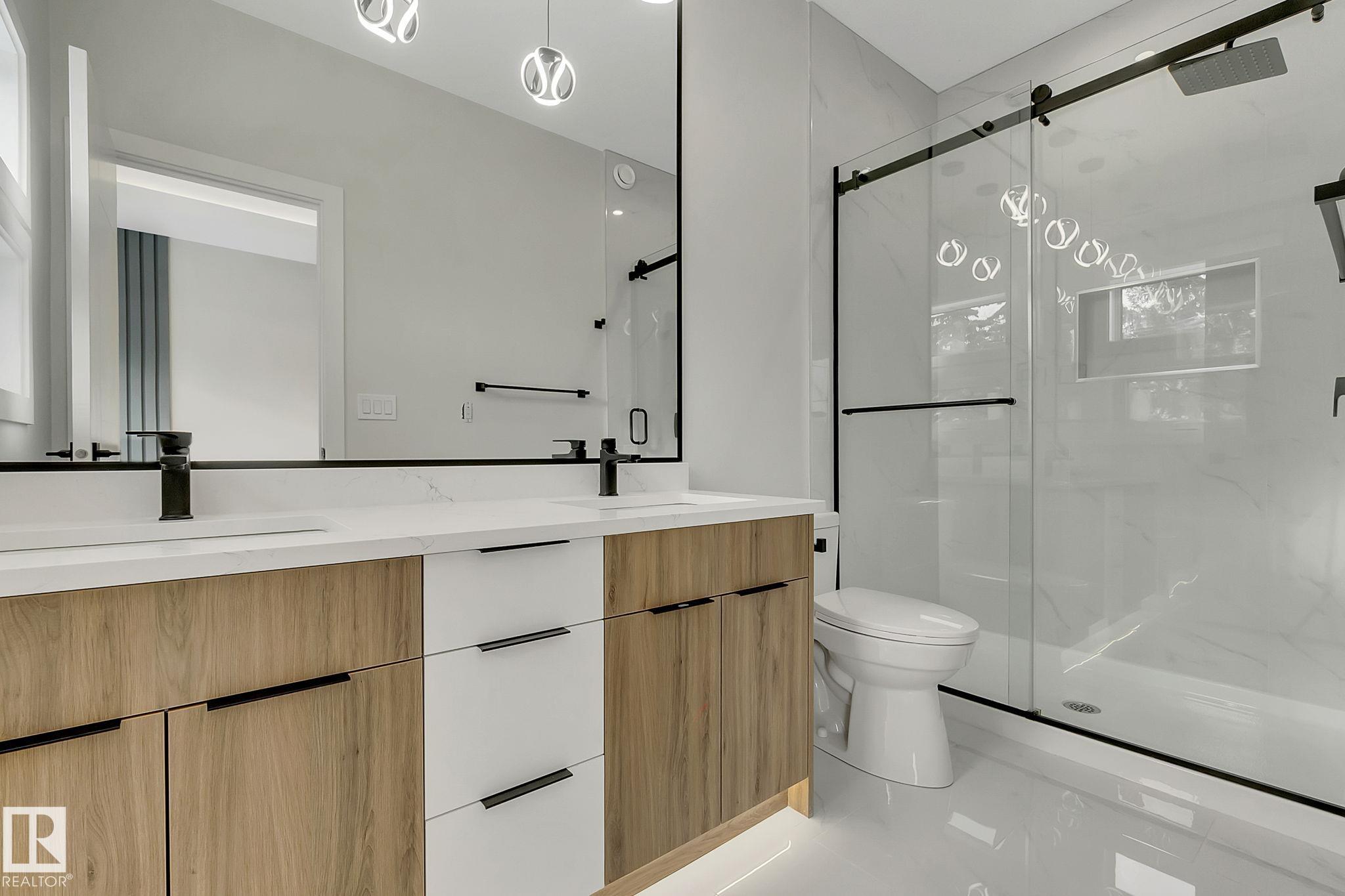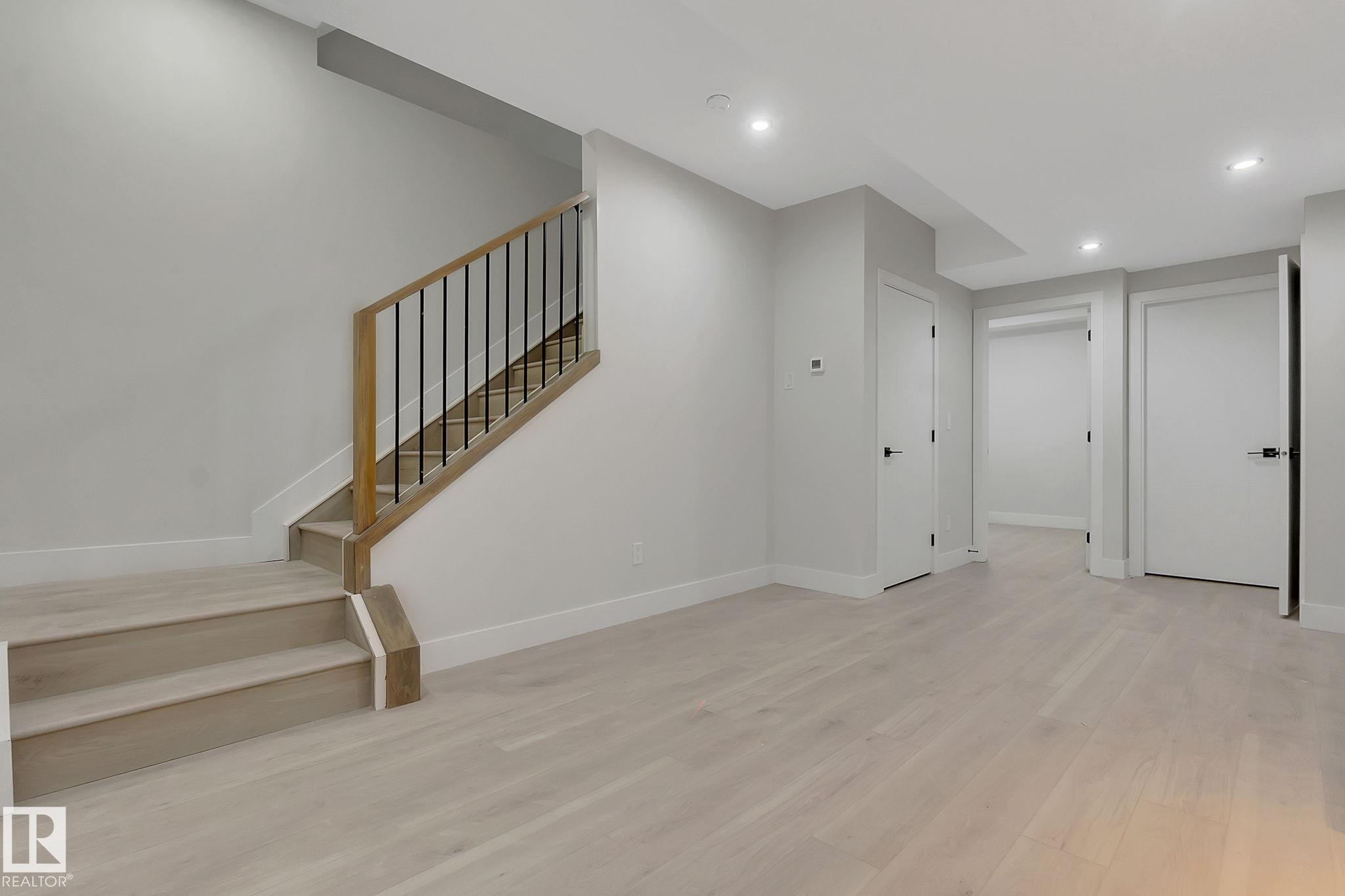 Welcome to Mckernan! Experience high end luxury living in the heart of Mckernan with this gorgeous property comes with LEGAL BASEMENT SUITE! This home offers you 5 bed and 3.5 bath in total with very elegant open concept 9ft ceiling and beautiful finishes throughout. Main floor offers you a large living room with large window, open concept kitchen, Quartz countertops and Quartz backsplash. A BAR on the main floor & electric fireplace are surrounded with tile wall, maple glass railing, hardwood flooring (made in Belgium). All lighting fixtures & all tiles are upgraded, Front & back closets are customized with kitchen material. Intent ceiling, LED Rope light all over the kitchen & upstairs in the master suite. Upper level there are 3 bed and 2 full bath. Custom shower in the master suite with high end. Fully finished Legal bsmt is 2 br suite with separate entrance and 2nd kitchen. Vertical siding all over the house & 6ft wide side walk.