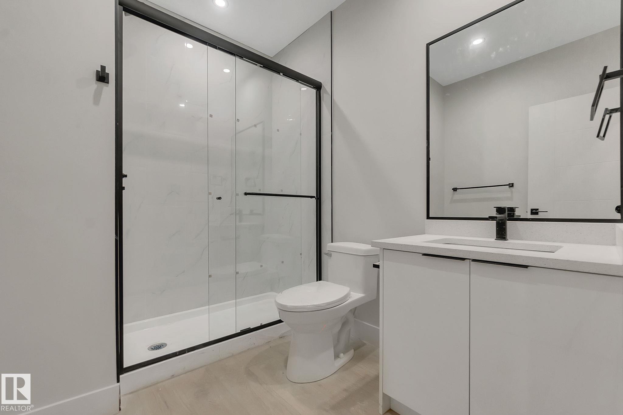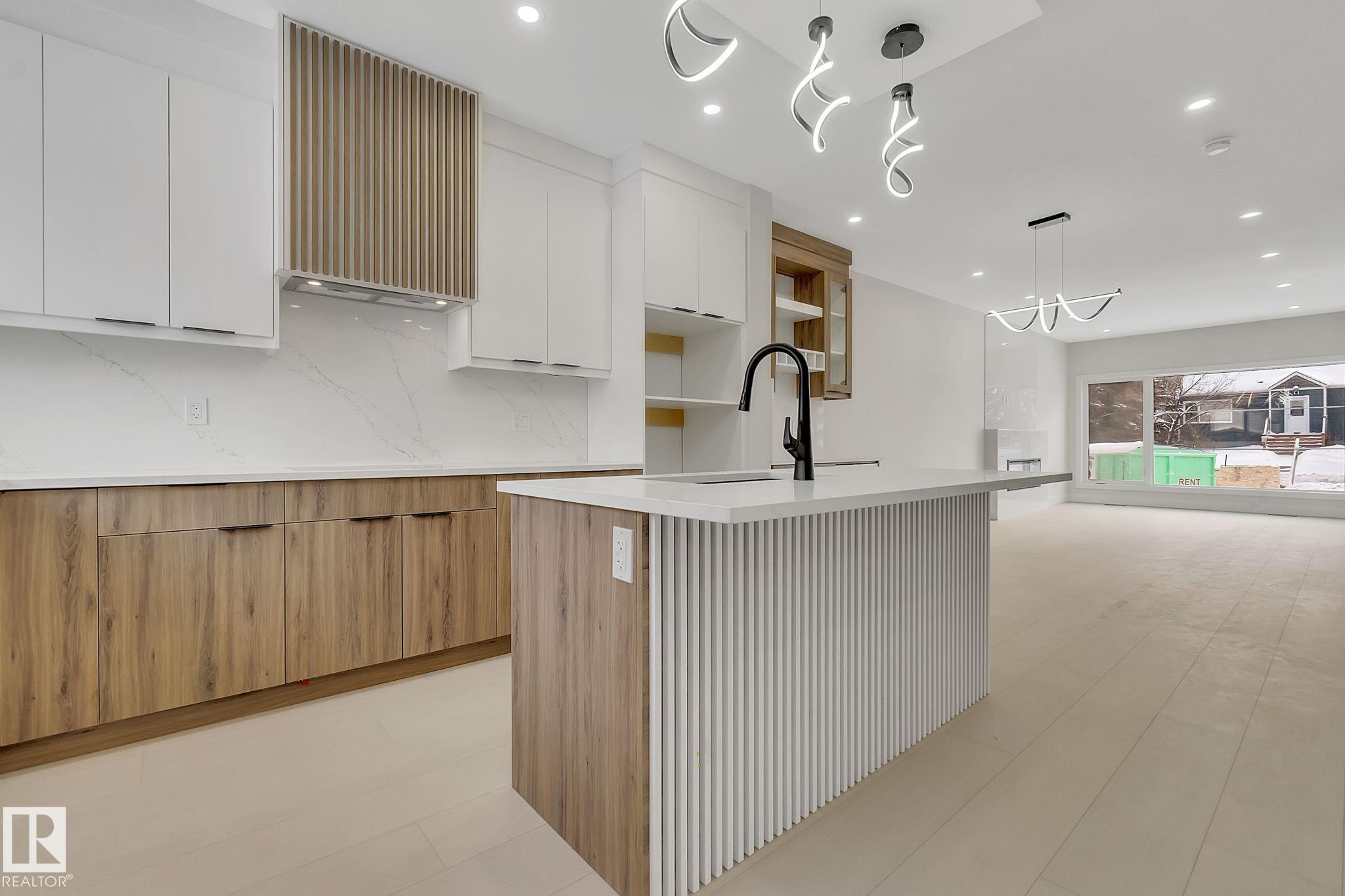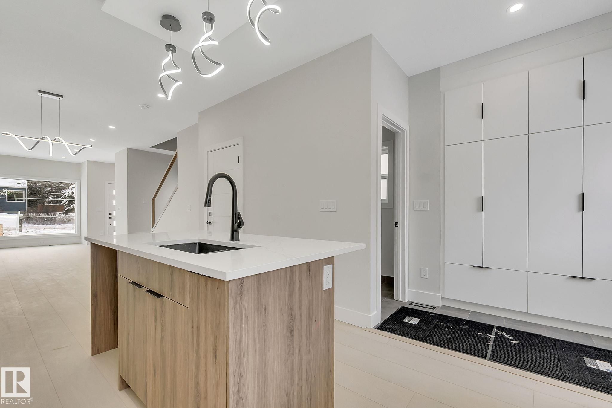 Welcome to Mckernan! Experience high end luxury living in the heart of Mckernan with this gorgeous property comes with LEGAL BASEMENT SUITE! This home offers you 5 bed and 3.5 bath in total with very elegant open concept 9ft ceiling and beautiful finishes throughout. Main floor offers you a large living room with large window, open concept kitchen, Quartz countertops and Quartz backsplash. A BAR on the main floor & electric fireplace are surrounded with tile wall, maple glass railing, hardwood flooring (made in Belgium). All lighting fixtures & all tiles are upgraded, Front & back closets are customized with kitchen material. Intent ceiling, LED Rope light all over the kitchen & upstairs in the master suite. Upper level there are 3 bed and 2 full bath. Custom shower in the master suite with high end. Fully finished Legal bsmt is 2 br suite with separate entrance and 2nd kitchen. Vertical siding all over the house & 6ft wide side walk.