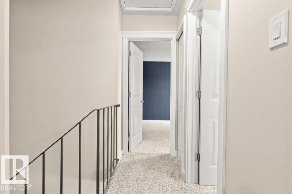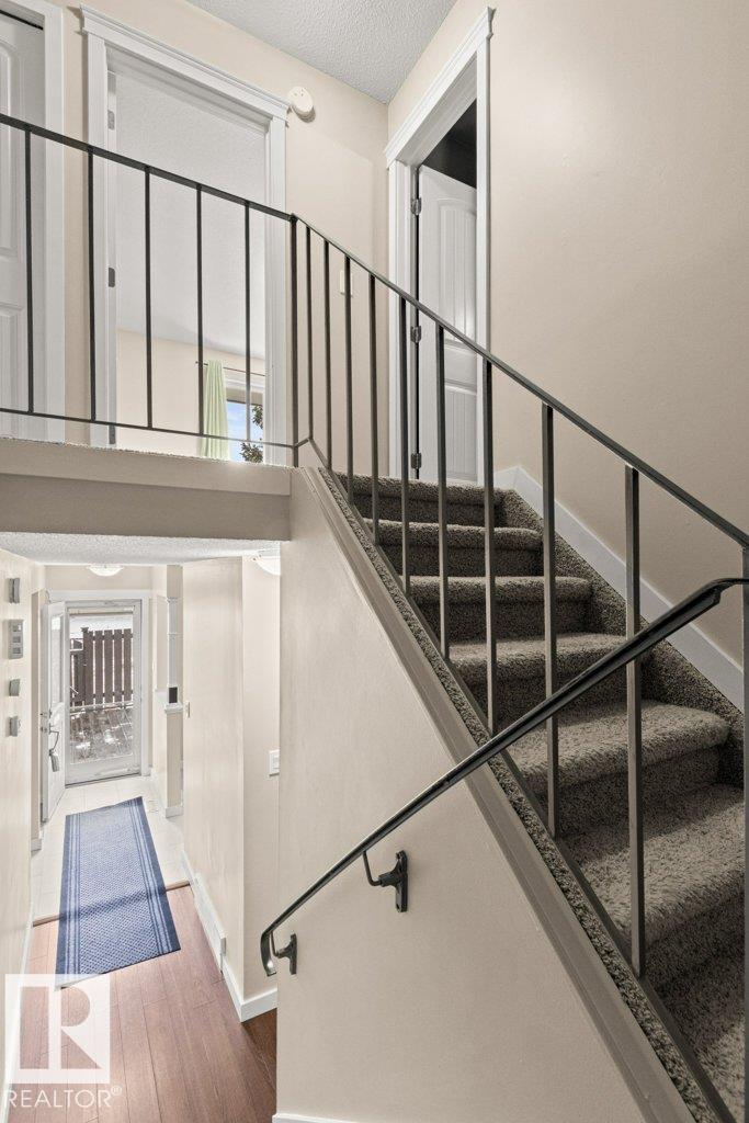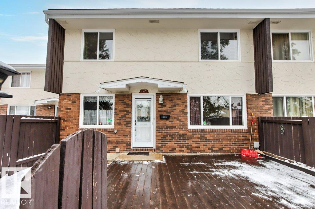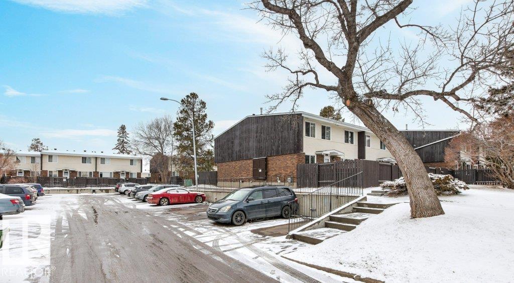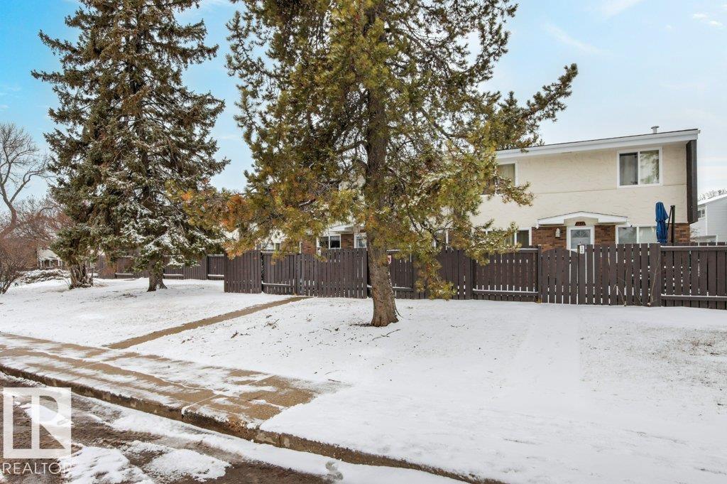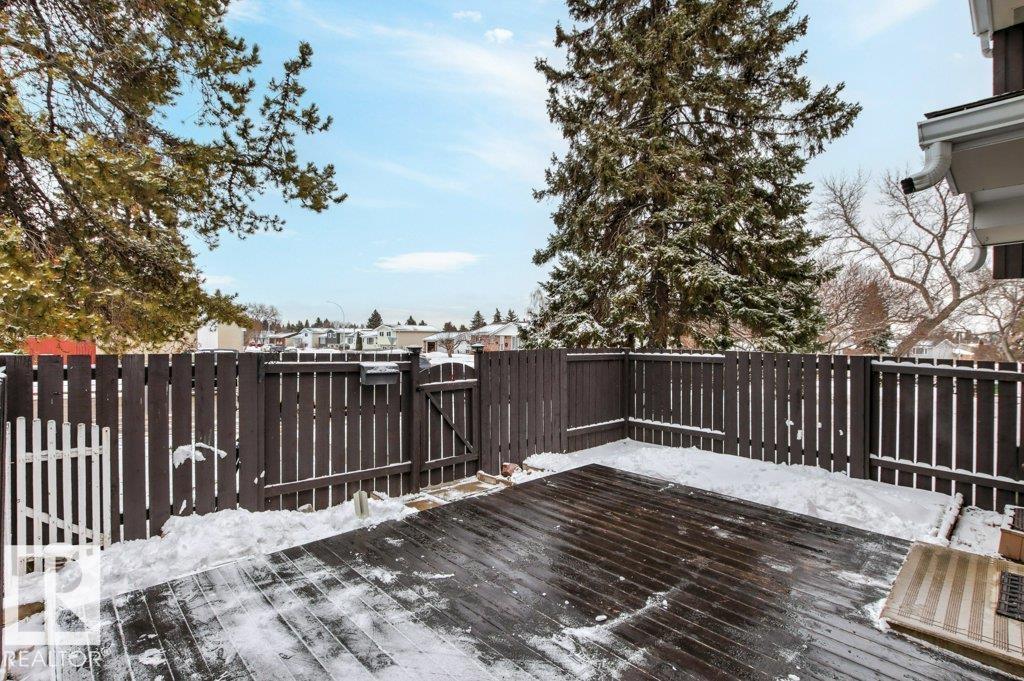 IMMACULATE & MOVE-IN READY! CUTE & CLEAN townhouse checks ALL the BOXES! Freshly painted 2 storey END UNIT in Northmount has a fully fenced yard w/ LG. deck. Impressive condo w/ new luxury vinyl flooring in kitchen & entrance. Kitchen w/ dining nook has loads of cupboards & counter space, stainless steel appliances, trendy backsplash & pantry cabinet gives many options. Adjacent living room/dining room offers big picture window & flooring w/ warm rich tones. 2-piece bath is stylish w/ extra cabinet + more storage space complete main level. Plush carpeting on the stairs leads to upper level; featuring massive primary w/ brand new carpet, oversized double closet & ceiling fan. Another oversized bedroom w/ lg- closet & 4-piece bath w/glamour mirror & lighting plus tile tub surround. FULLY FINISHED basement has endless opportunities; home office, gym, media room or playroom. Utility room w/ workbench & built-in cabinets. Close to Henday, Yellowhead,ÿDowntown, Transit, Shopping & Schools. PLUS LOW CONDO FEES!