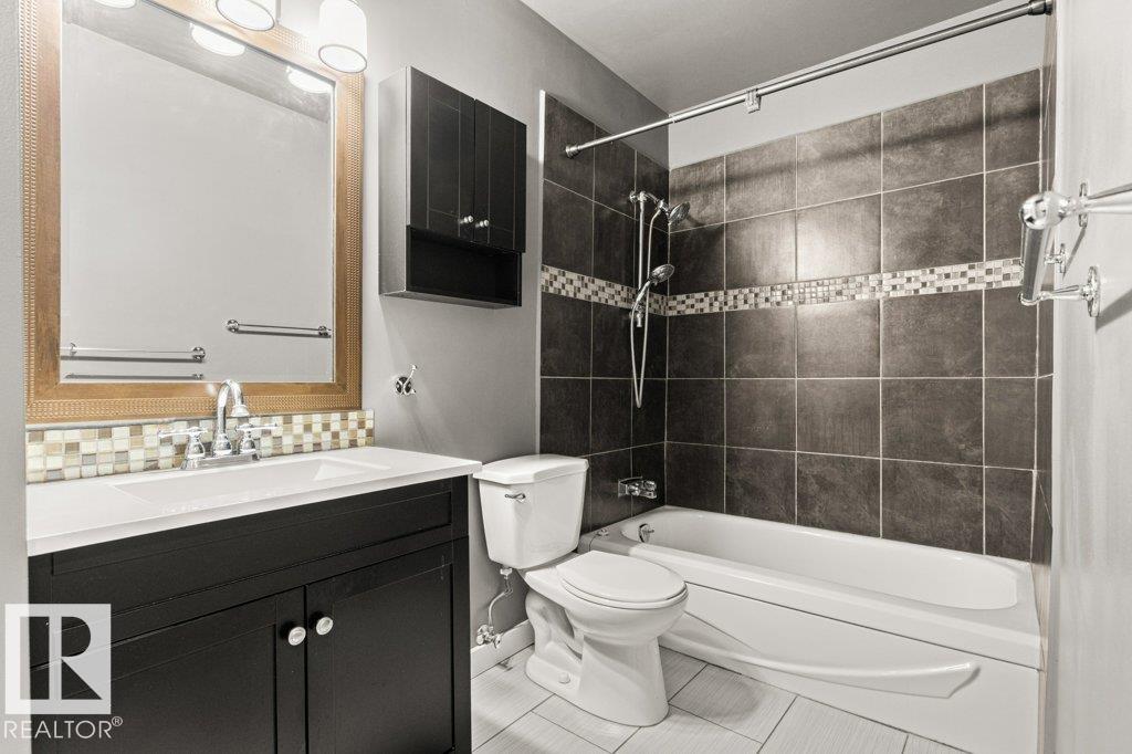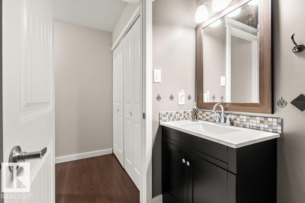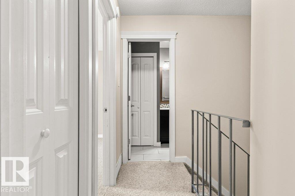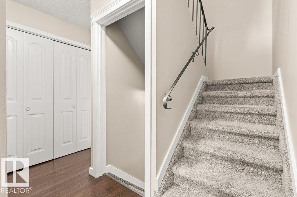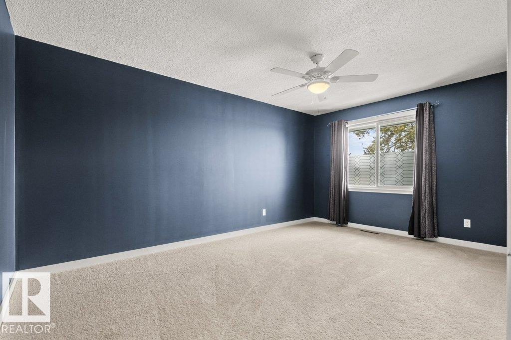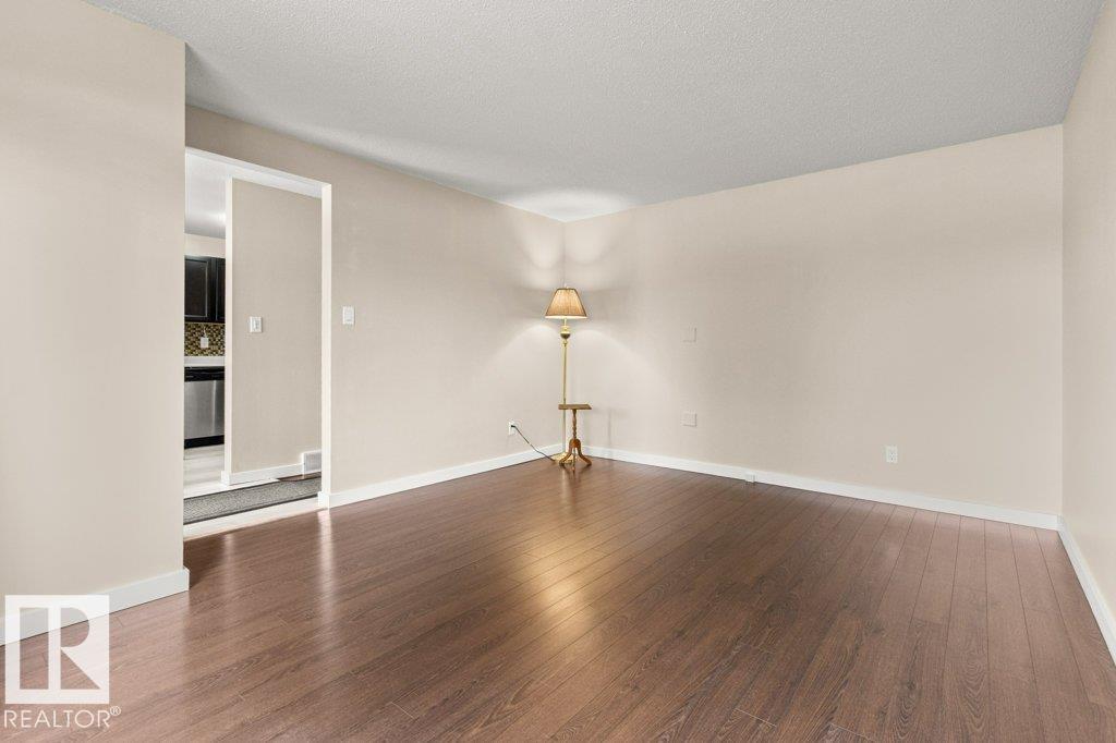 IMMACULATE & MOVE-IN READY! CUTE & CLEAN townhouse checks ALL the BOXES! Freshly painted 2 storey END UNIT in Northmount has a fully fenced yard w/ LG. deck. Impressive condo w/ new luxury vinyl flooring in kitchen & entrance. Kitchen w/ dining nook has loads of cupboards & counter space, stainless steel appliances, trendy backsplash & pantry cabinet gives many options. Adjacent living room/dining room offers big picture window & flooring w/ warm rich tones. 2-piece bath is stylish w/ extra cabinet + more storage space complete main level. Plush carpeting on the stairs leads to upper level; featuring massive primary w/ brand new carpet, oversized double closet & ceiling fan. Another oversized bedroom w/ lg- closet & 4-piece bath w/glamour mirror & lighting plus tile tub surround. FULLY FINISHED basement has endless opportunities; home office, gym, media room or playroom. Utility room w/ workbench & built-in cabinets. Close to Henday, Yellowhead,ÿDowntown, Transit, Shopping & Schools. PLUS LOW CONDO FEES!