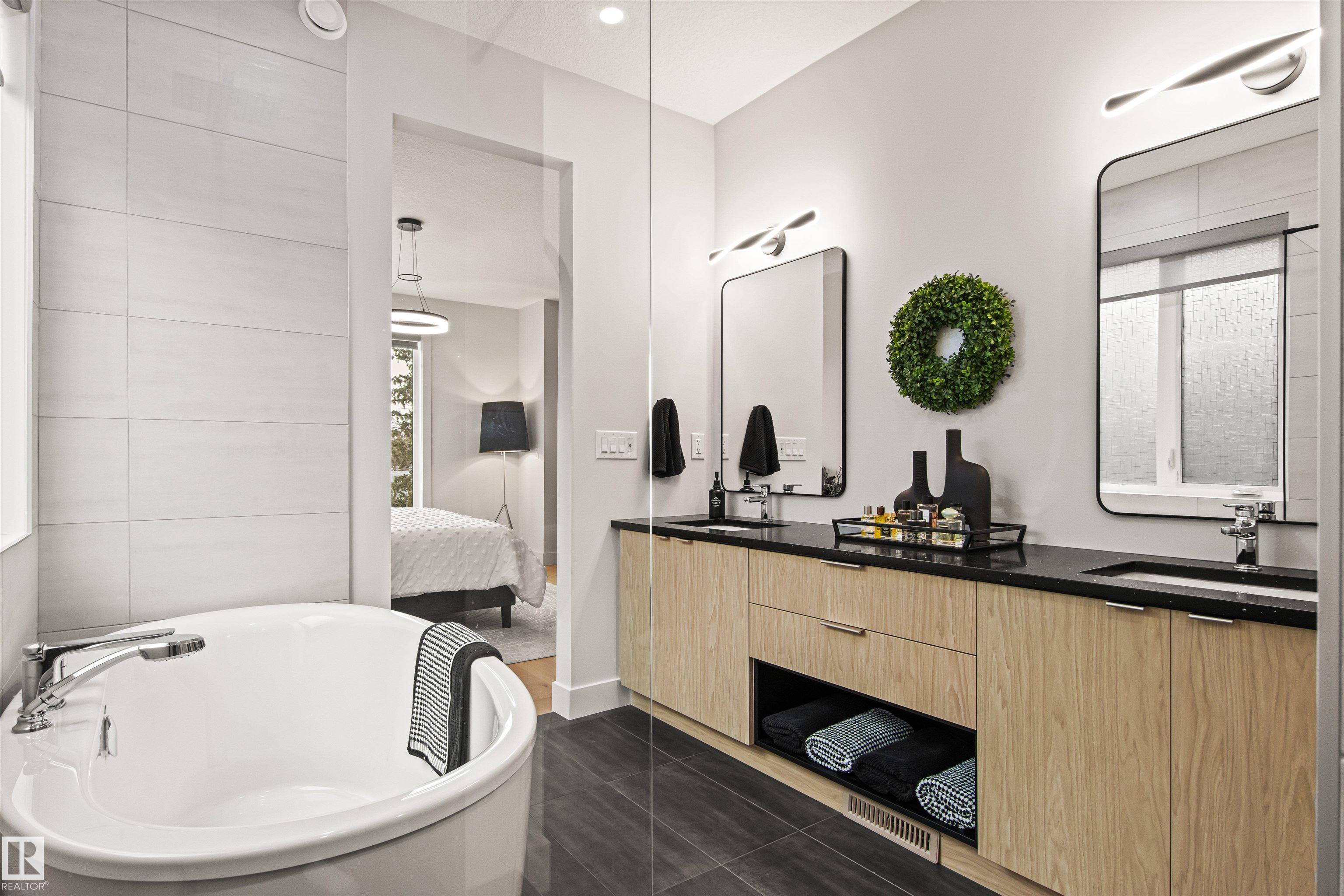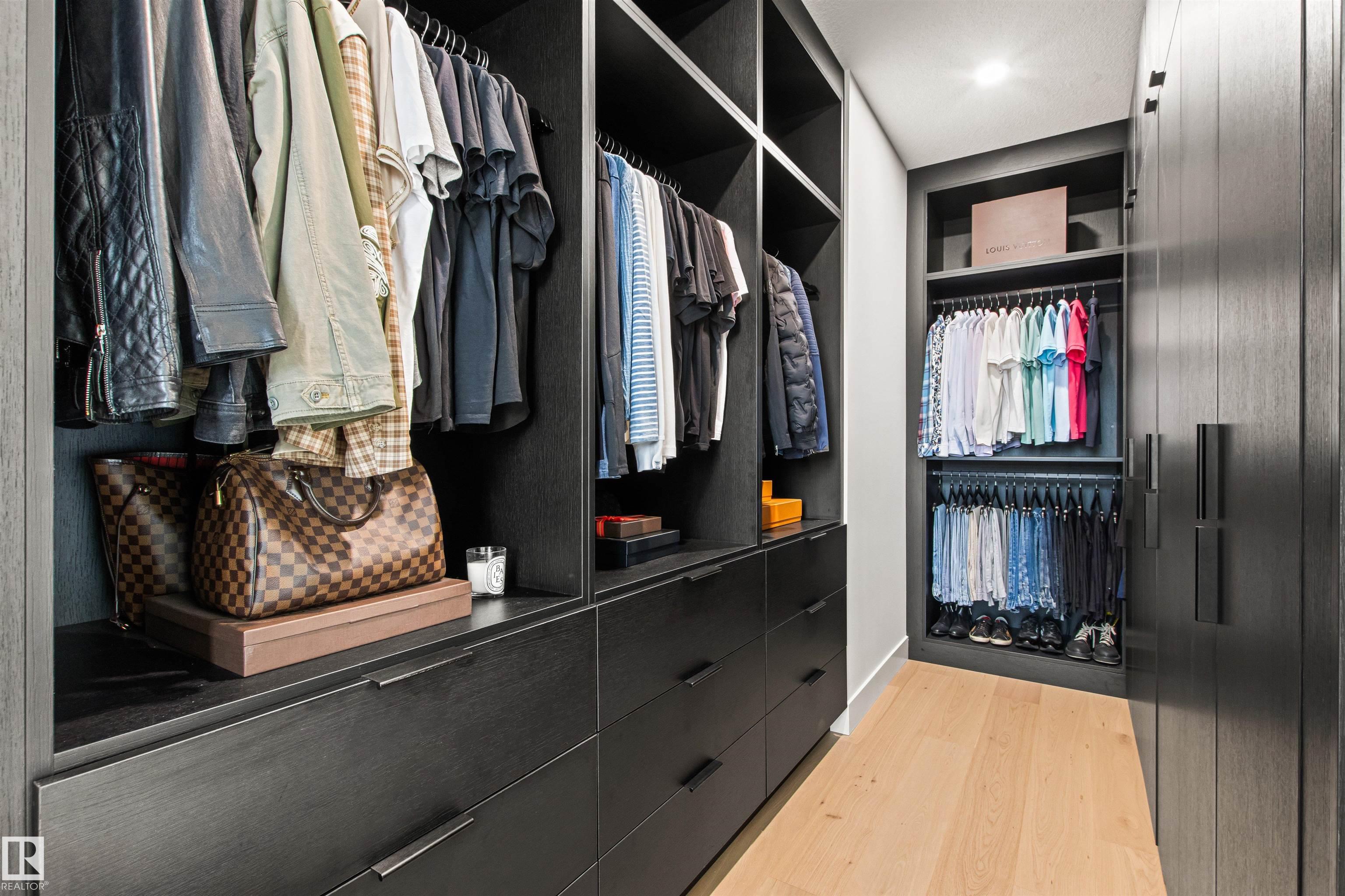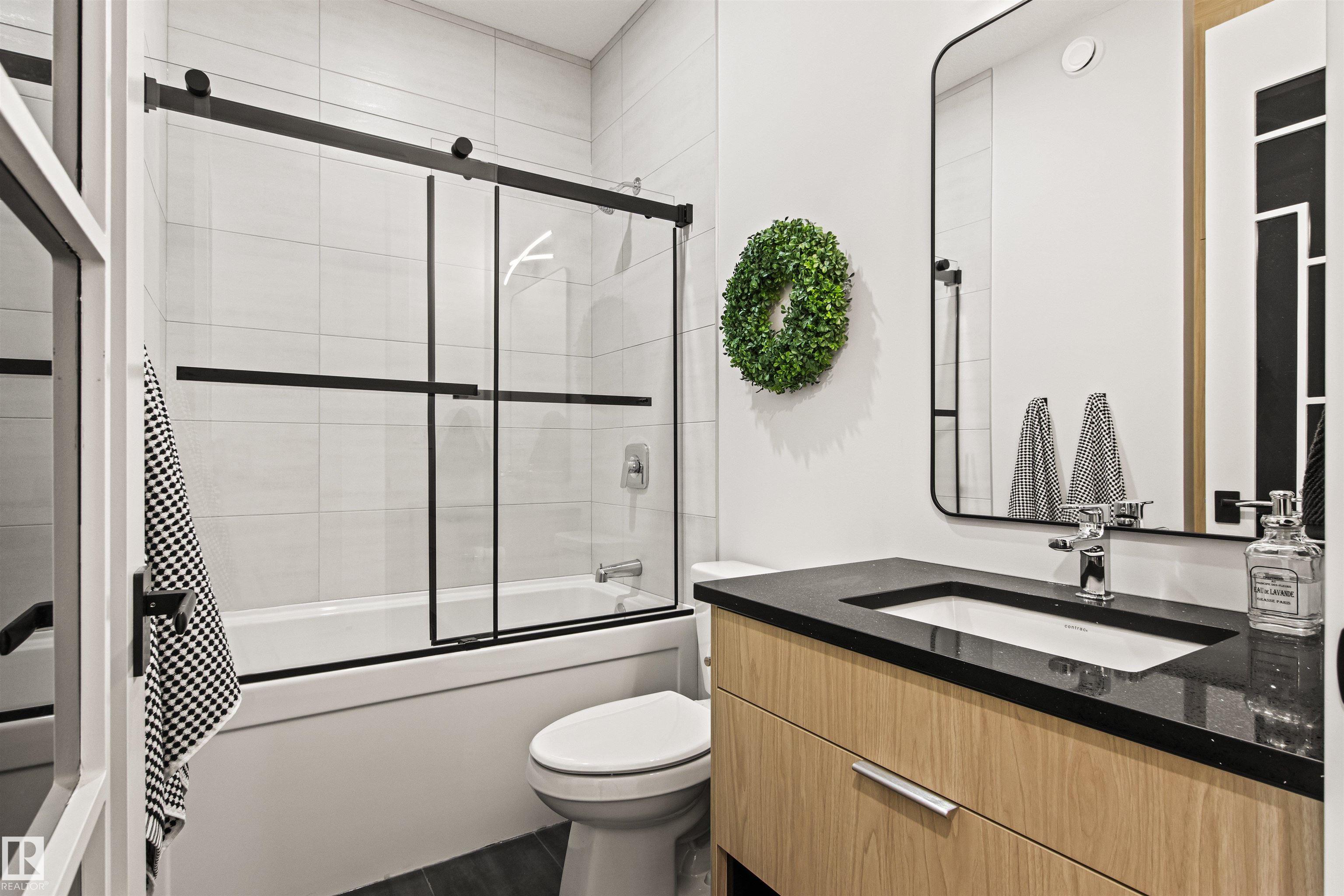 Welcome to Parkview & this truly TURNKEY property! Developed on 3 levels with superb workmanship. Engineered HARDWOOD throughout, 9' CEILINGS, & fantastic layout. Kitchen cabinets & closets by ESSENCE CABINETS. Showstopper kitchen has large waterfall QUARTZ island & high end BOSCH appliances ( including gas stove & 2 ovens: electric & gas). Living room has GARDEN doors leading to a front patio. Dining area, mud room & 2 pc bath complete the main level. Upstairs you find 3 bedrooms (including Primary suite with spacious closet & beautiful ensuite bath) & main bath. Basement has SEPARATE entrance & provides 2 additional bedrooms, family room (with wet bar, dishwasher & mini fridge), full bath, laundry hookup & utility room. NAVIEN tankless water heater, central A/C make life comfortable. Property is FENCED & LANDSCAPED. Exposed AGGREGATE concrete sidewalks & patios, ACRYLIC stucco & metal exterior add to a rich feeling of this property. DOUBLE detached garage is insulated. Make a move!