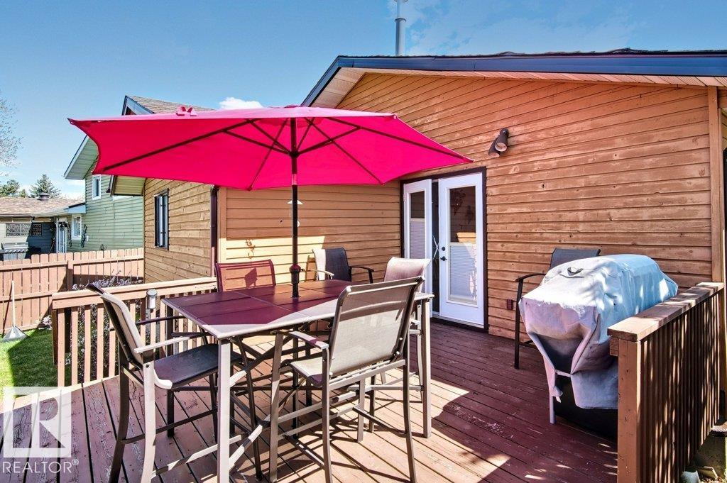 This well-maintained 1,218 square foot bungalow in Pollard Meadows is situated on a large lot along a quiet street and is close to schools, transit and the Gurdwara Siri Guru Singh Saba. The main floor features a sunken living room, dining room, kitchen, primary bedroom with a walk-in closet and two-piece ensuite, two additional bedrooms and a main four-piece bath. French doors of the kitchen to a raised deck with stairs to the back yard. A central staircase leads to the fully-finished basement featuring a family room with a wood burning Heatilator fireplace, utility room, cold room, two additional rooms that could be used as an office or craft room, and a three-piece bath. A large attached double garage with two single doors is complemented by a large driveway for plenty of extra parking.