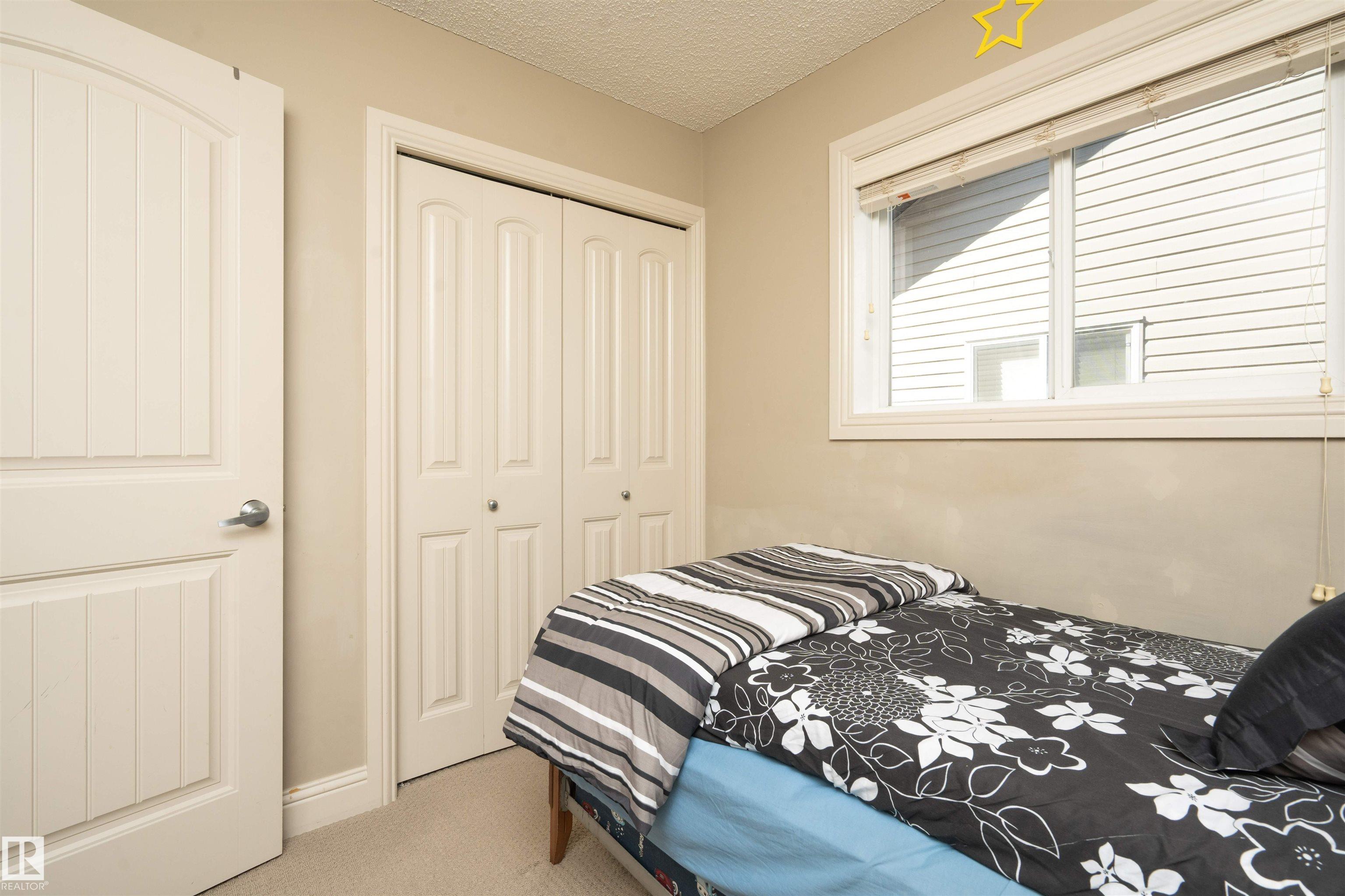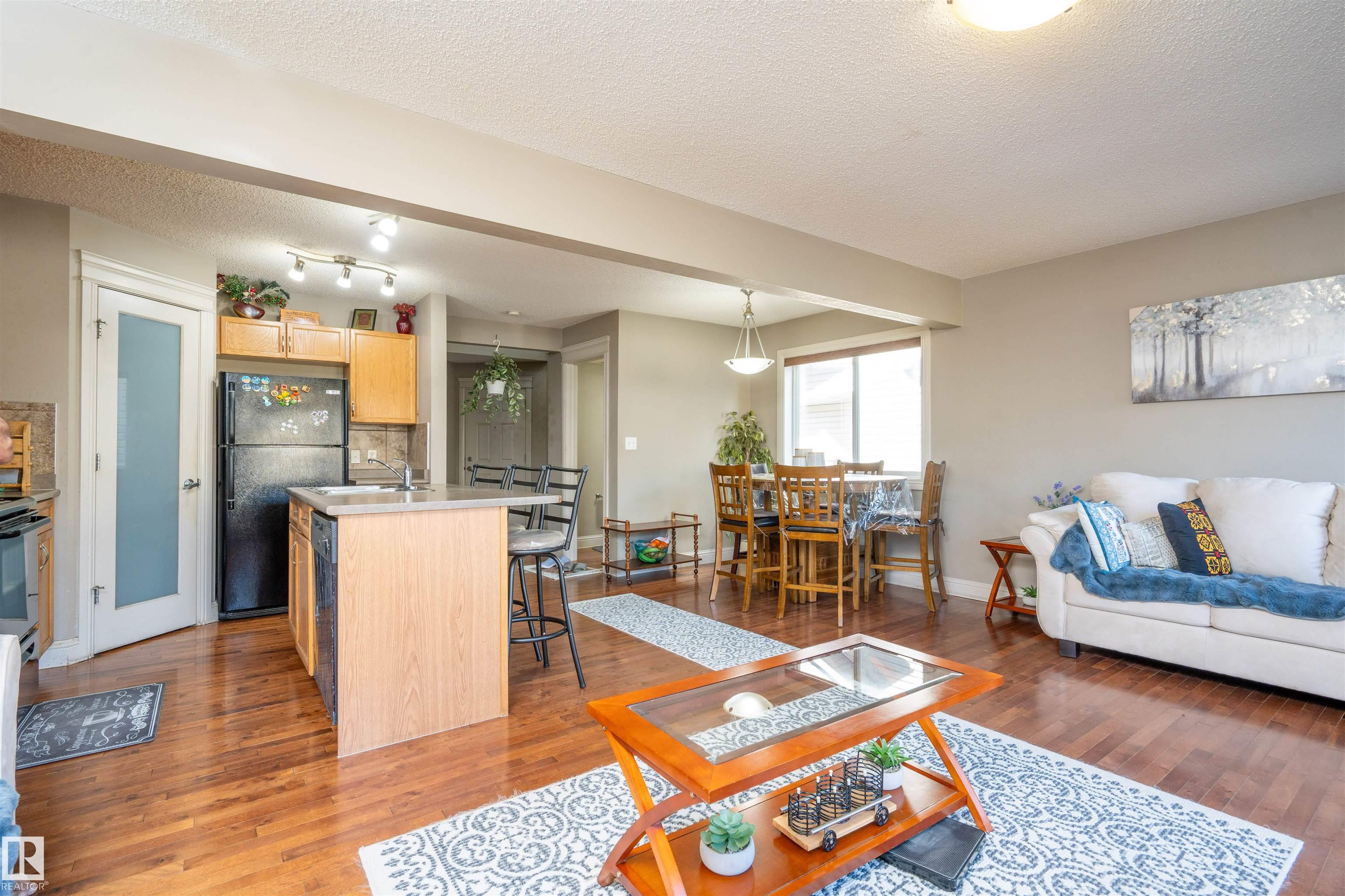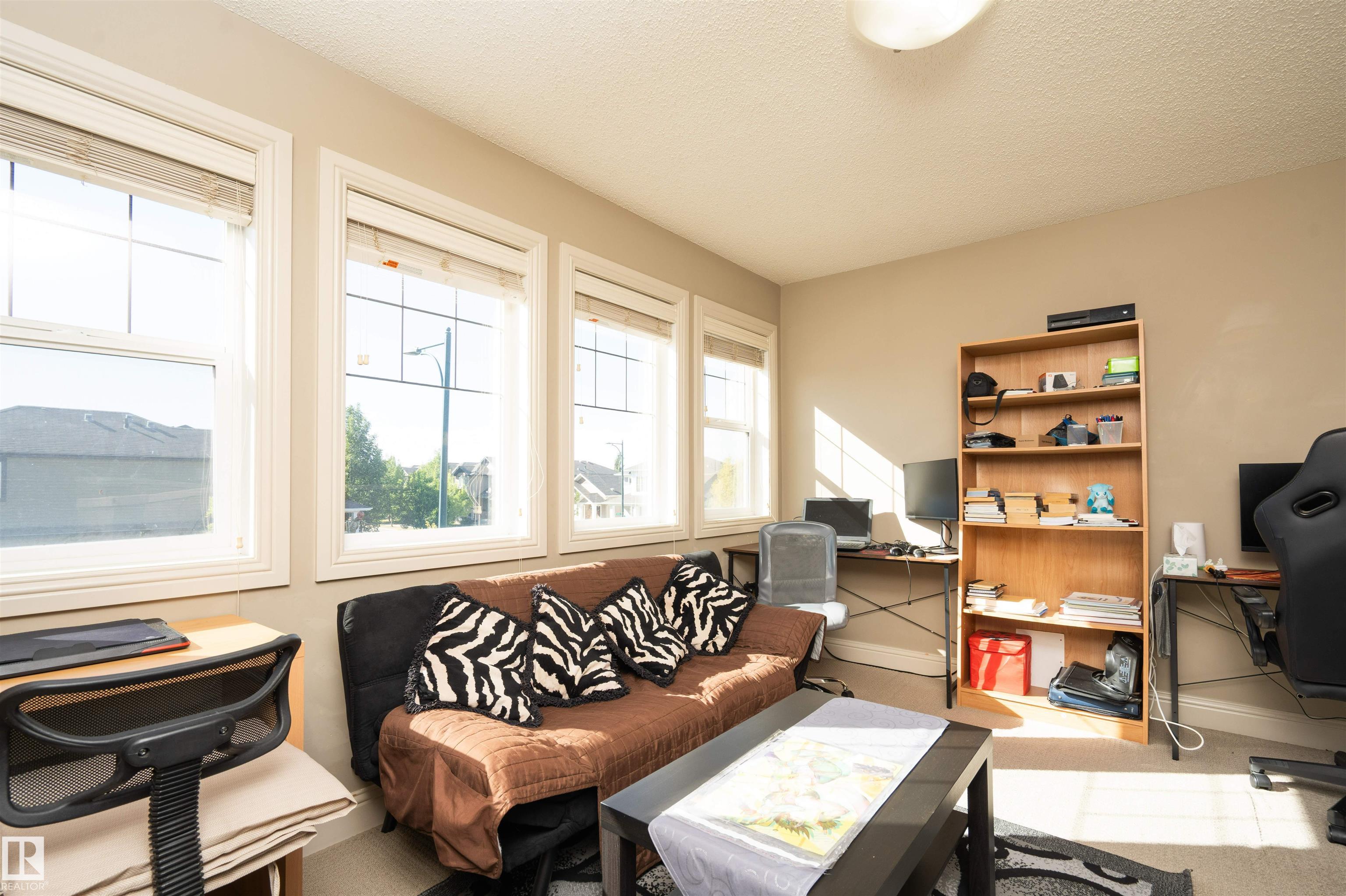 Welcome to this bright and inviting 3-bedroom + bonus room, 2.5-bath Half duplex with front attached car garage in the neighborhood of Tamarack. Designed with family living in mind, the sunlit open concept main floor features a functional kitchen, a dining area and cozy living room anchored by a fireplace plus patio doors leading to the backyard deck. Upstairs, a versatile bonus room is ideal for movie nights or a home office. The primary suite offers a private retreat with its own ensuite, while two more bedrooms share a full bath. The unfinished basement offers room to grow and personalize. This home is just steps from A Blair McPherson School, parks, playgrounds, community league and ETS bus stop. Everyday essentials are close by with grocery stores, shopping, dining, and the Meadows Transit Centre only minutes away. Comfort, convenience, and community come together here.