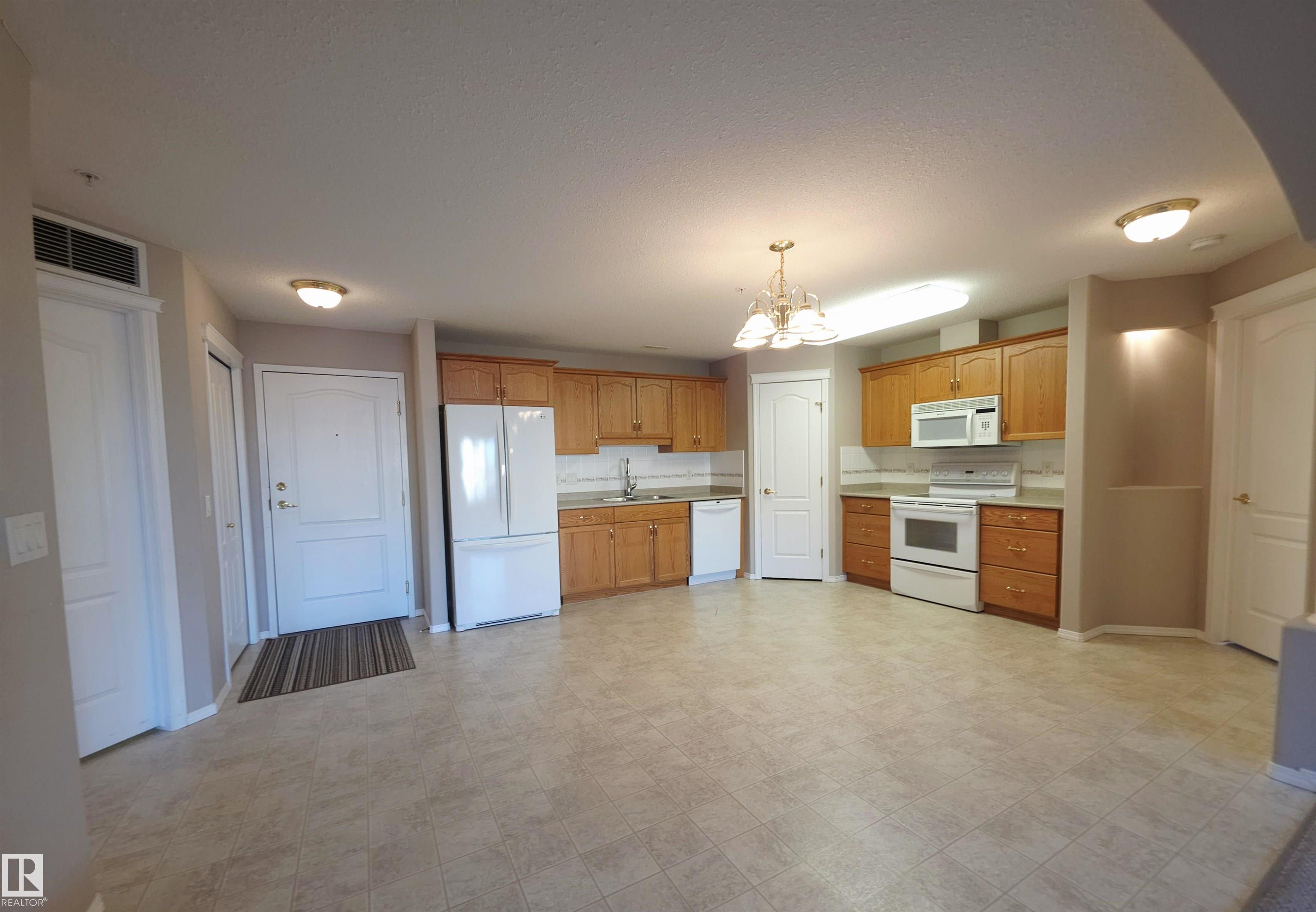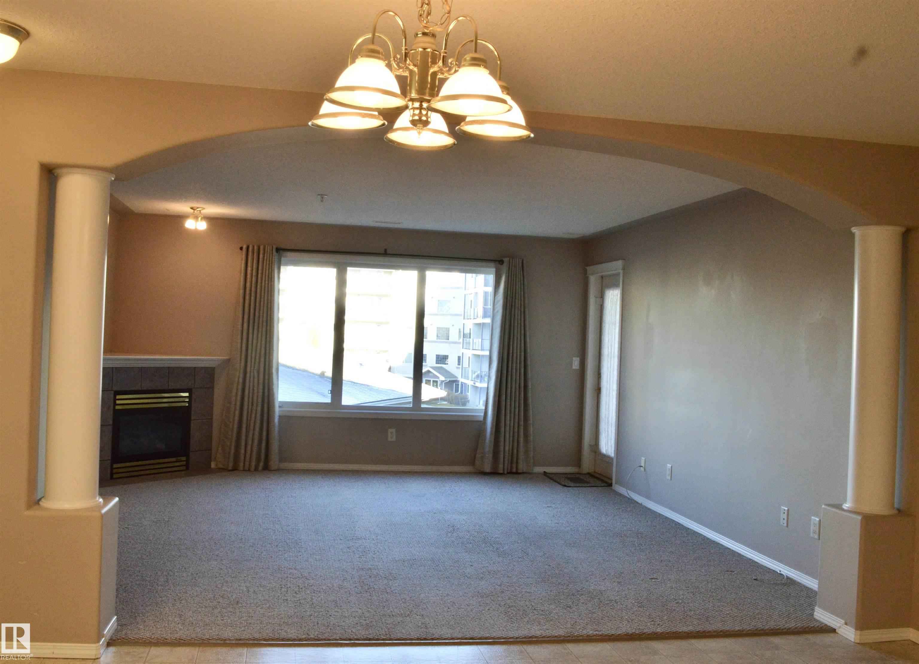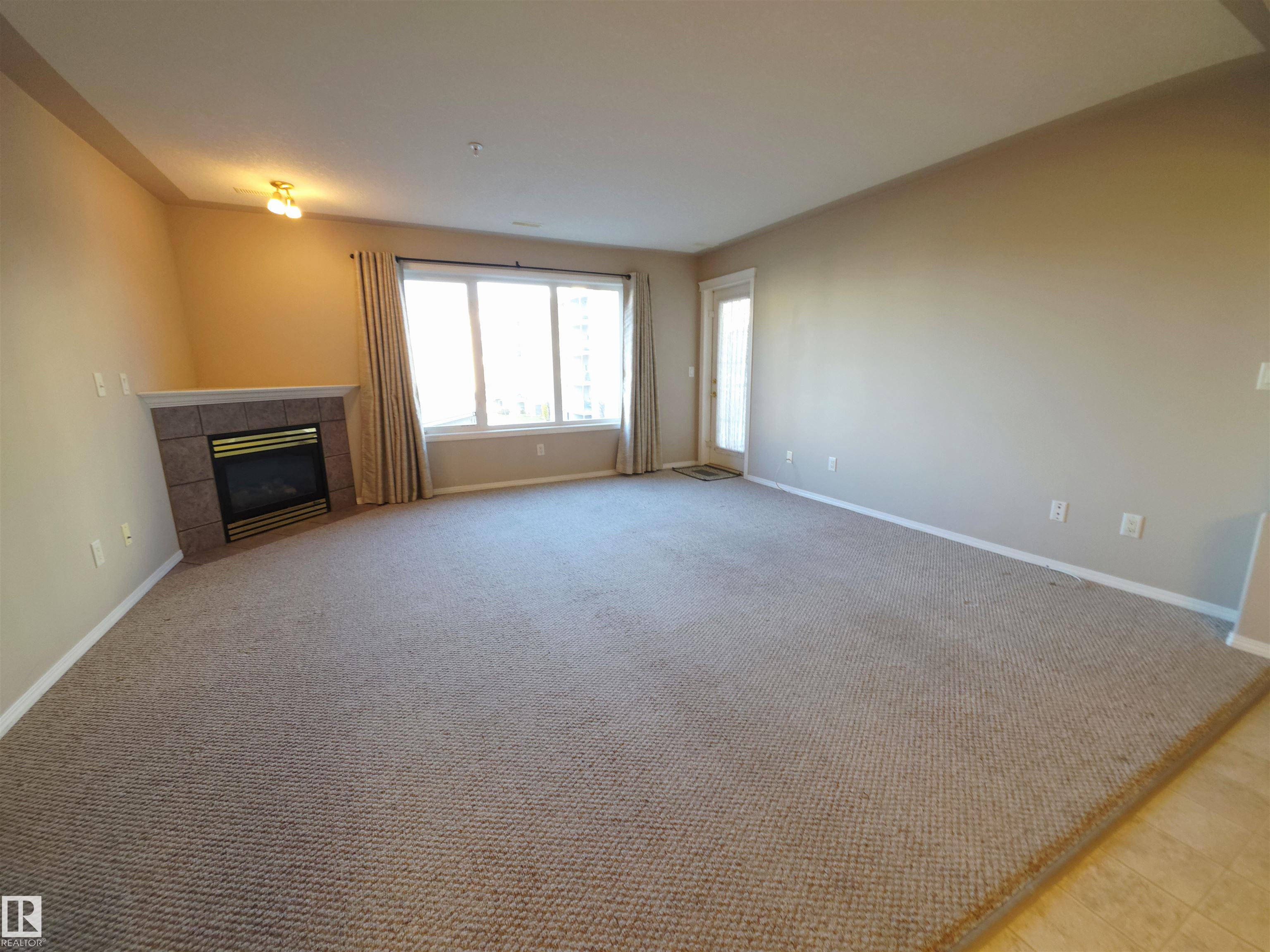 2 bed, 2 bath, open layout with lots of natural light . A huge living room with corner gas fireplace and good sized balcony facing the courtyard that comes with a natural gas barbecue (included). A large master bedroom with 4 piece ensuite and walk-in closet. Good sized second bedroom with in-suite laundry and extra storage. This unit comes with the best underground parking spot in the complex only streps away from the elevators. The amenities building includes a gym, sauna and steam room, pool table and shuffleboard. Convenient to shopping and transportation make this the easy choice for your next move!