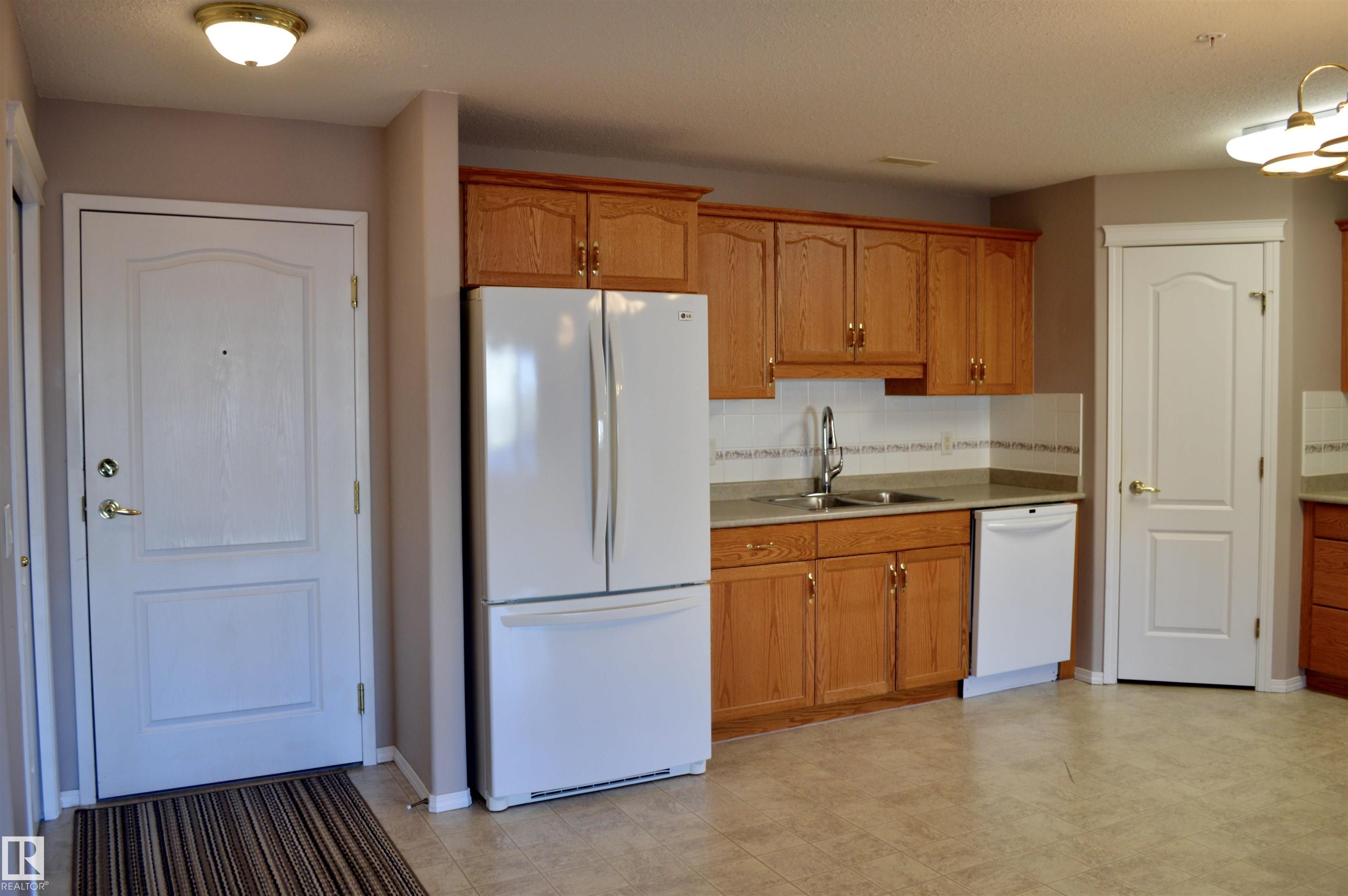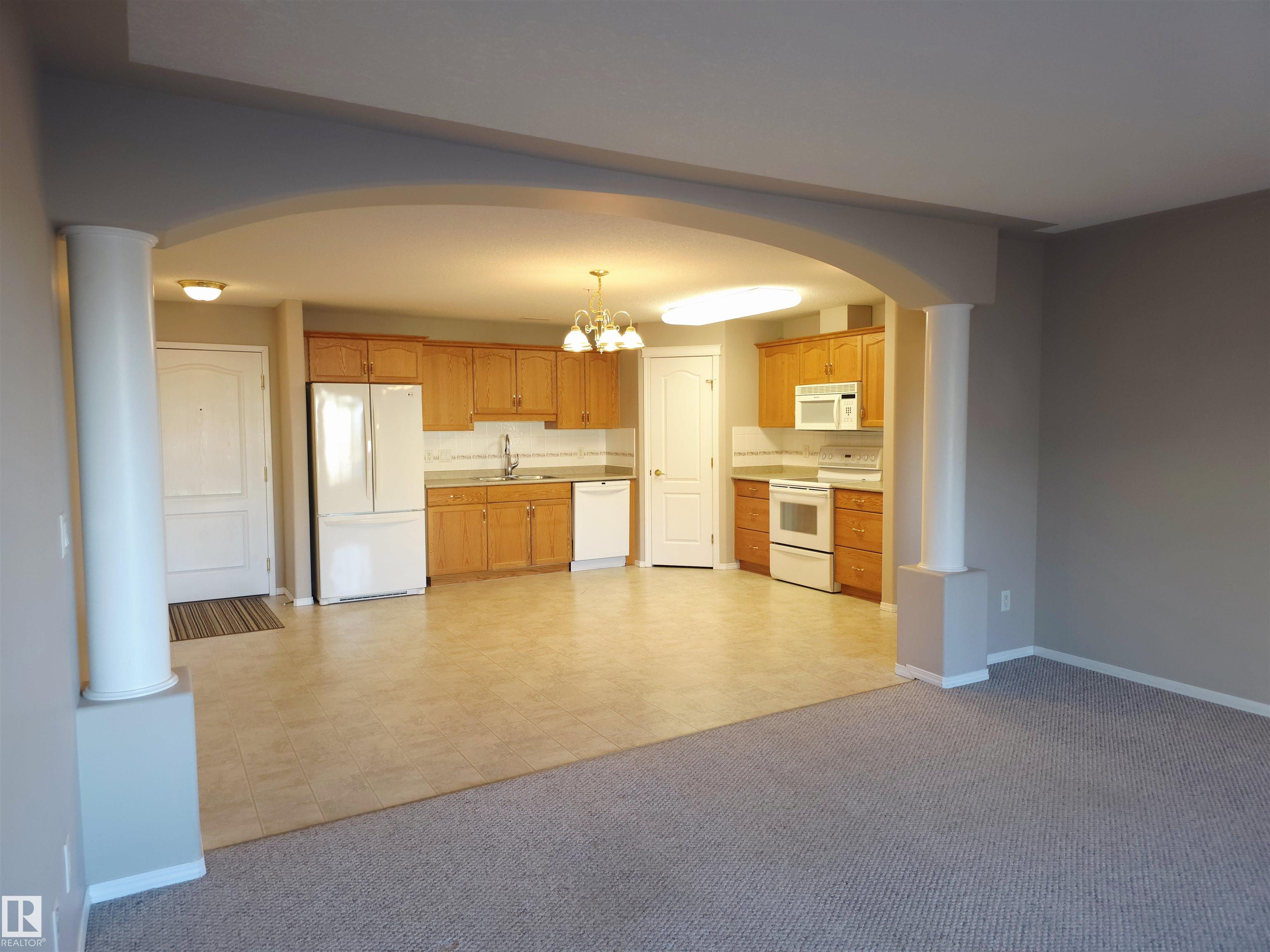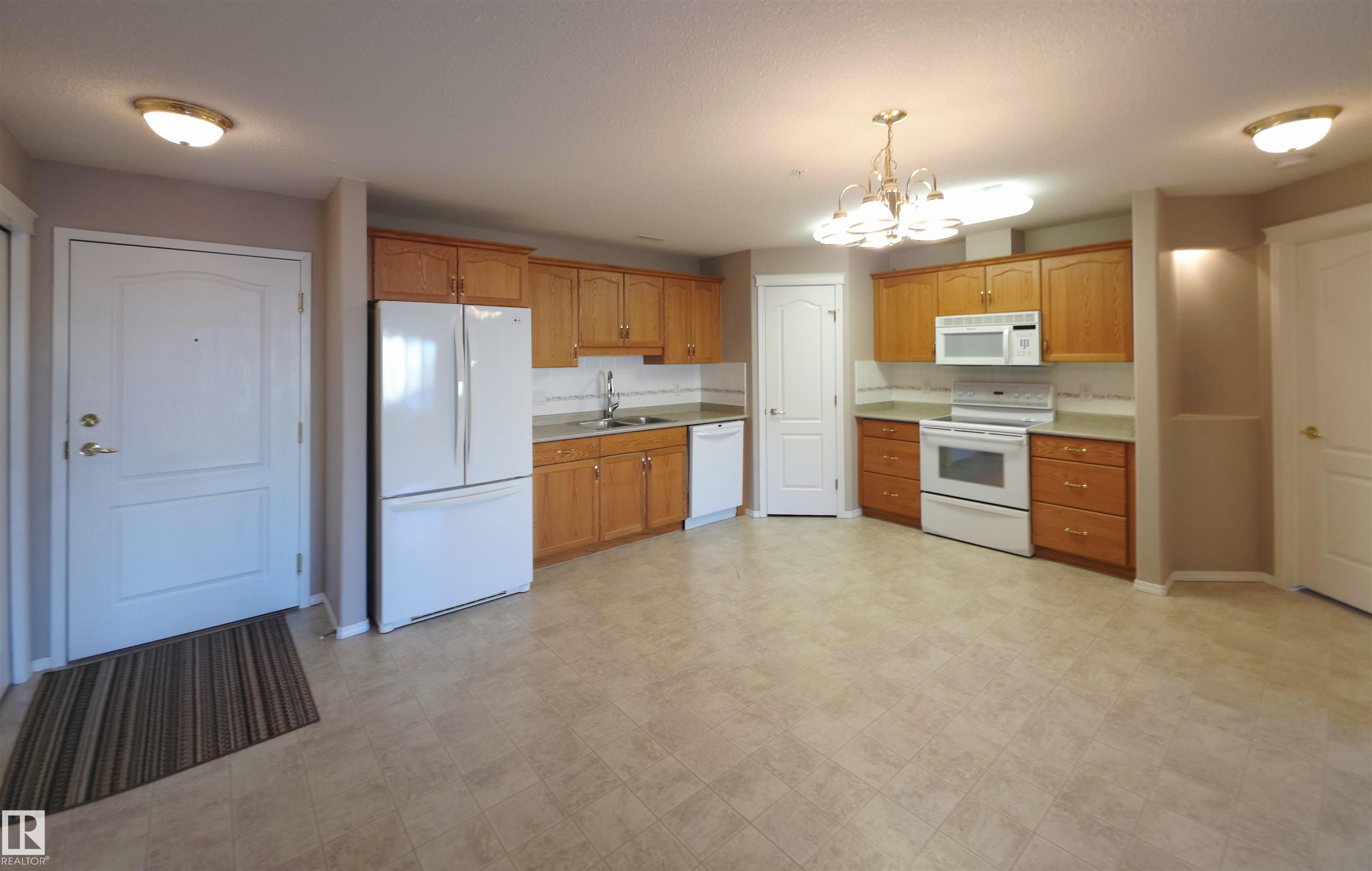 2 bed, 2 bath, open layout with lots of natural light . A huge living room with corner gas fireplace and good sized balcony facing the courtyard that comes with a natural gas barbecue (included). A large master bedroom with 4 piece ensuite and walk-in closet. Good sized second bedroom with in-suite laundry and extra storage. This unit comes with the best underground parking spot in the complex only streps away from the elevators. The amenities building includes a gym, sauna and steam room, pool table and shuffleboard. Convenient to shopping and transportation make this the easy choice for your next move!