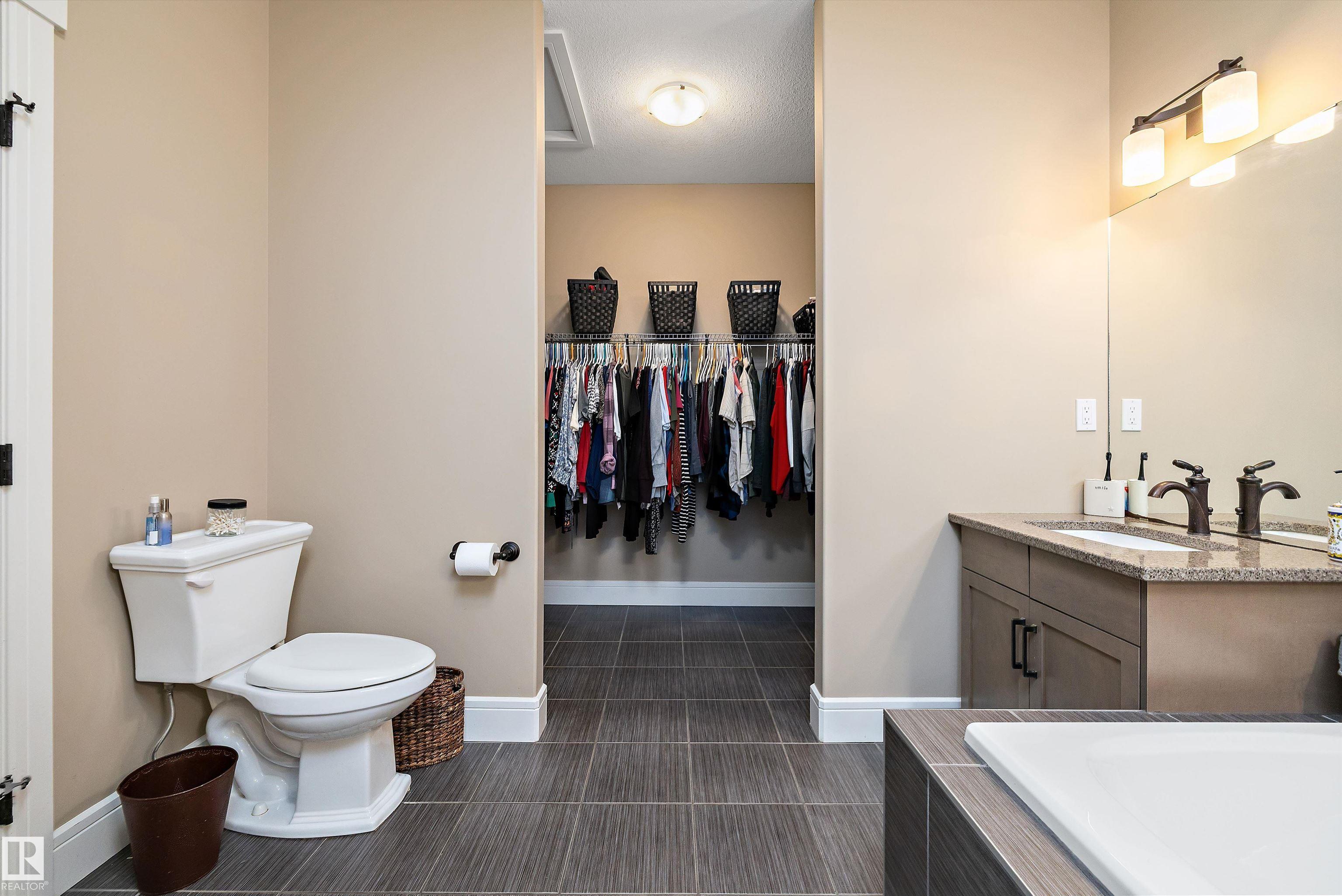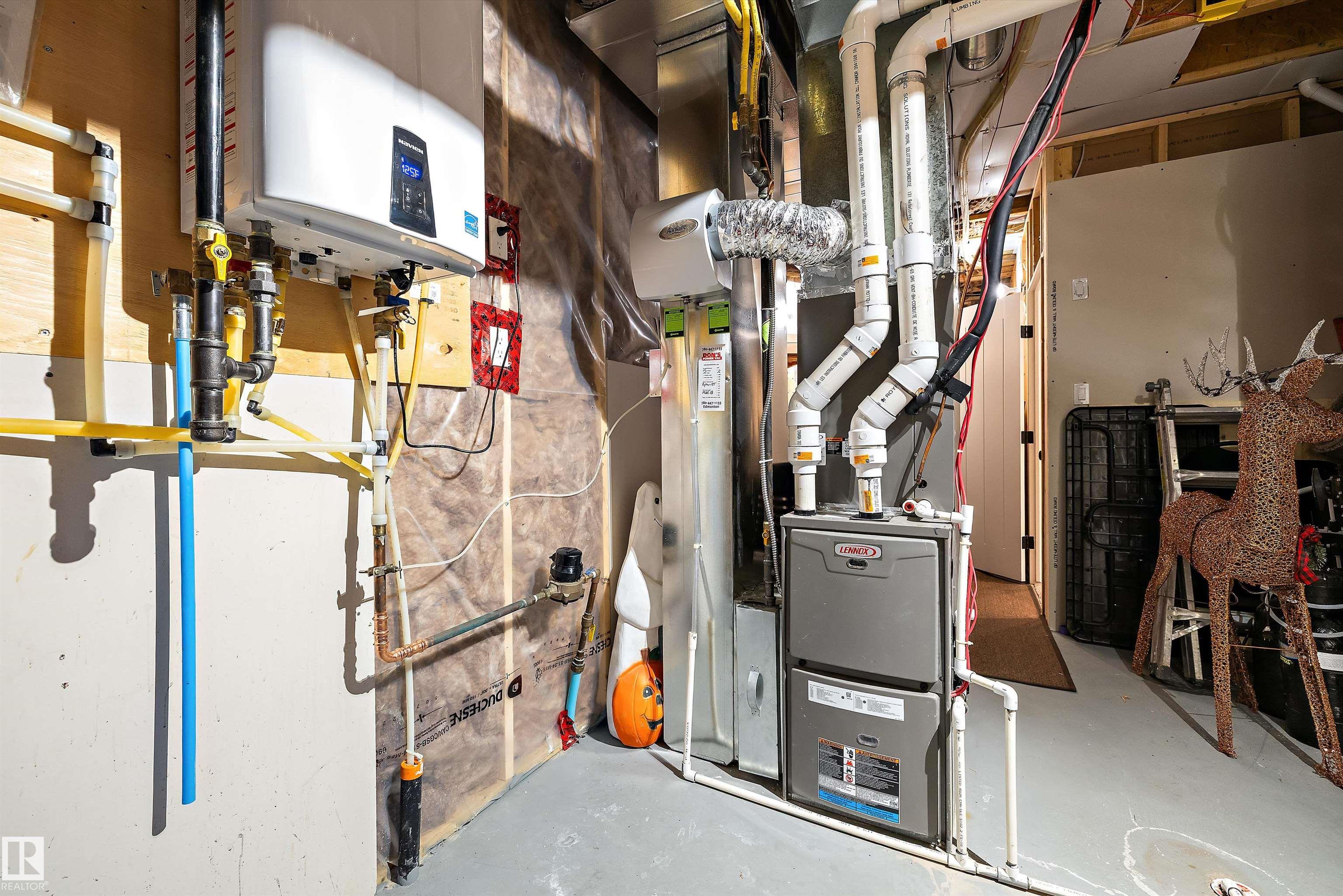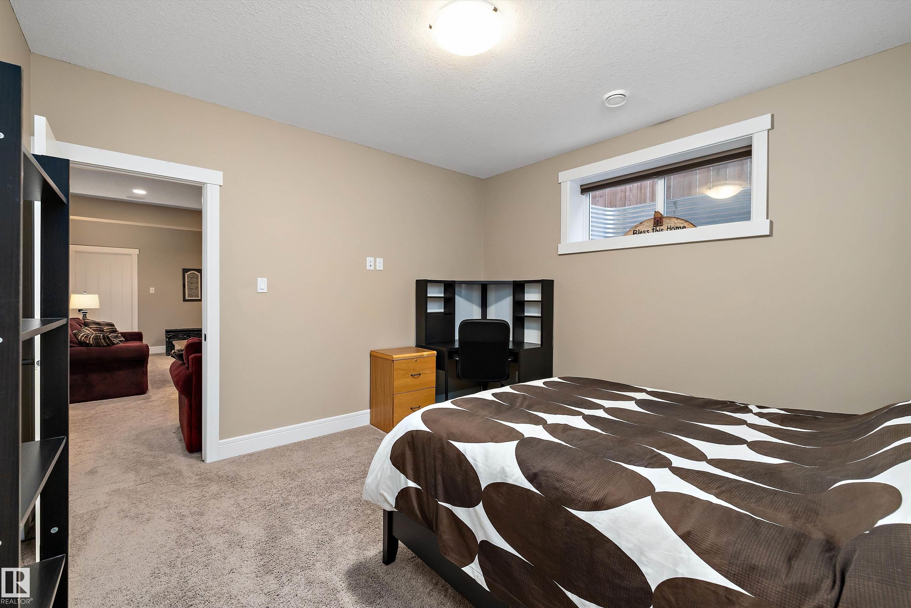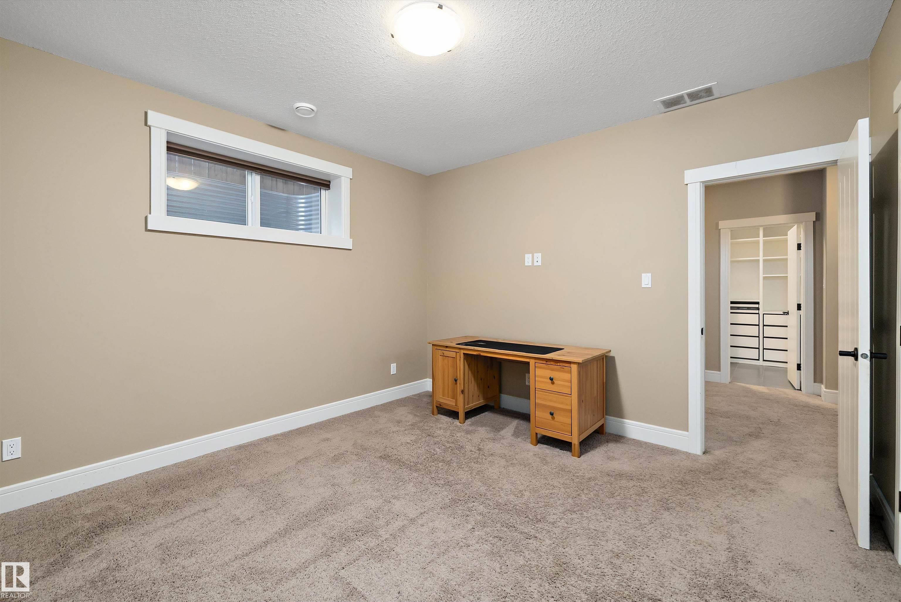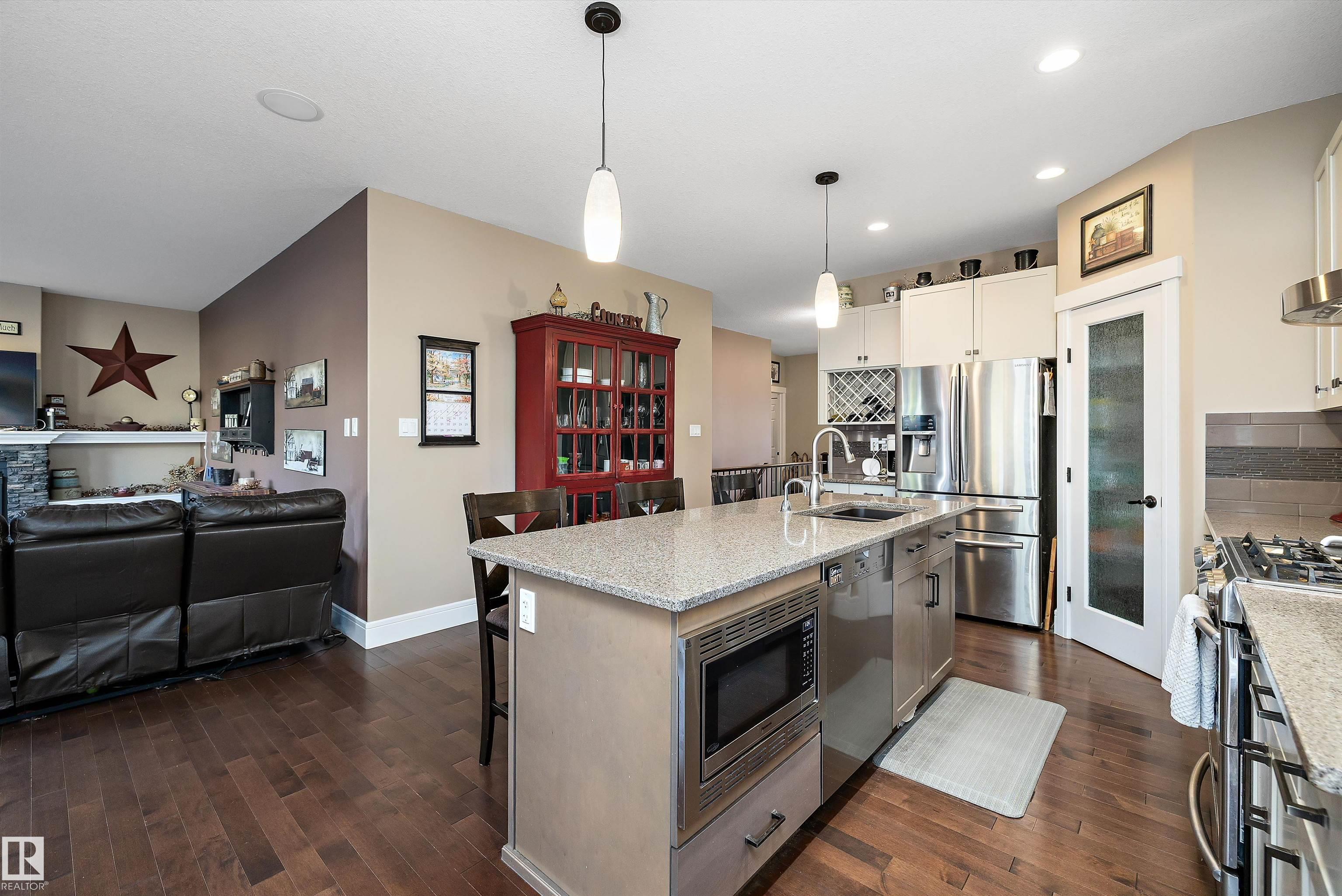 Rare bungalow opportunity built by Coventry Homes in sought-after Walker! The spacious main floor offers a large den, laundry, and a luxurious primary suite with a soaker tub, separate shower, and walk-in closet. The chef's kitchen features granite counters, a gas stove, and corner pantry, flowing seamlessly into the living room with a cozy stone faced gas fireplace. The finished basement impresses with 9' ceilings, a family room with a second fireplace, two large bedrooms with full-length closets, and a 4-piece bath. Enjoy outdoor living on the huge 32'x14' two-tier deck, with a hot tub pad and wiring, 8'x10' matching shed with workbench, and a gorgeous landscaped yard with poured curbing, backing onto a walking trail. Extras include central A/C, tankless hot water tank, high-efficiency furnace, central vac, built in speakers, and double attached garage. Fantastic location just minutes to shopping, groceries, and EIA, on a quiet local traffic only street.
