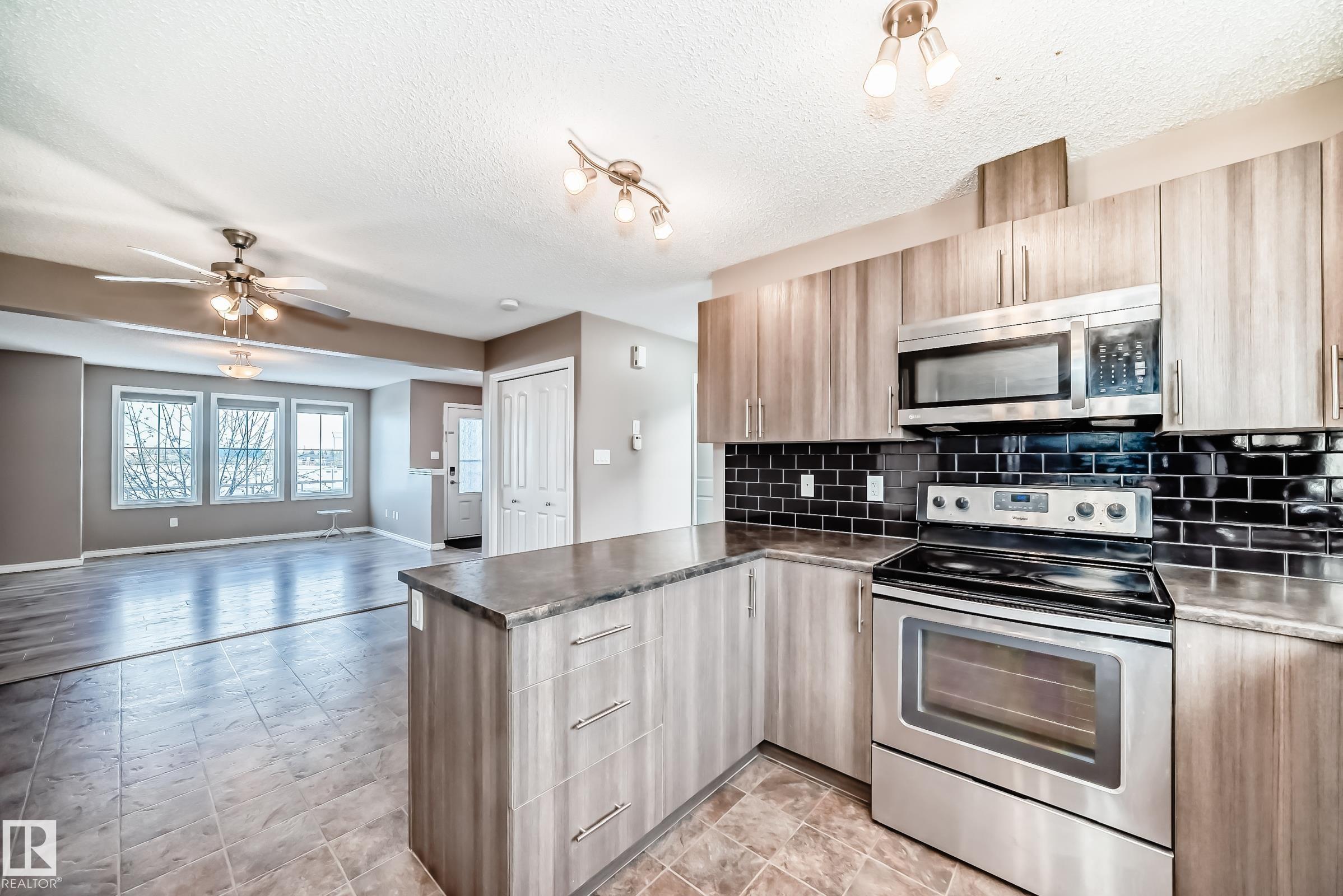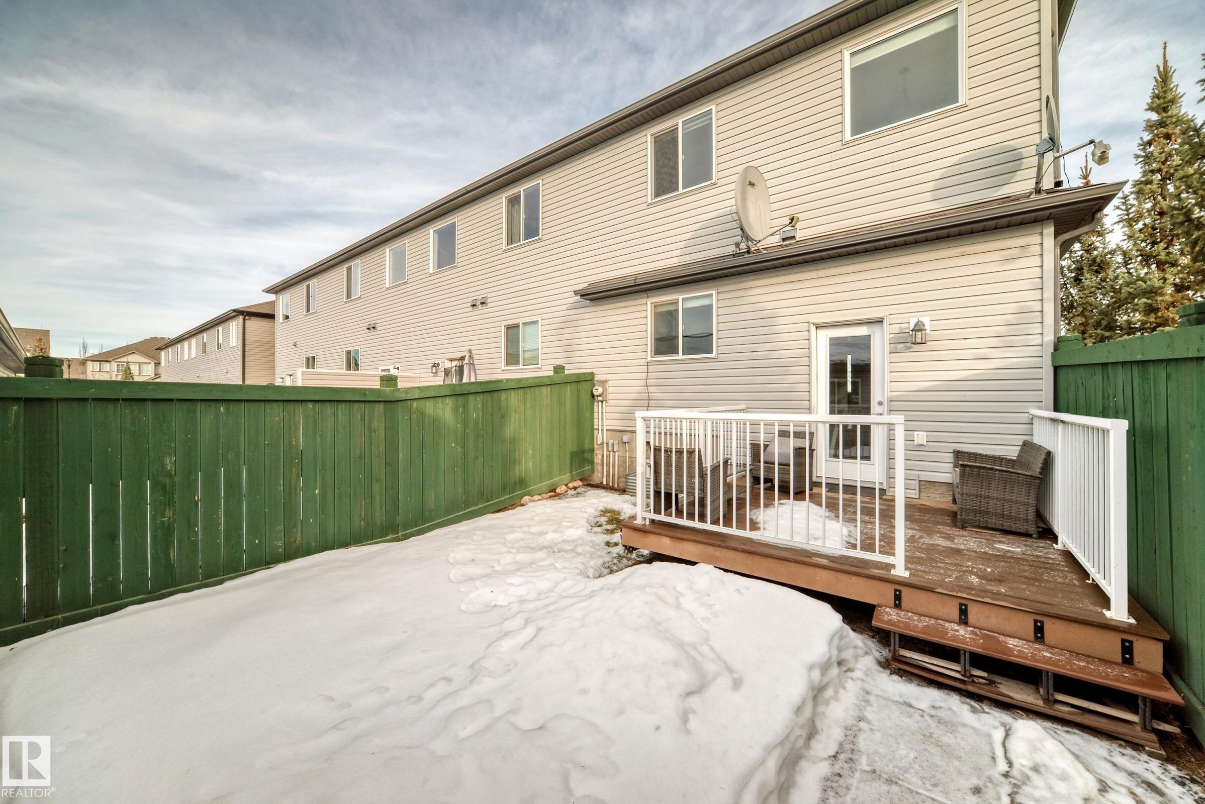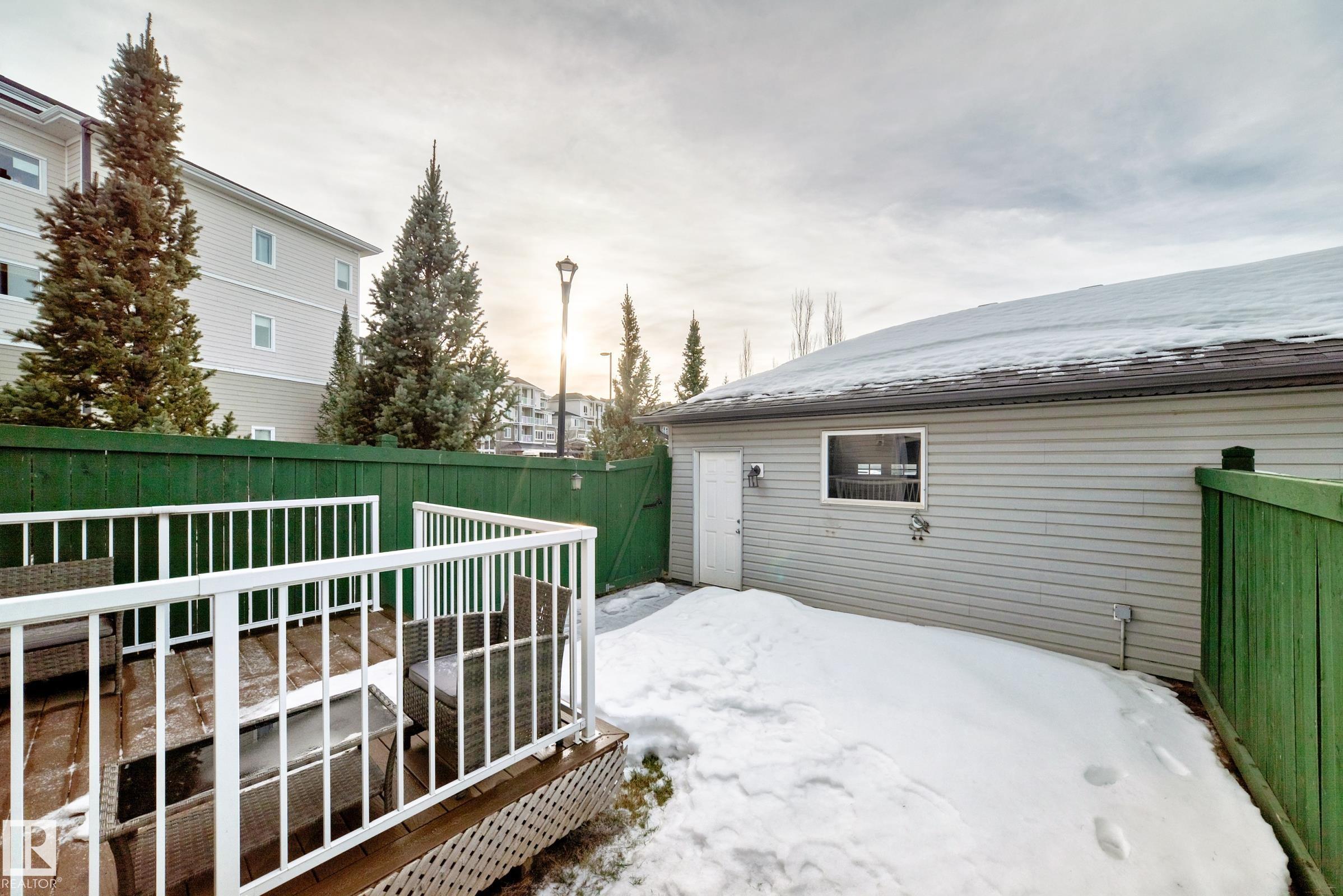 Beautifully maintained corner end-unit townhouse in the sought-after community of Webber Greens. This 2-storey home offers 3 bedrooms, 2.1 baths and 1,390 sq ft RMS above-grade living space (professionally measured; floor plans available). The main floor features a welcoming entry, spacious living and dining areas, and a modern kitchen with stainless steel appliances, stylish cabinetry, tile backsplash, ample counter space, and a large island--ideal for everyday living and entertaining, along with a convenient 2-pc bath. Upstairs you'll find a generous primary bedroom with walk-in closet and 4-pc ensuite, plus two additional bedrooms and a full 4-pc bathroom. The full unfinished basement offers excellent future development potential. Enjoy outdoor living on the deck and the convenience of a double detached garage. Water softener is included. Exceptional west-end location with quick access to Whitemud Drive and Anthony Henday, close to major shopping and services including FreshCo, Shoppers Drug Mart,Tims
