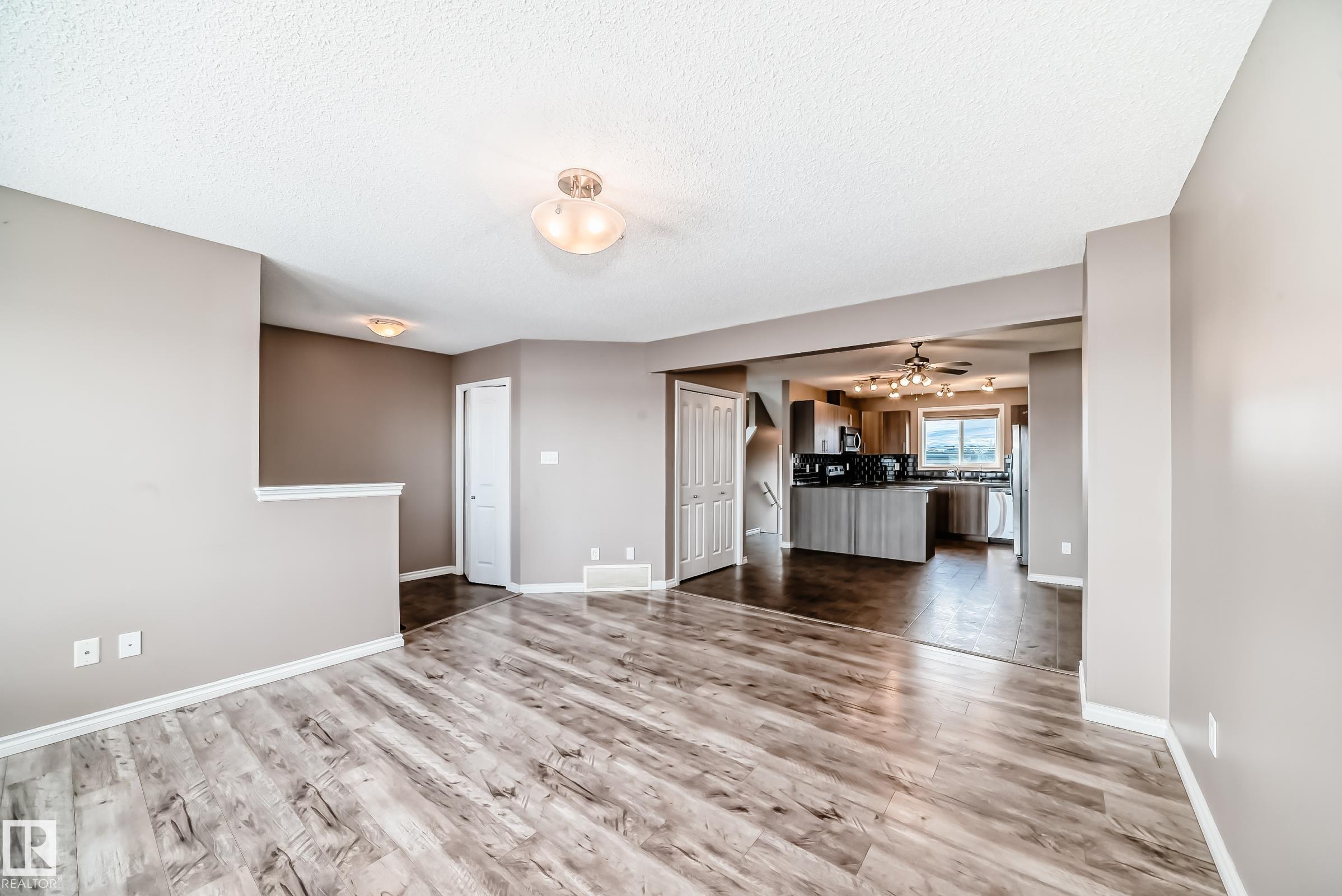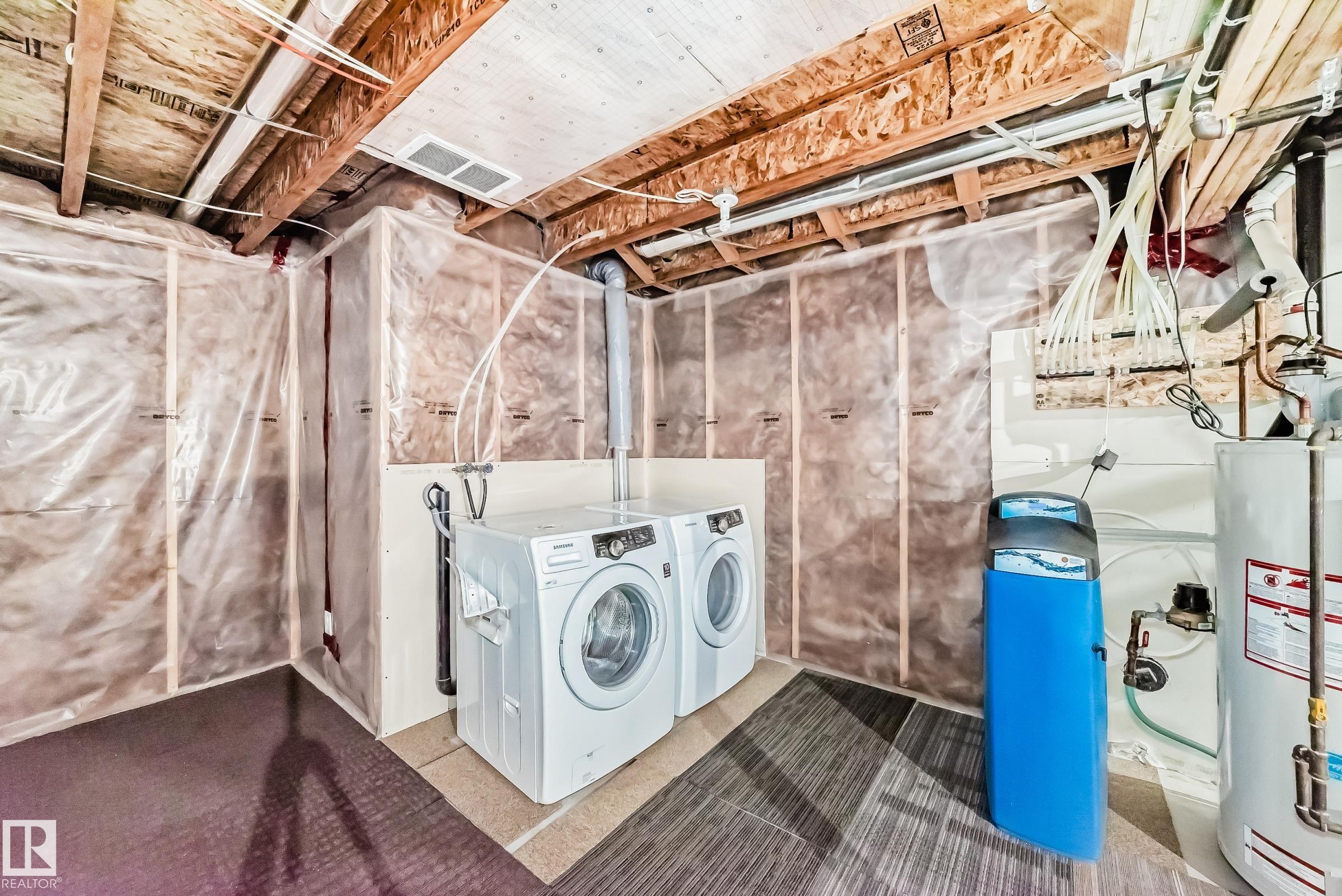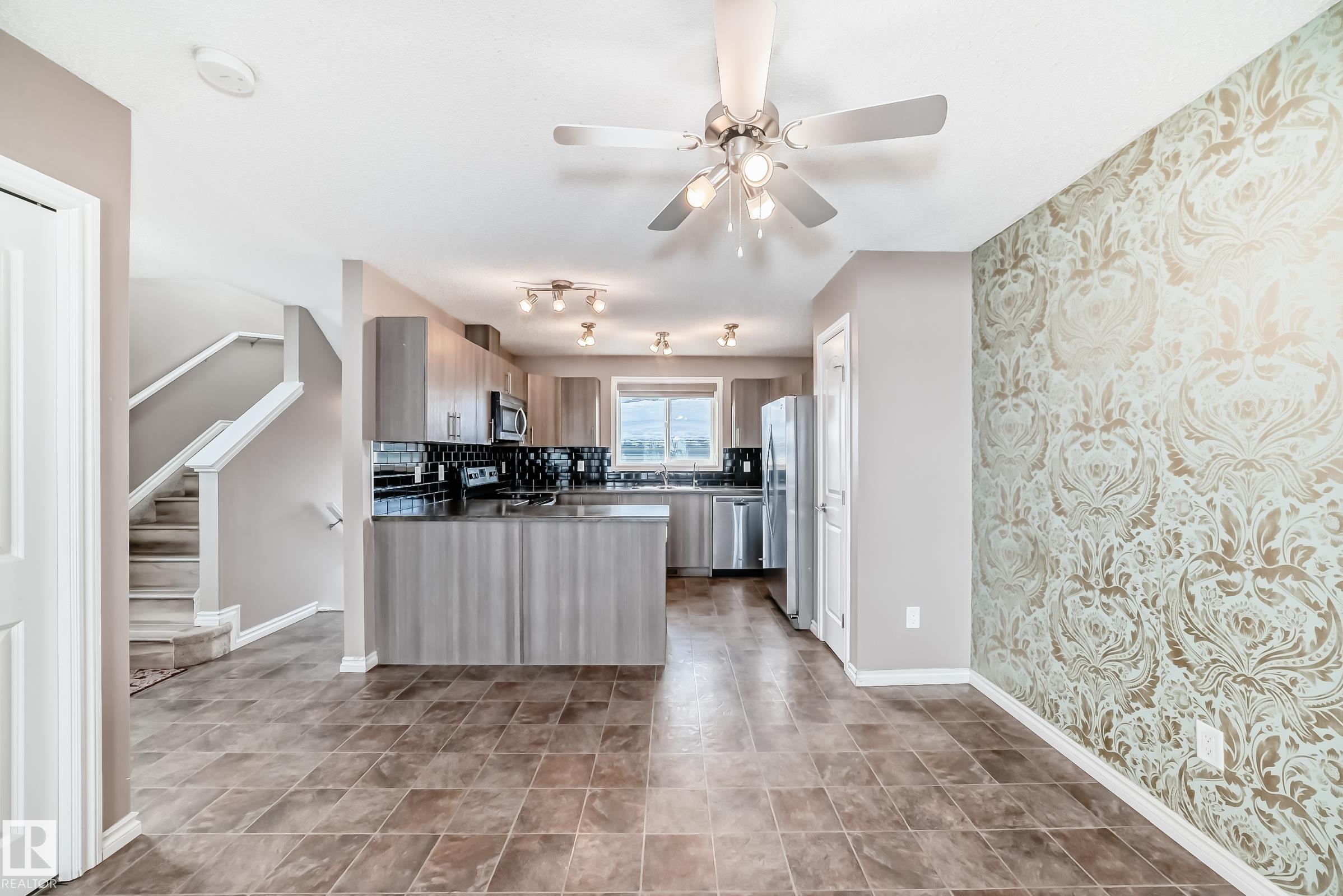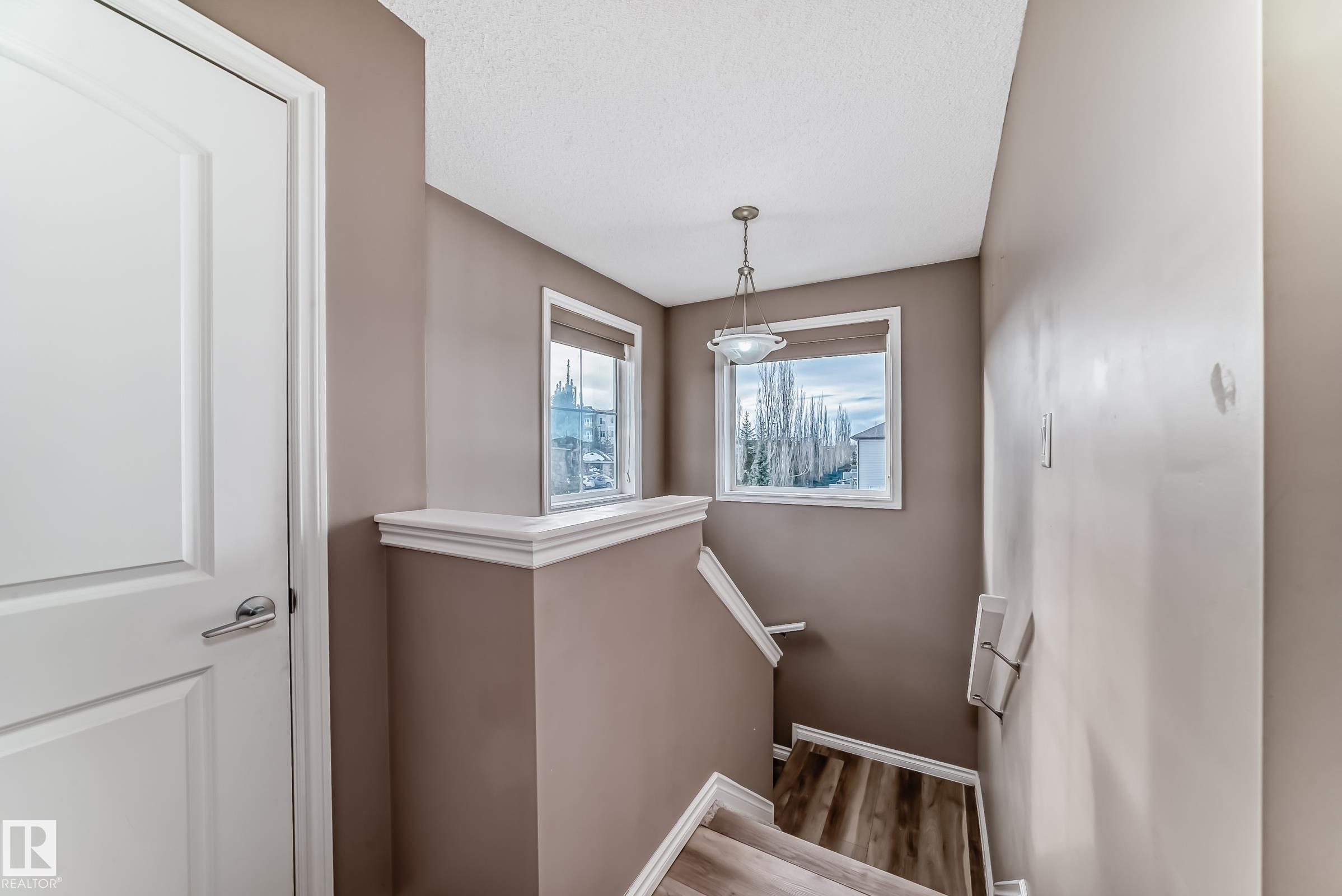 Beautifully maintained corner end-unit townhouse in the sought-after community of Webber Greens. This 2-storey home offers 3 bedrooms, 2.1 baths and 1,390 sq ft RMS above-grade living space (professionally measured; floor plans available). The main floor features a welcoming entry, spacious living and dining areas, and a modern kitchen with stainless steel appliances, stylish cabinetry, tile backsplash, ample counter space, and a large island--ideal for everyday living and entertaining, along with a convenient 2-pc bath. Upstairs you'll find a generous primary bedroom with walk-in closet and 4-pc ensuite, plus two additional bedrooms and a full 4-pc bathroom. The full unfinished basement offers excellent future development potential. Enjoy outdoor living on the deck and the convenience of a double detached garage. Water softener is included. Exceptional west-end location with quick access to Whitemud Drive and Anthony Henday, close to major shopping and services including FreshCo, Shoppers Drug Mart,Tims