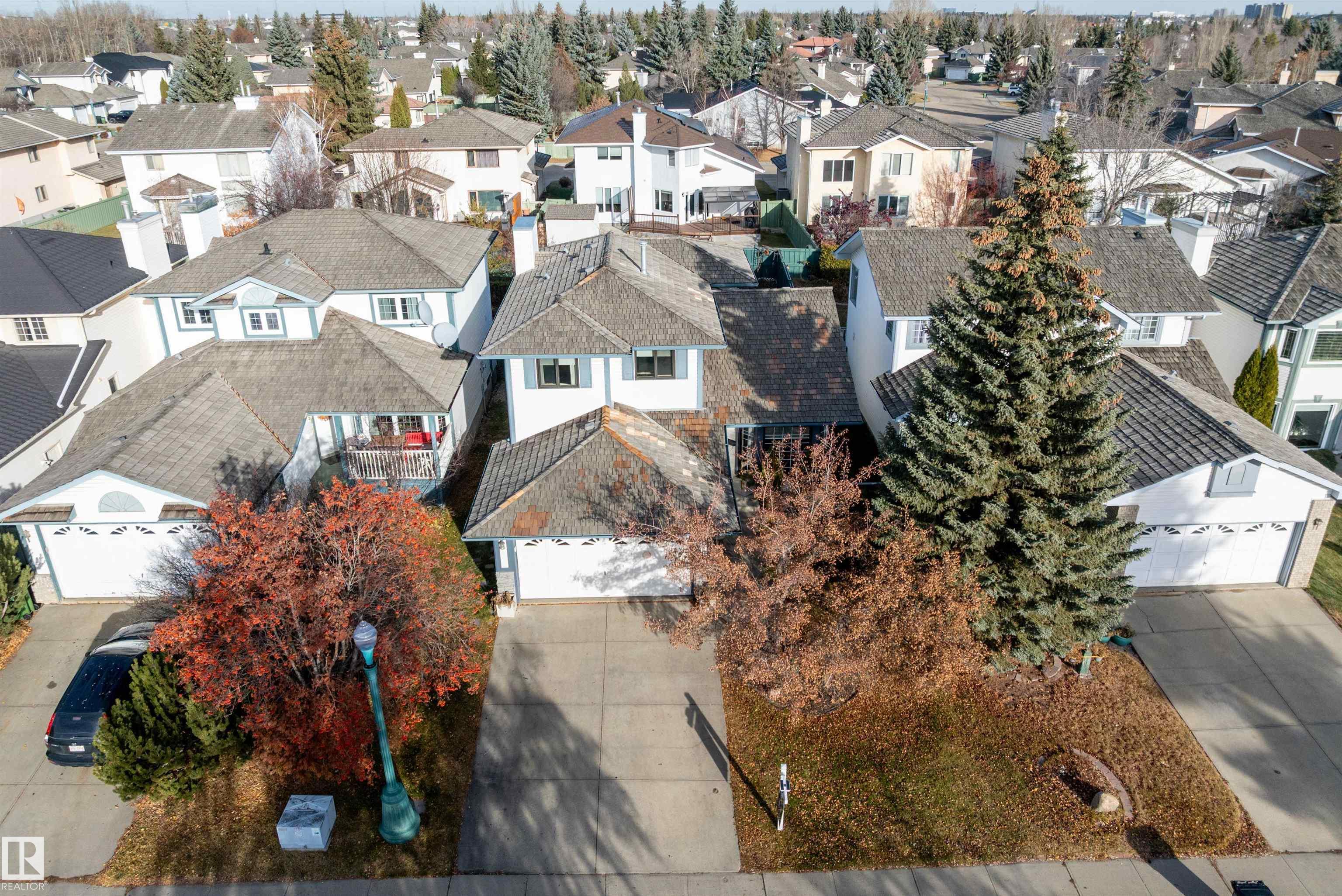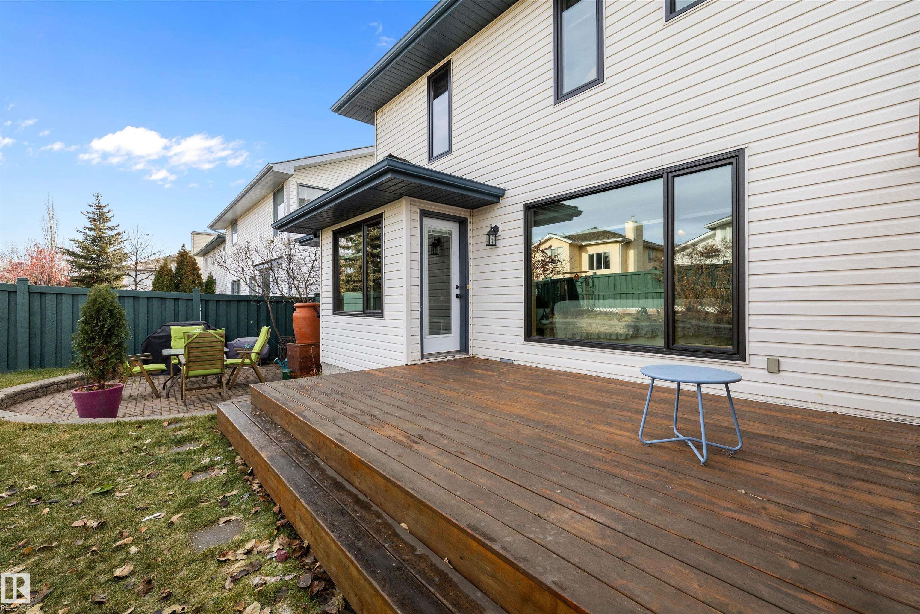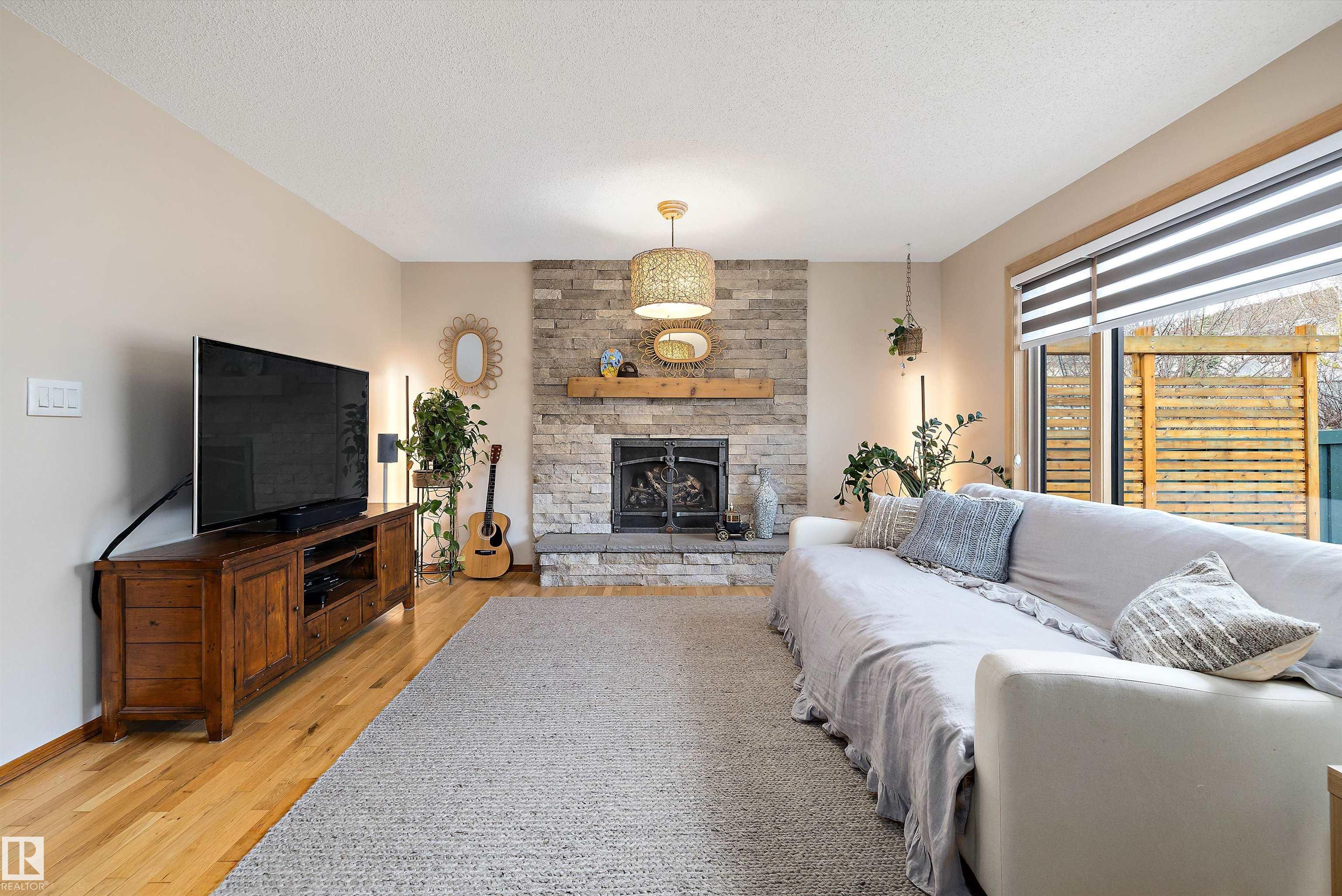 RARE OPPORTUNITY IN WEDGEWOOD! Elegant 2-storey, 4-bedroom home with timeless design, abundant natural light, a serene setting in a safe no-thru-traffic community near the Henday. Vaulted ceilings and new windows brighten living and dining areas; kitchen features updated cabinetry and SS appliances overlooking a cozy family room with a heart of the house gas fireplace. Upstairs: primary suite with his & hers walk-in closets and 4-pc ensuite, two bedrooms and full bath. Finished basement offers a large rec area, guest bedroom, and 3-pc bath. Outdoors: mature trees, newer cedar deck with pergola, cobblestone patio, and stone landscaping. Upgrades include Lux aluminum fir clad triple-pane windows (22k 2024), Fireplace Xtrordinair w/ cast-ironed doors (9k 2020), cedar deck (2022), granite countertops in bathrooms (2022), fridge (2024), and HWT (2017). Steps to Wedgewood Ravine and central park with courts, playgrounds, and trails--a well-cared-for home in one of SW Edmonton's most desirable communities!